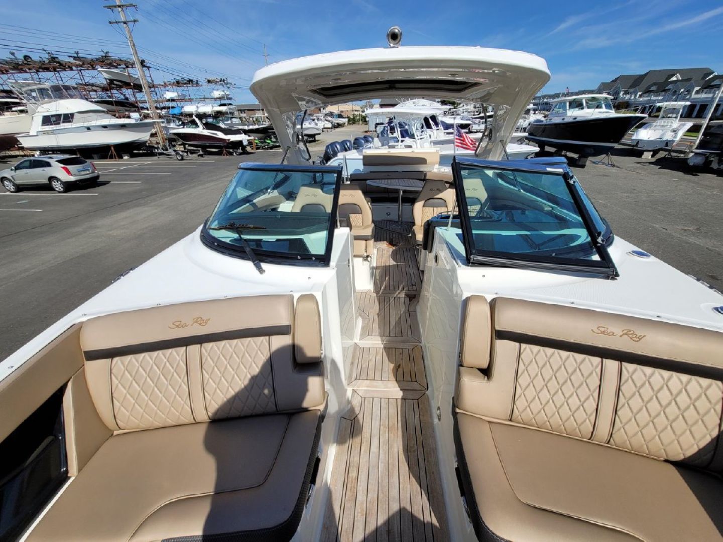 - A truly excellent on-water experience starts with more. More friends, more family, more room, more power, more ease and more fun. The Sea Ray SLX 350 delivers in every sense. Yacht Certified and a standard wet bar with refrigerator make entertaining a must. An array of Sea Ray's Next Wave innovations-from the noise-quashing powers of Quiet Ride to the precision and stability of Dynamic Running Surface to the agility of Axius joystick technology-take the experience to the next level. And a host of intelligent features combine in a sleek, stylish package that exceeds all expectations. In short, the SLX 350 will make you want to spend even more time on the water.