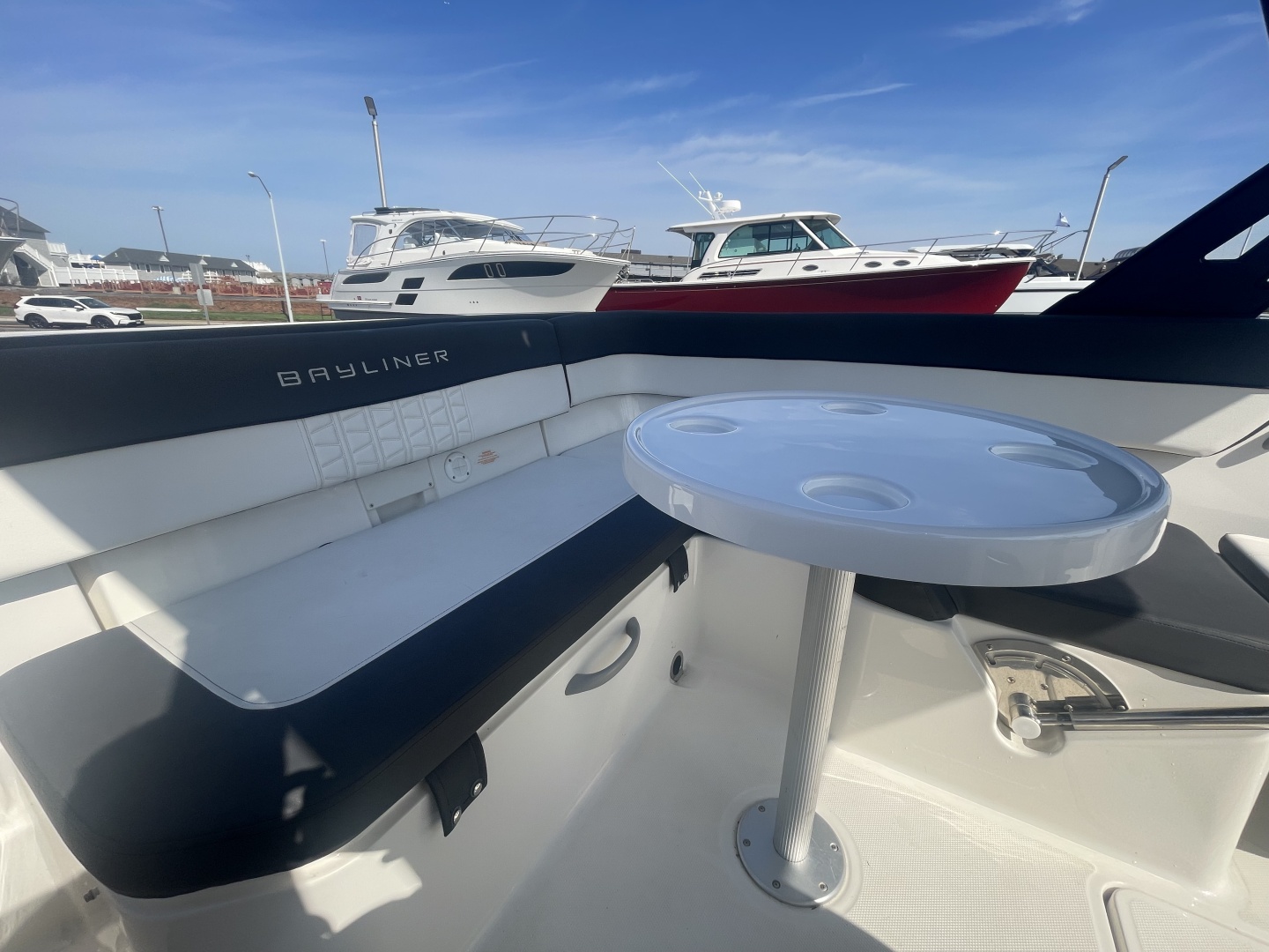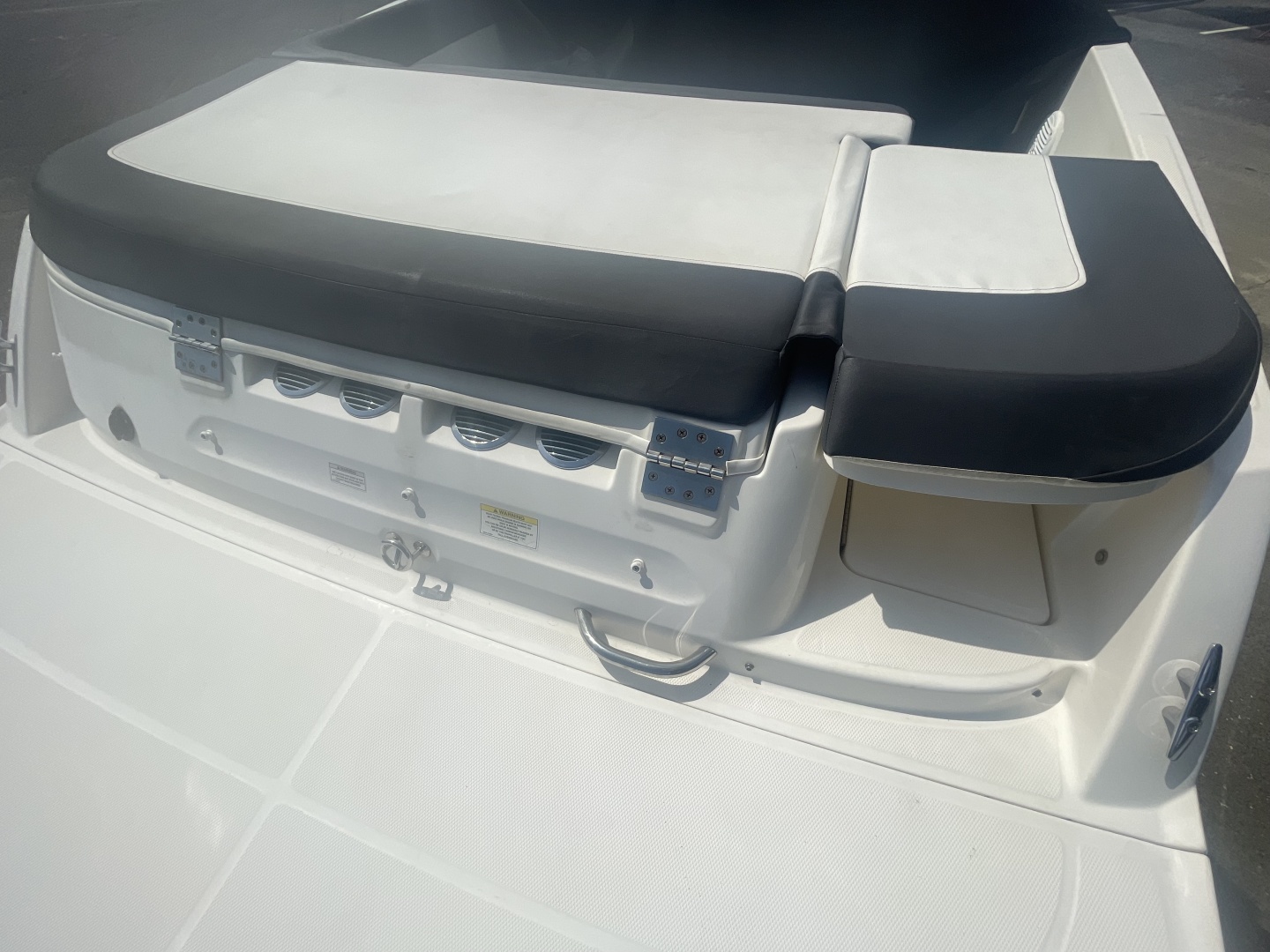 The VR6 is also all about space and unparalleled roominess. It combines Bayliner’s category-leading BeamForward™ design and new AftAdvantage™ concept—which increases the self-draining cockpit’s seating area by adding the swim platform at the end of the running surface. This boat maximizes space and value like never before. You’ll also find pleasant surprises like a lockable enclosed head, and aft-facing companion/observer seat that’s ideal for water sports and—with the addition of a filler cushion—creates a comfortable U-lounge that turns the whole aft section into an inviting gathering area.