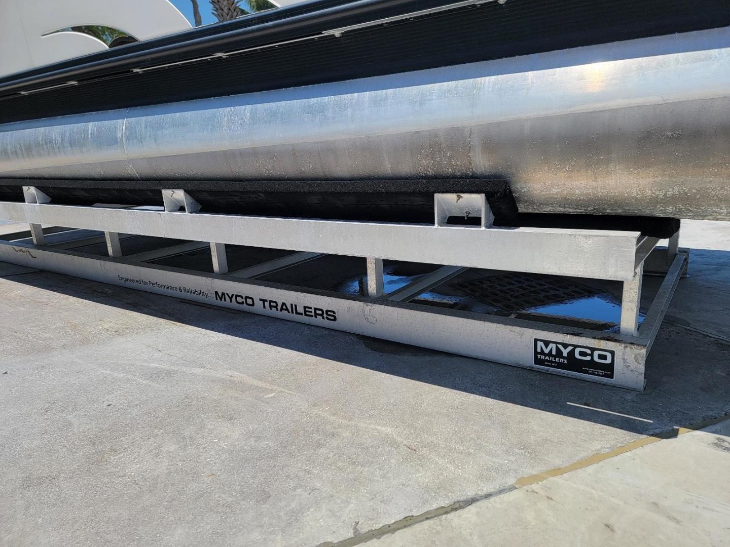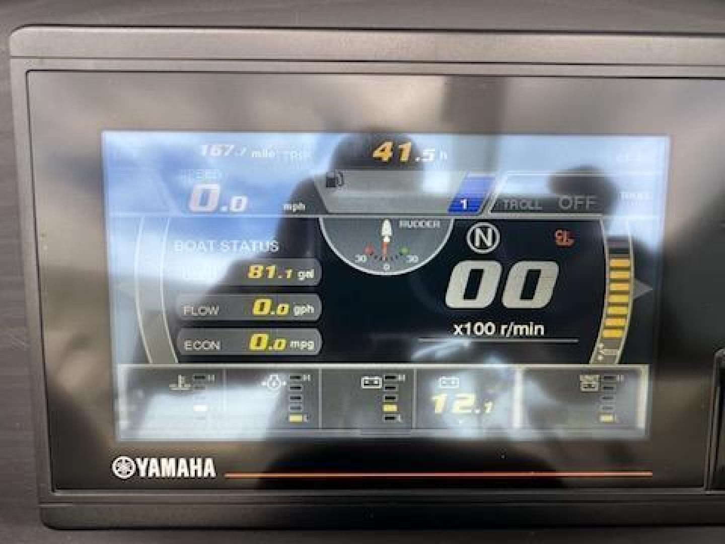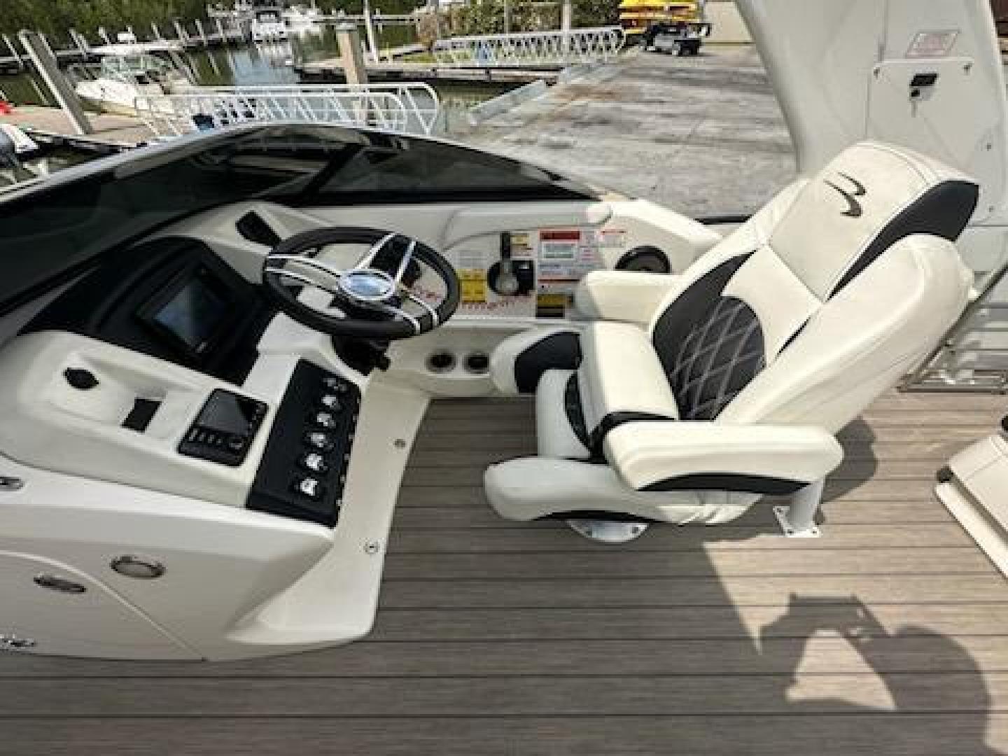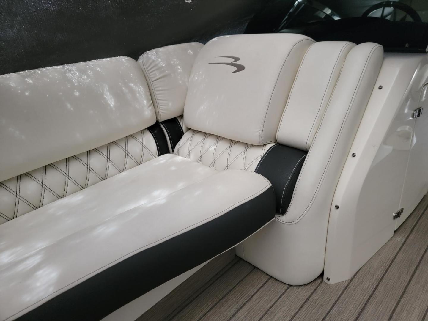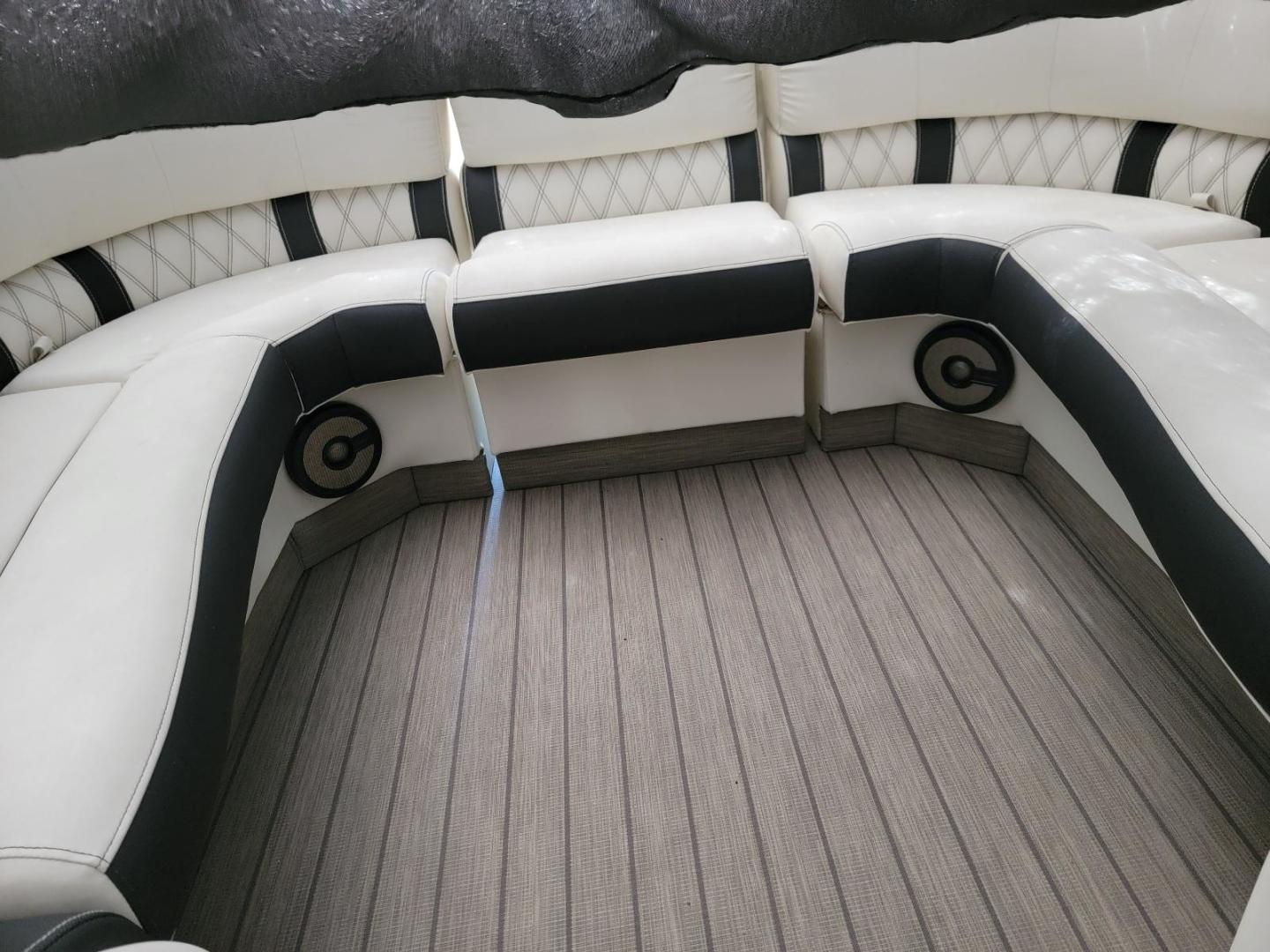 Bennington 25 QX White full molded deck area, Folding sport arch, Bimini tops off arch, full cover, Deluxe seating in white and grey and black, Yamaha 425 with 41.5 hours, Full tri toon hulls, Teak Weave flooring, Stereo, Porto potty, Depth finder and much more. Get superb luxury with top notch performance in this high styled tri toon.