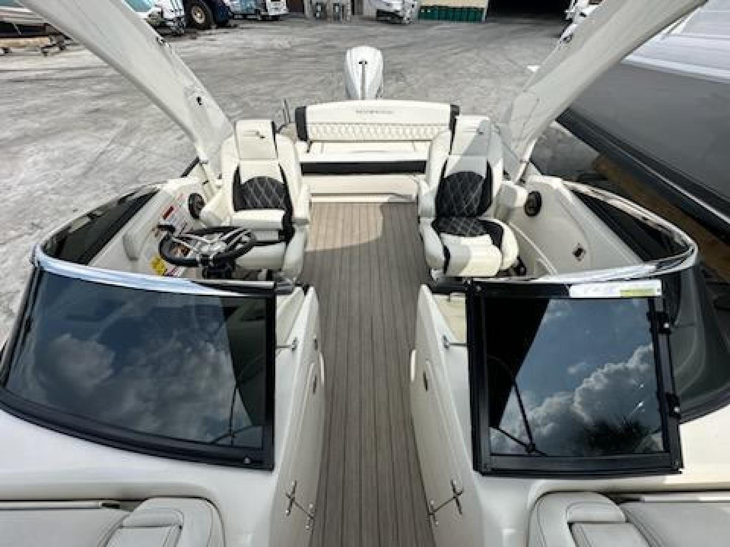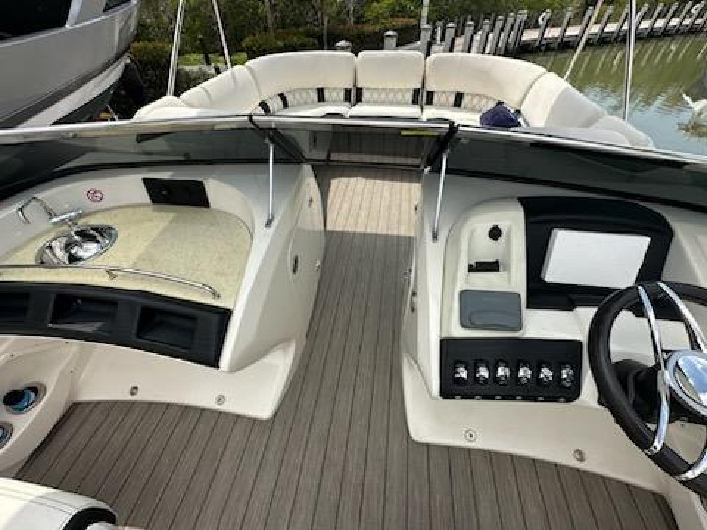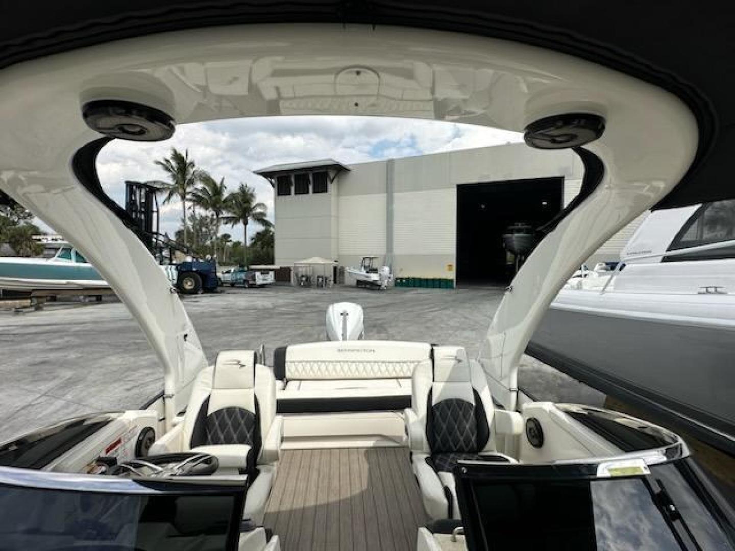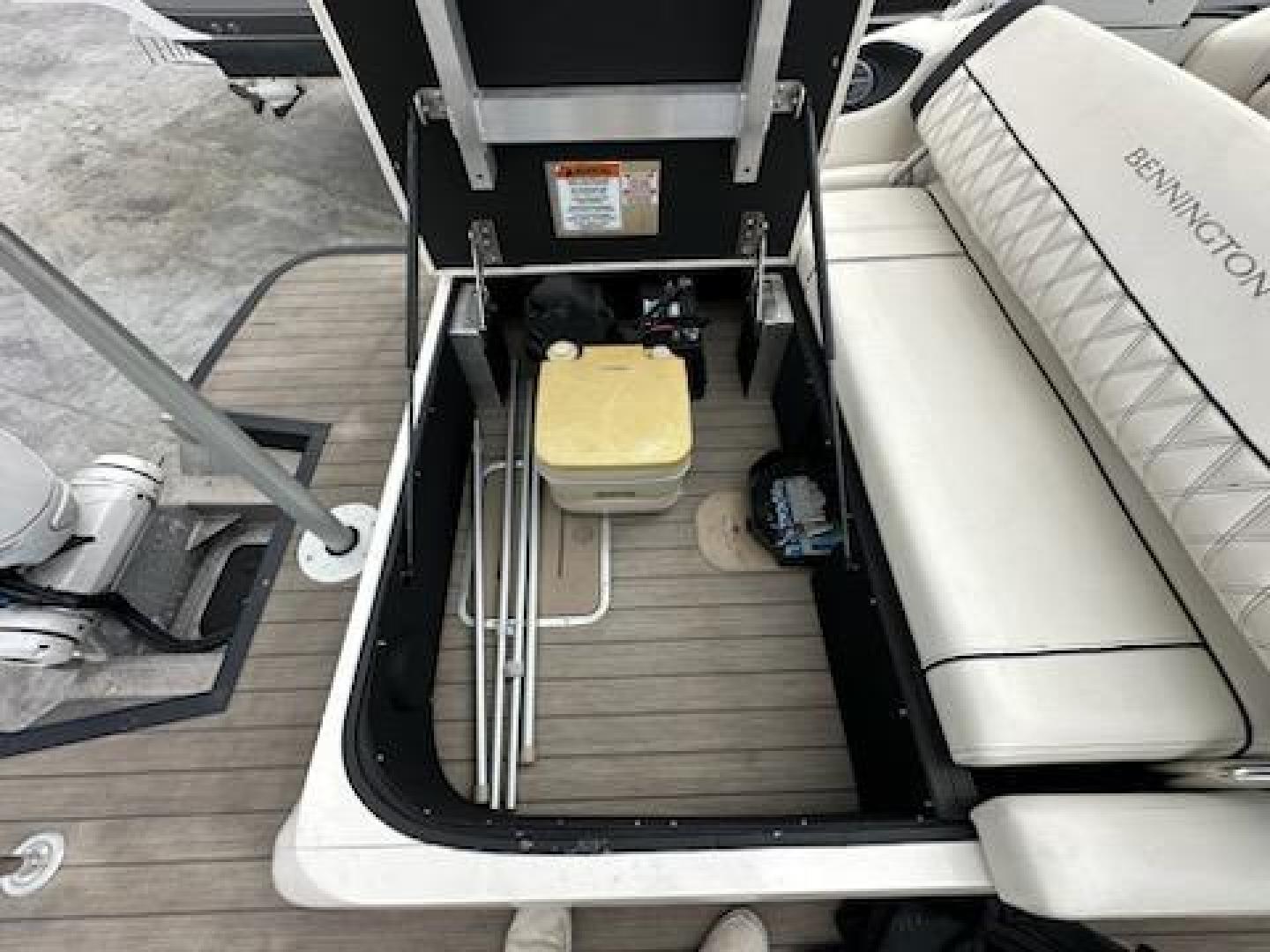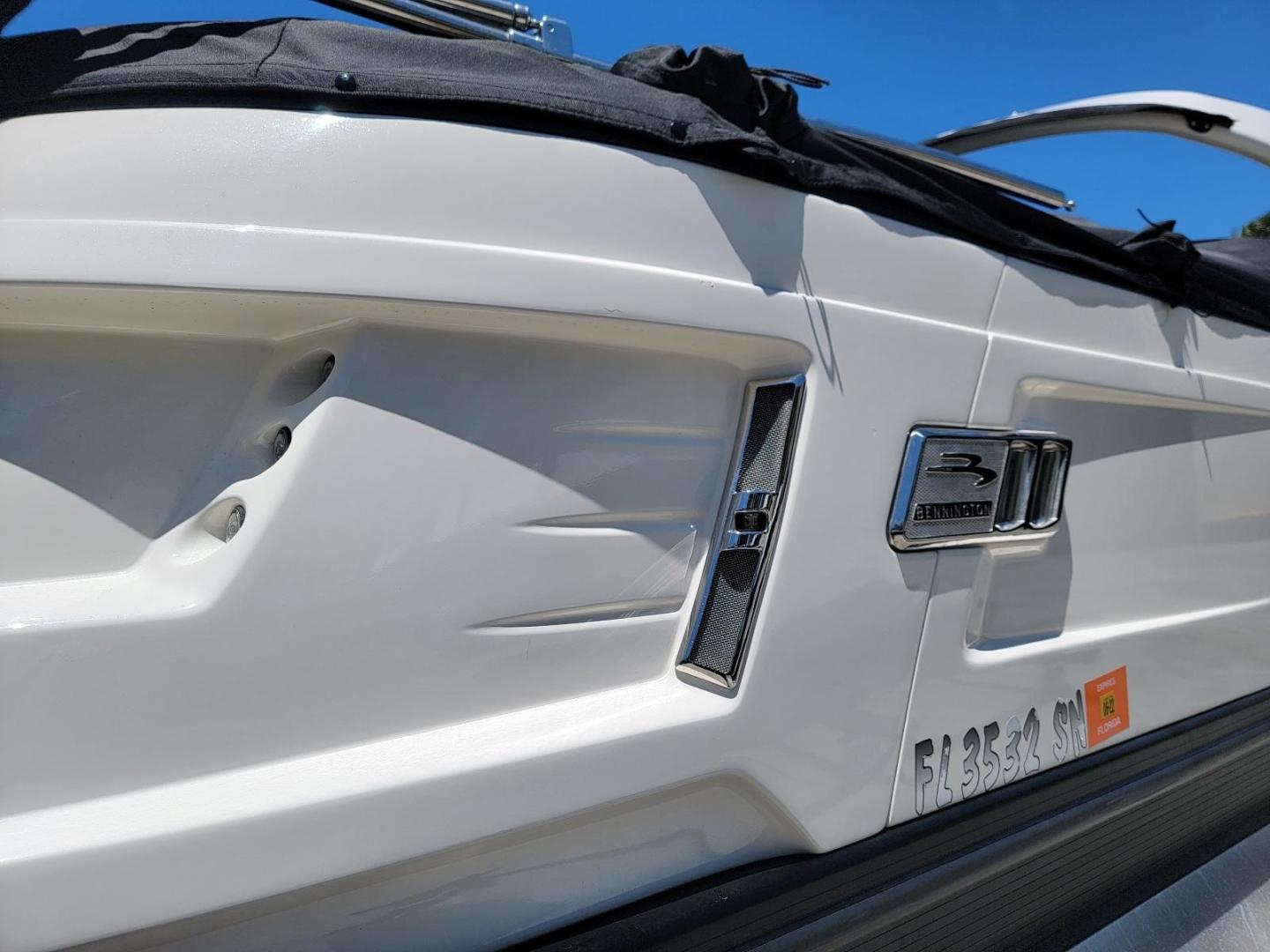 Bennington 25 QX White full molded deck area, Folding sport arch, Bimini tops off arch, full cover, Deluxe seating in white and grey and black, Yamaha 425 with 41.5 hours, Full tri toon hulls, Teak Weave flooring, Stereo, Porto potty, Depth finder and much more. Get superb luxury with top notch performance in this high styled tri toon.