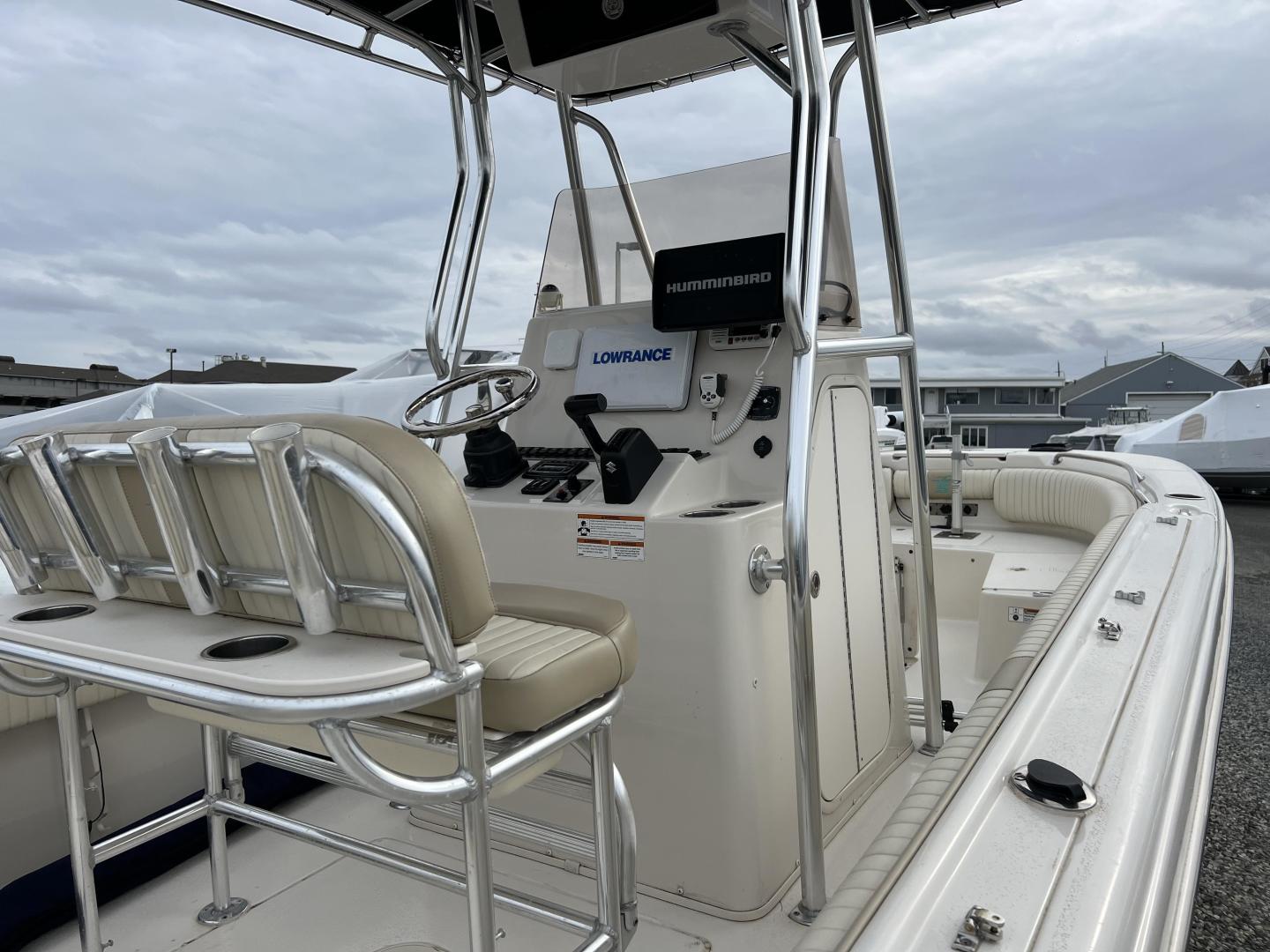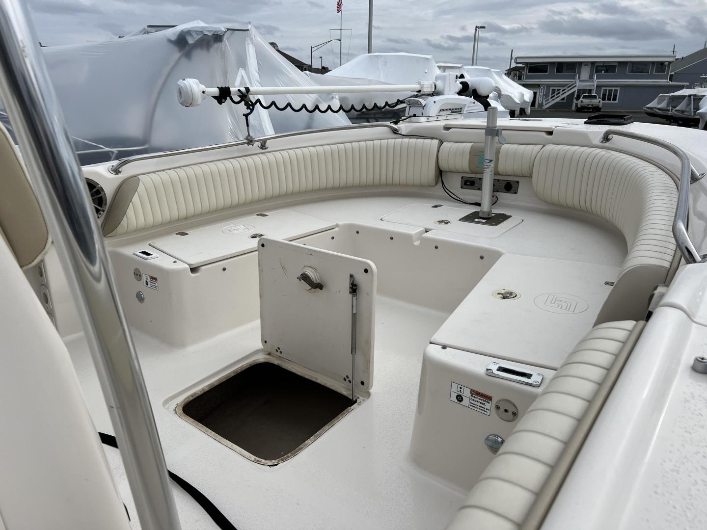 Quality stainless steel components, plentiful storage space, wide open deck space, large front and rear fishing decks, rear cushion jump seats, console with an open face for mounting up to a 10" flush mount electronic screen and 3 stainless steel cup holders, stainless cooler seat frame with adjusting flip flop back rest and your choice of a bimini top or a T-top, give you a great boat for anything from a family excursion to a day of fishing.