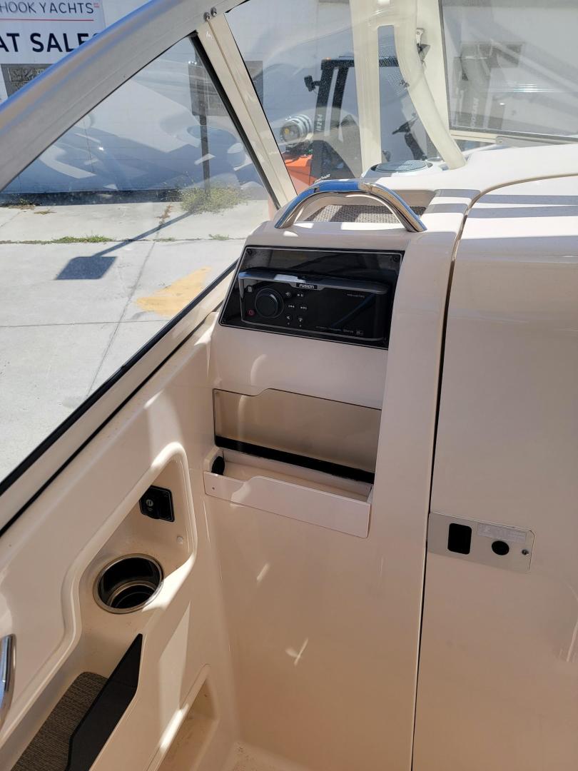 - Stereo w/AM/FM tuner, MP3 auxiliary audio connections, Bluetooth®, remote unit & fold down storage; speakers - bow (2) & helm (2)