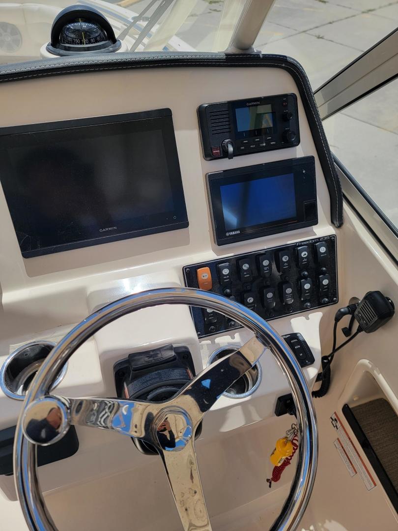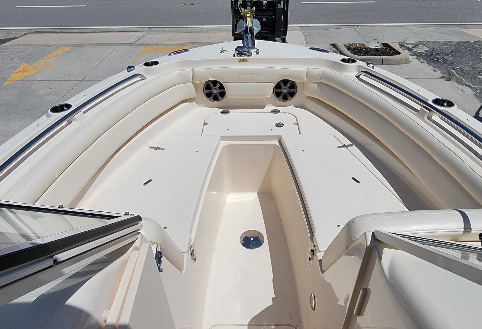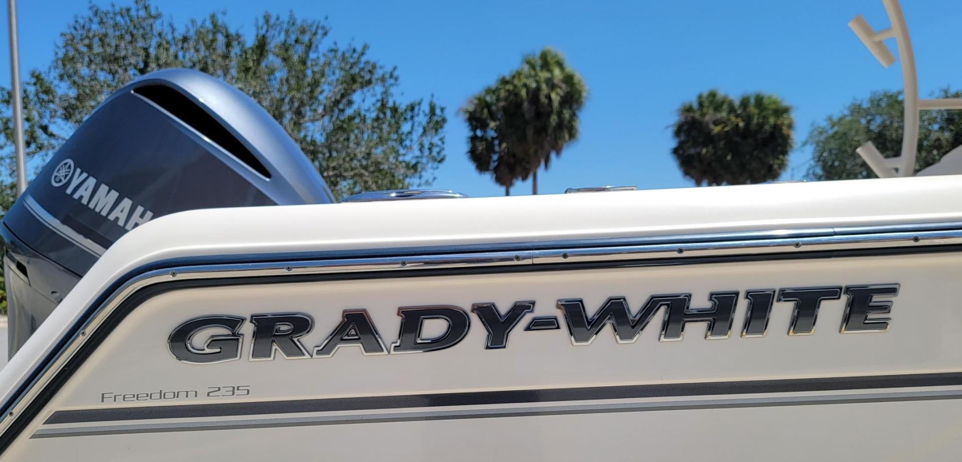 Grady-White’s Freedom 235 has so many “big boat” features along with exceptional quality, luxurious seating, and an oversized enclosed head. A Grady first: built-in swim platform extensions port and starboard, and stern auxiliary anchor storage. Every inch a Grady-White family fishing boat with safety, reliability and performance!