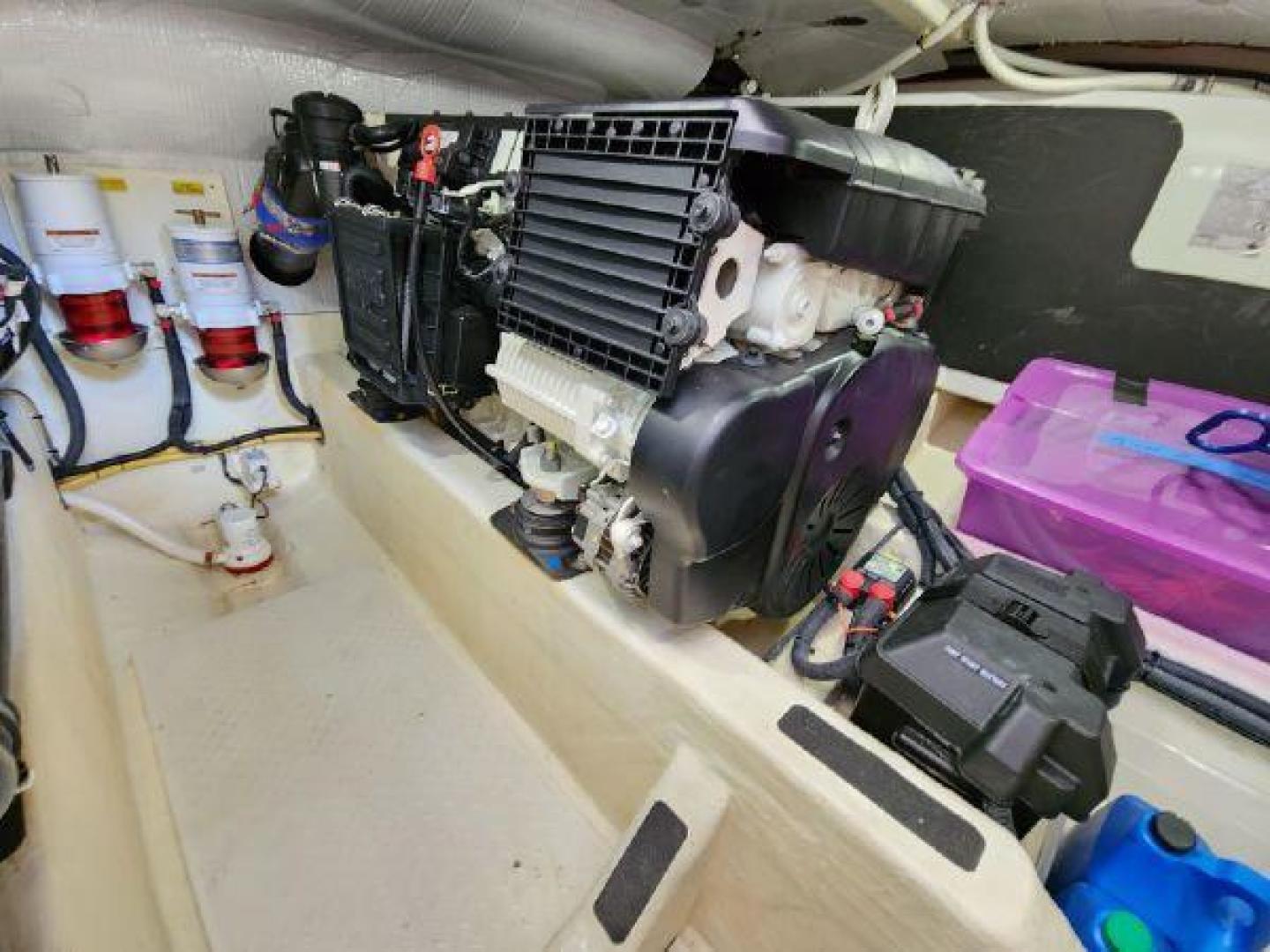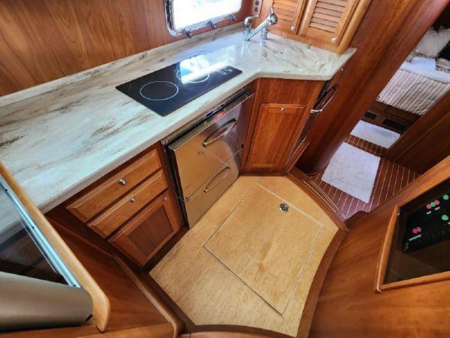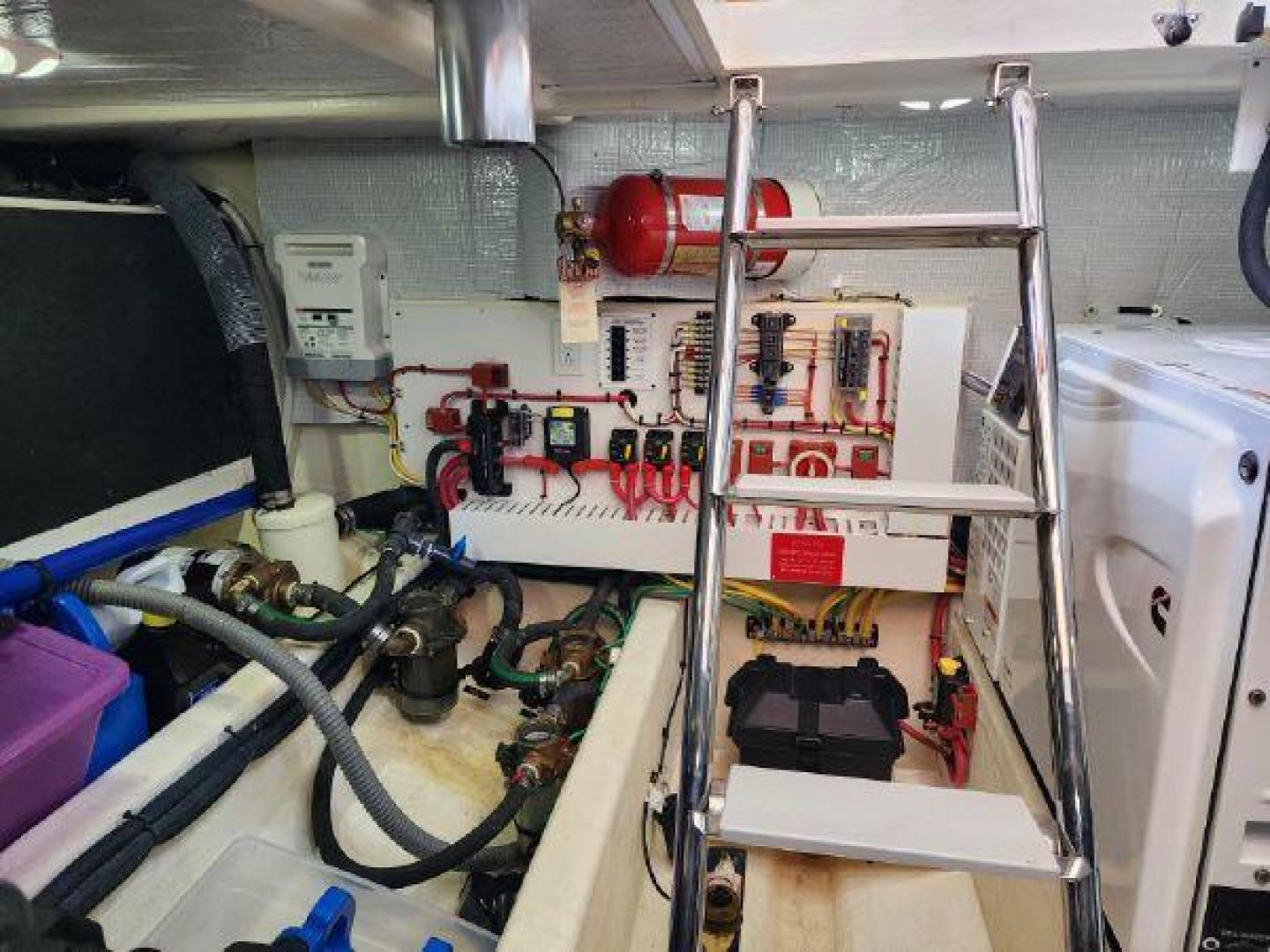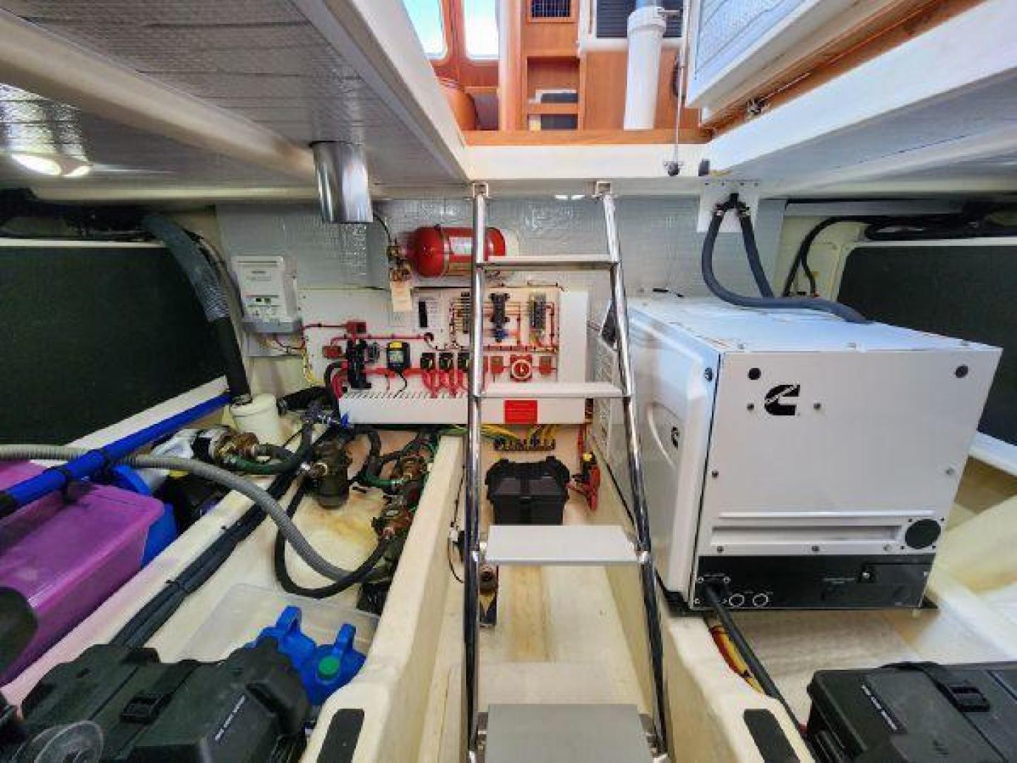 - Large engine room hatch in main salon with compression latch
