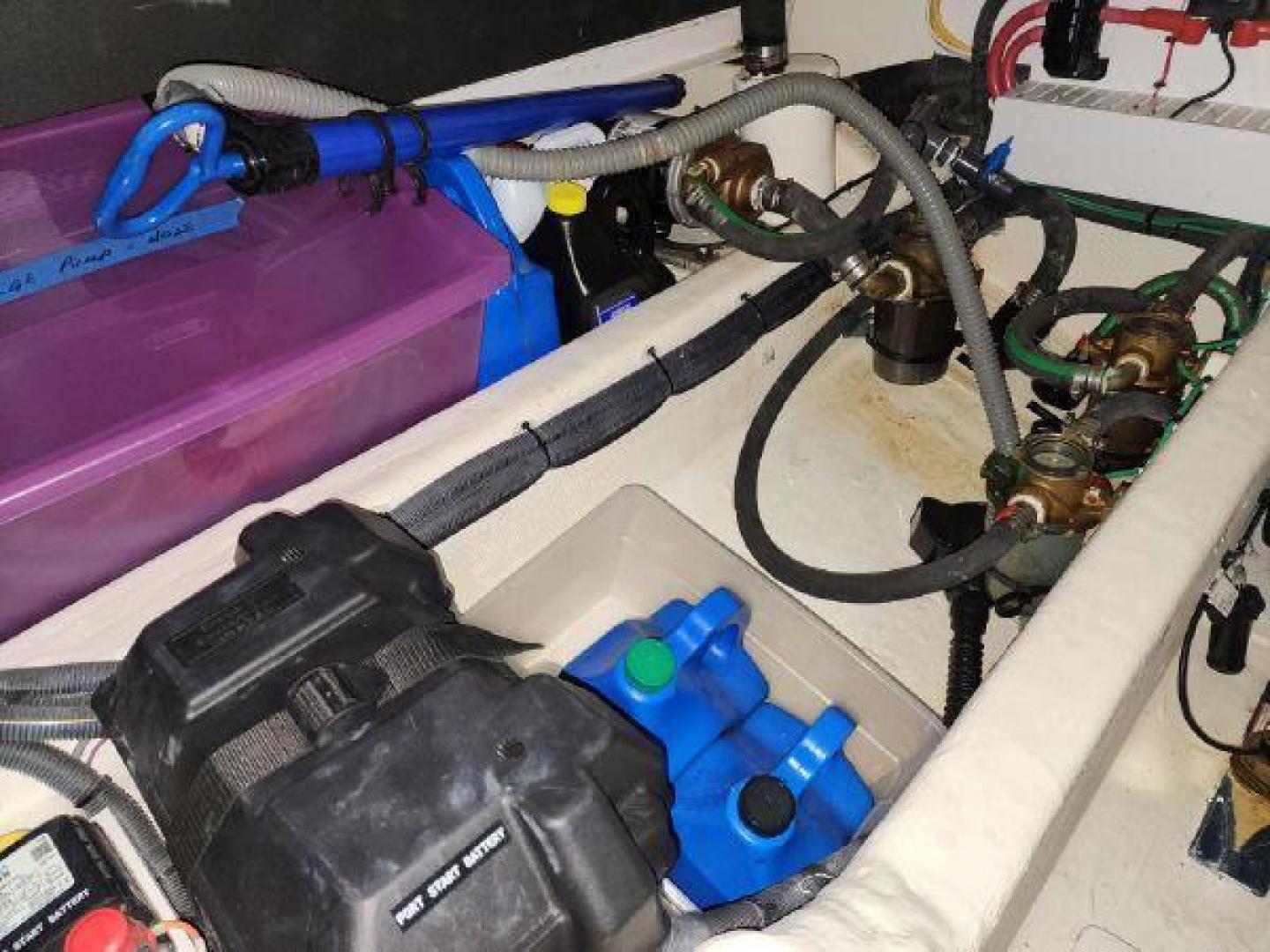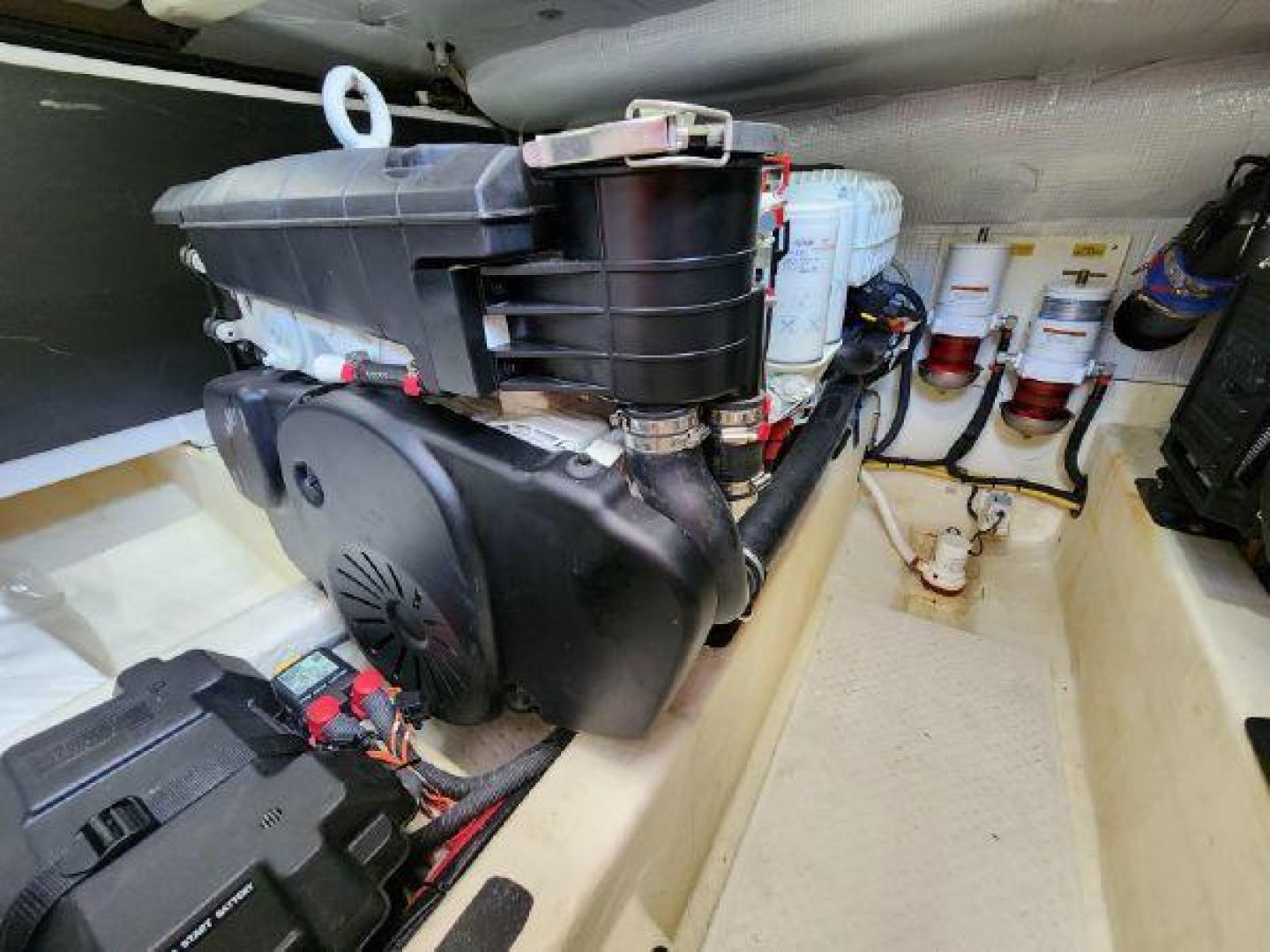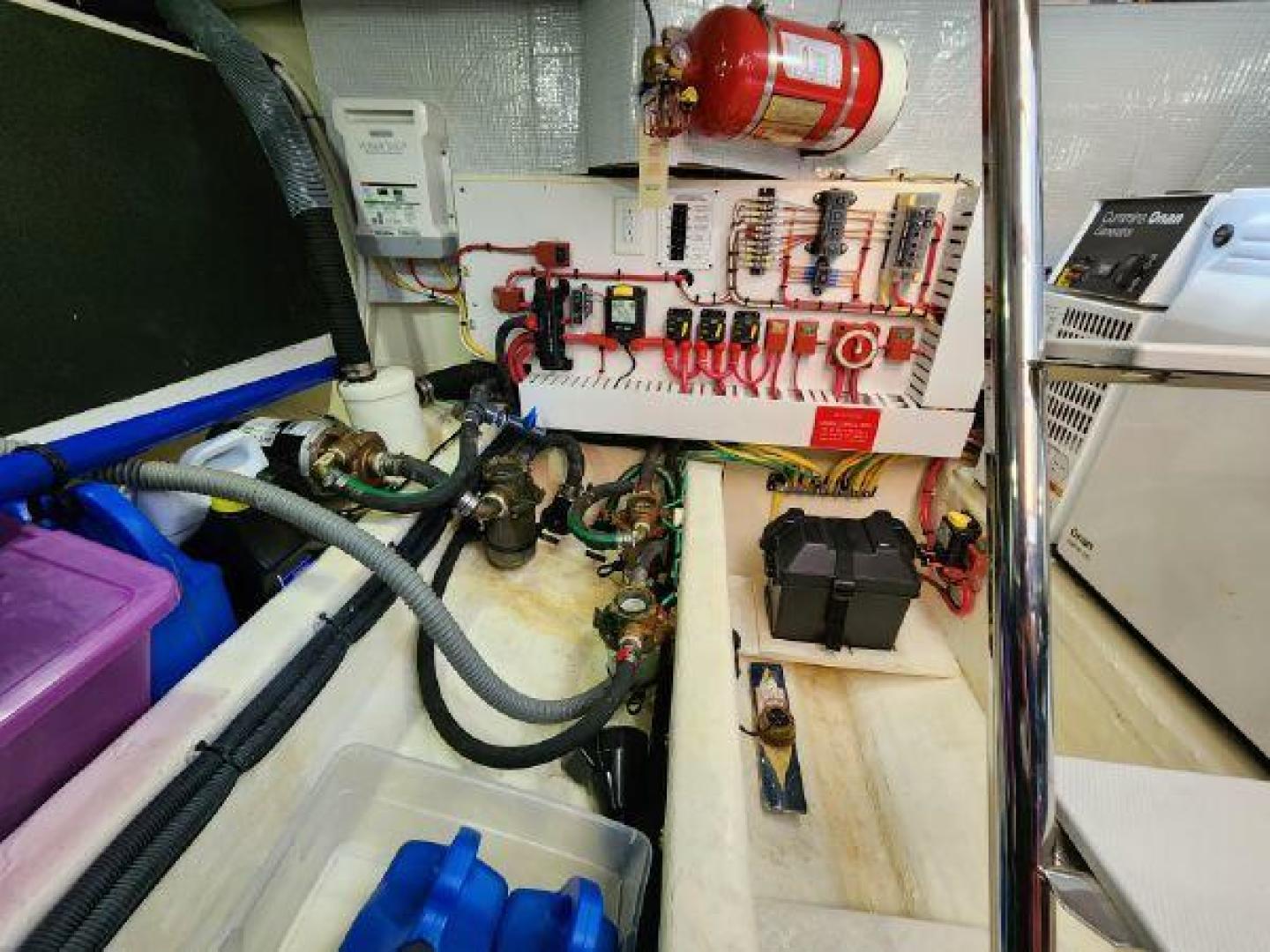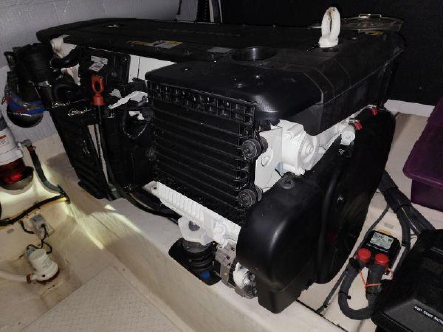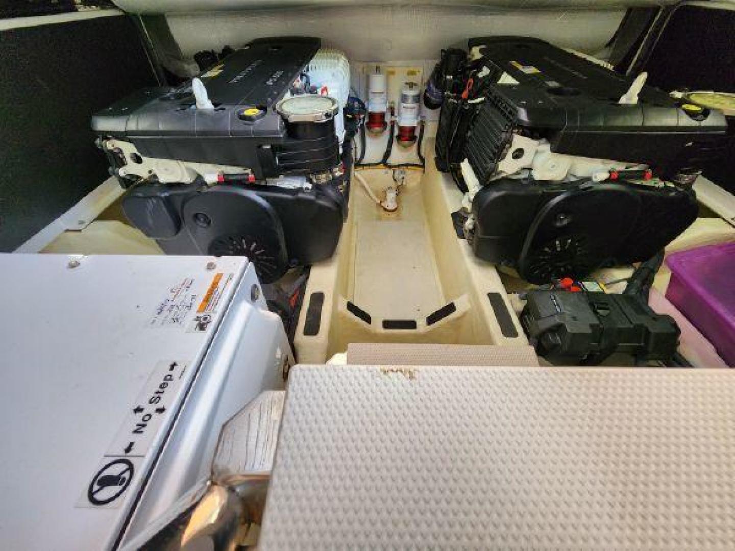 - Large engine room hatch in main salon with compression latch