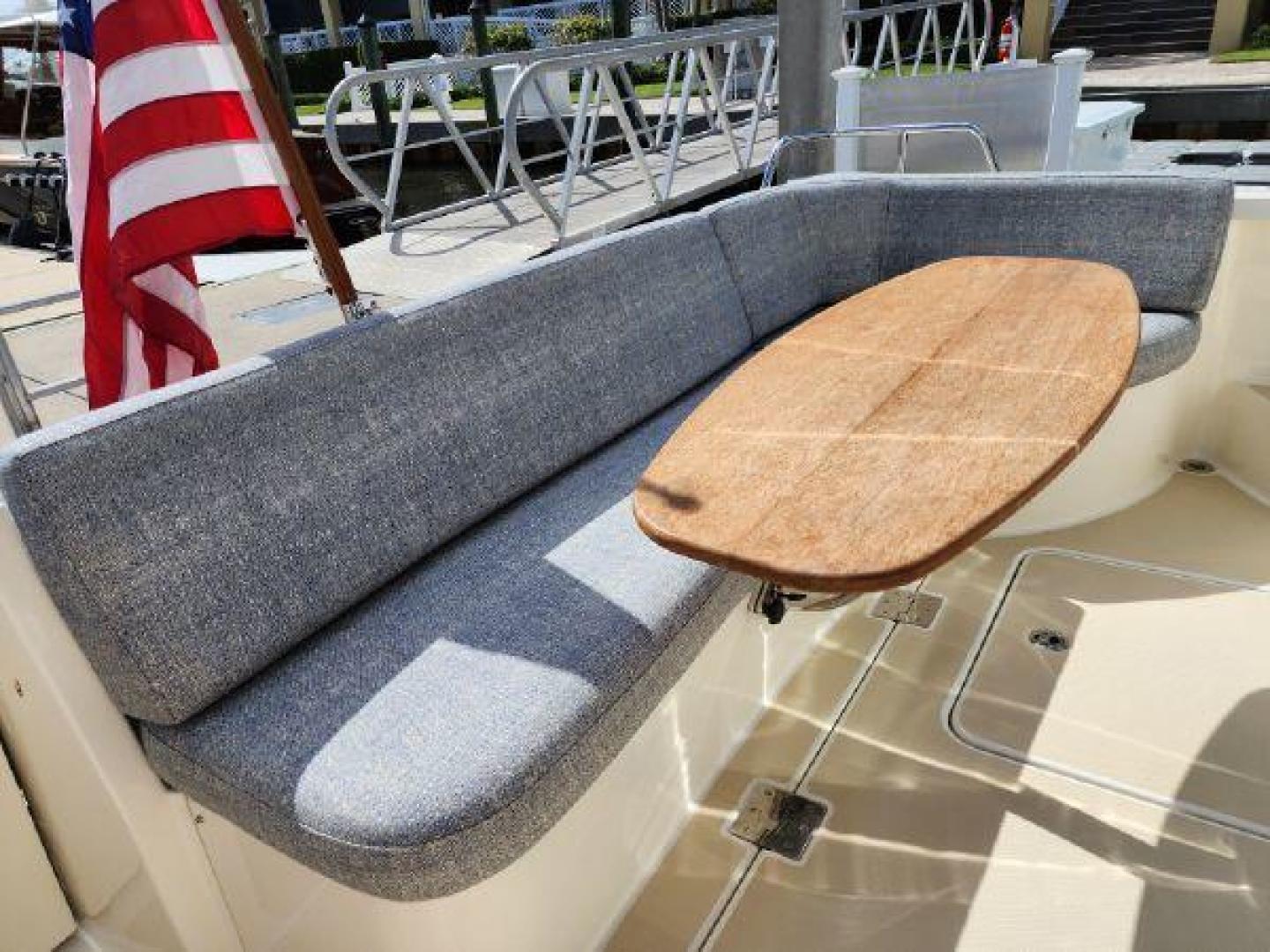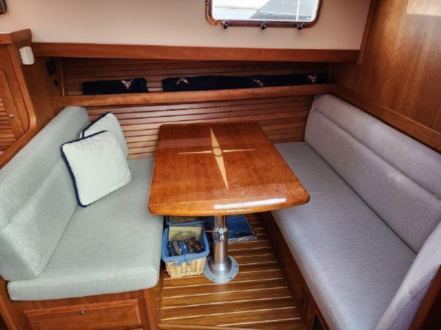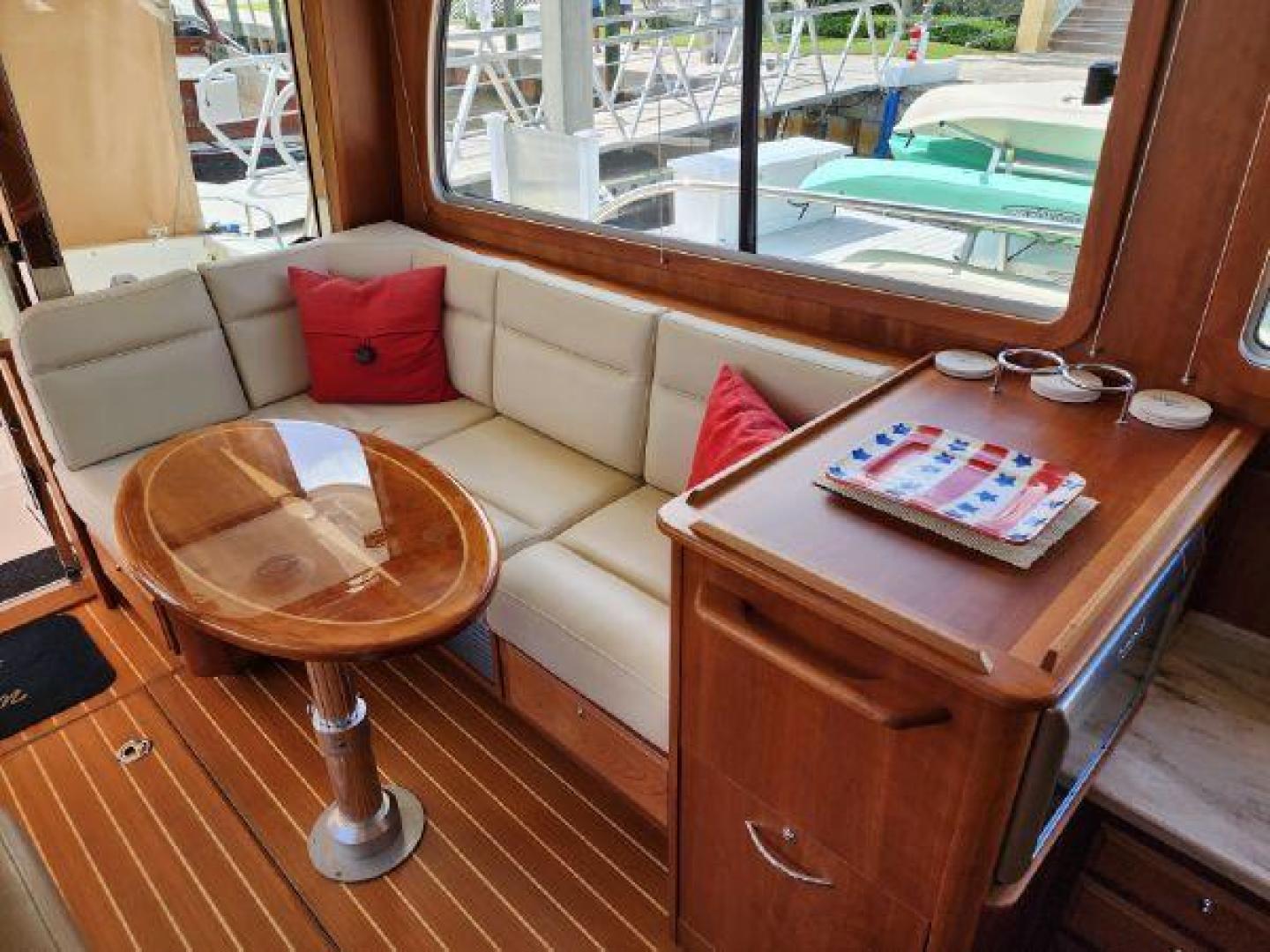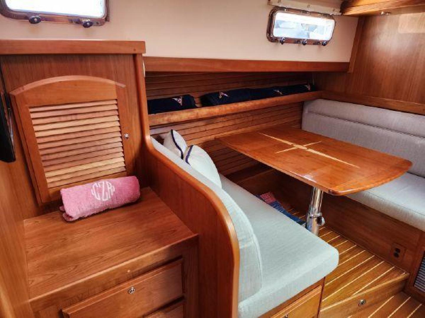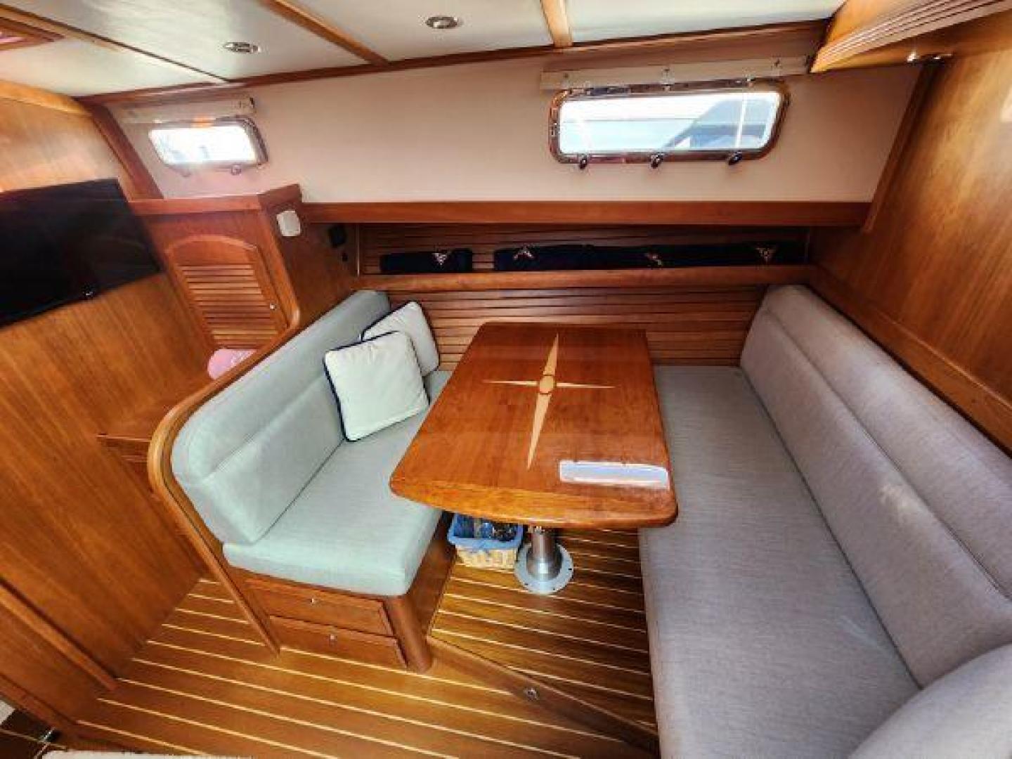 - Teak table in cockpit