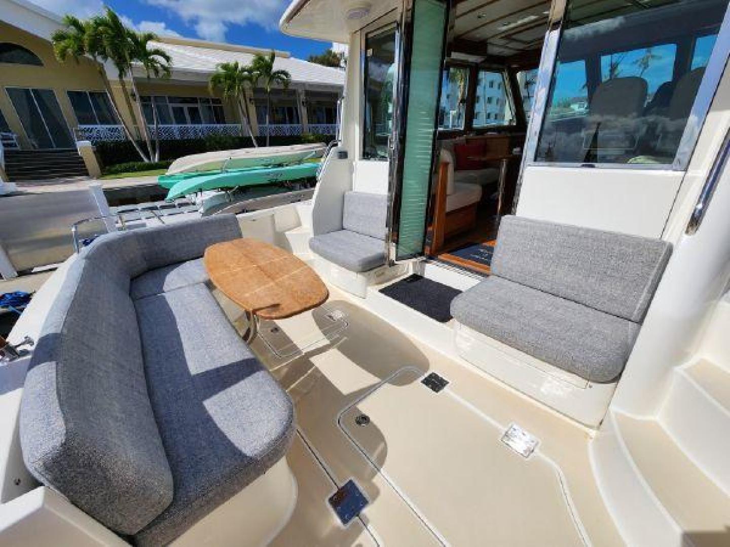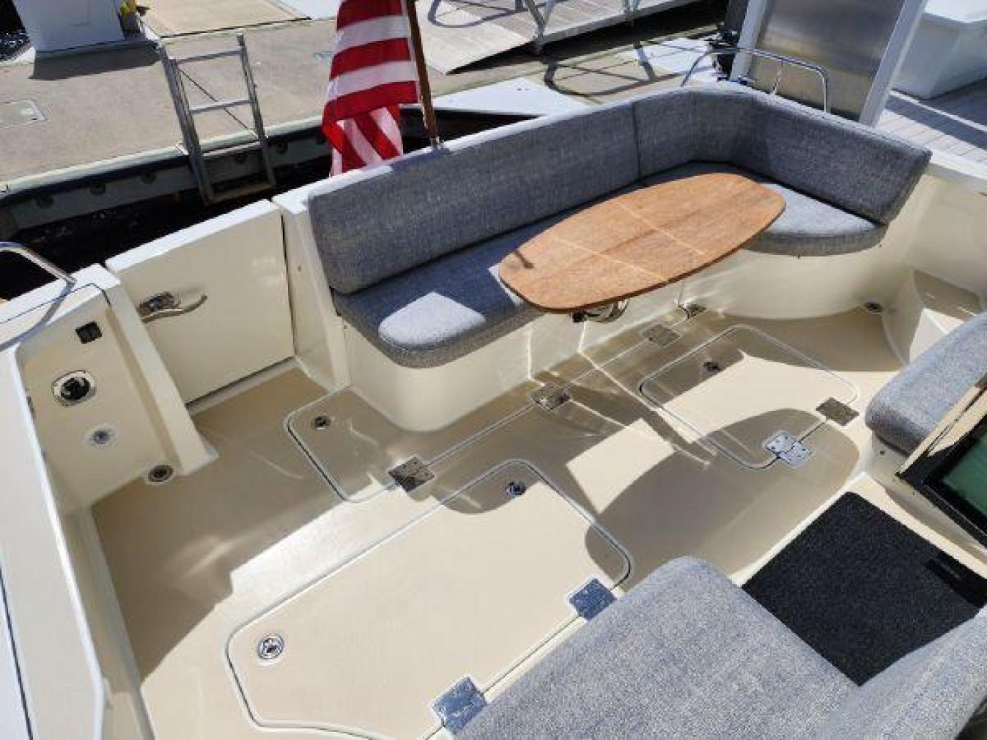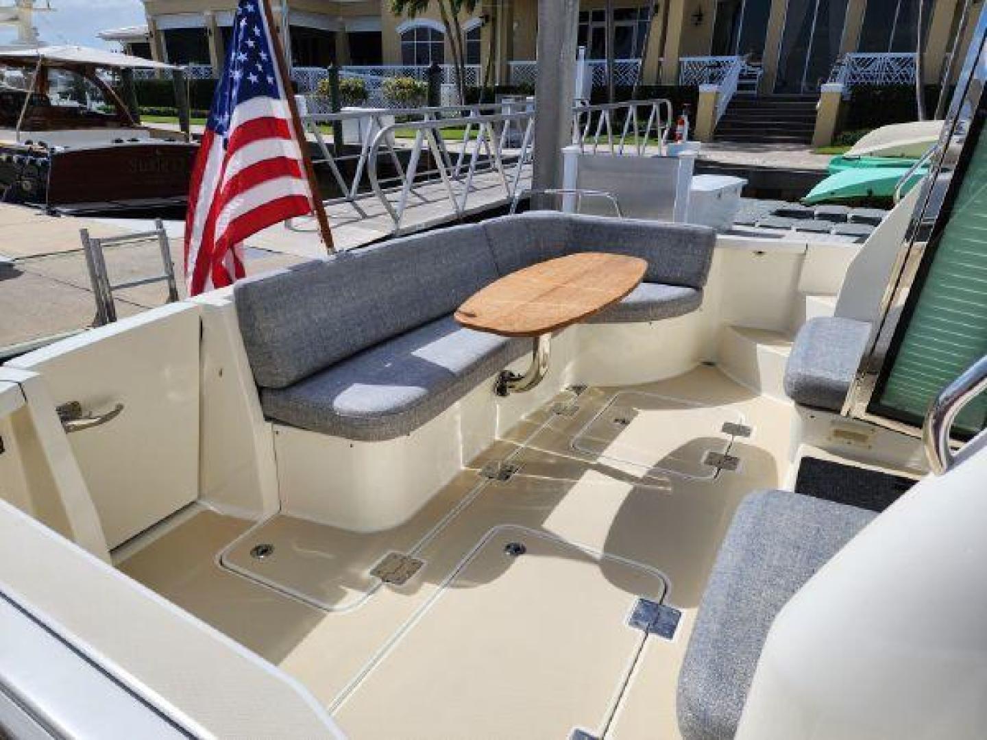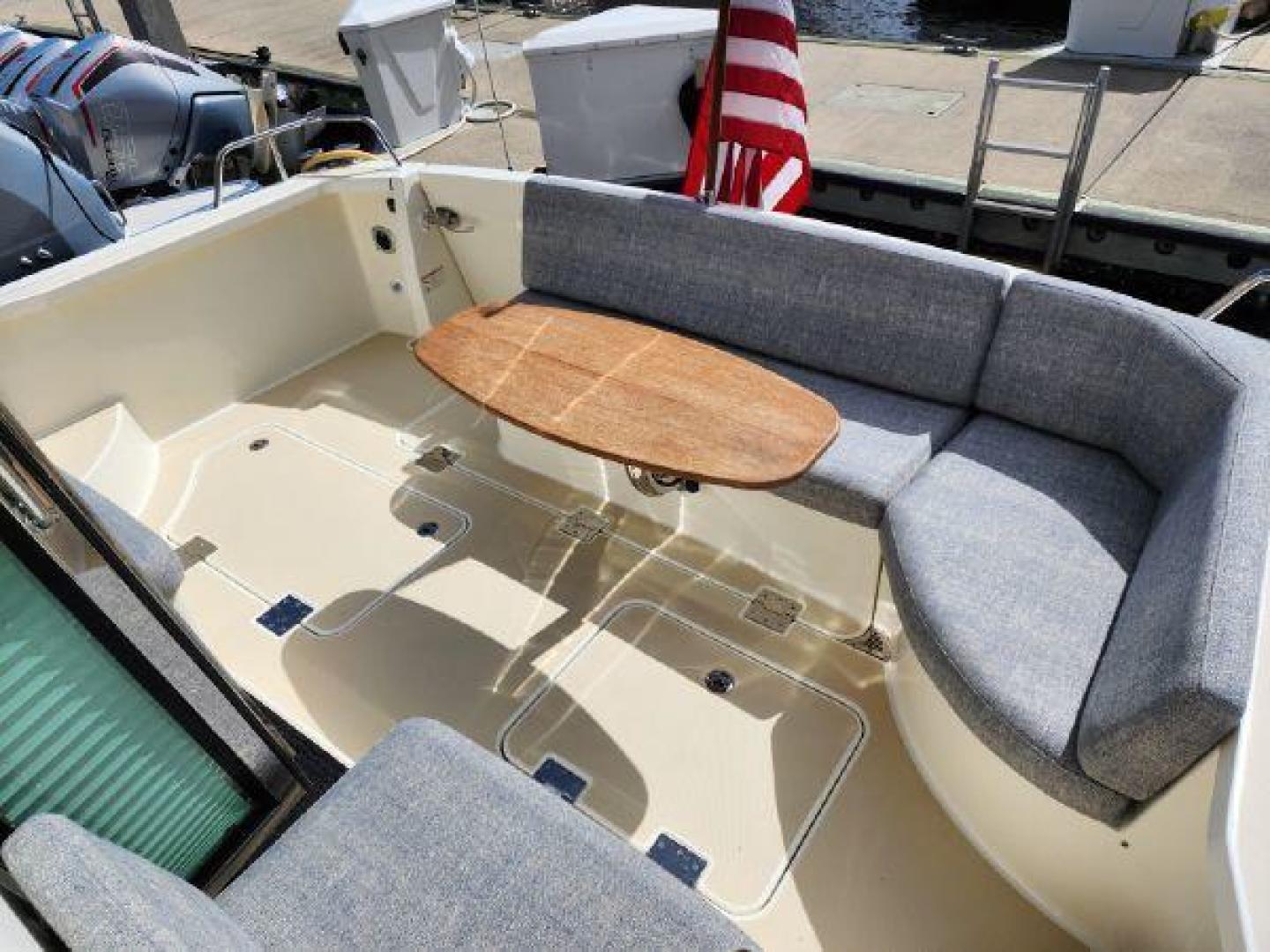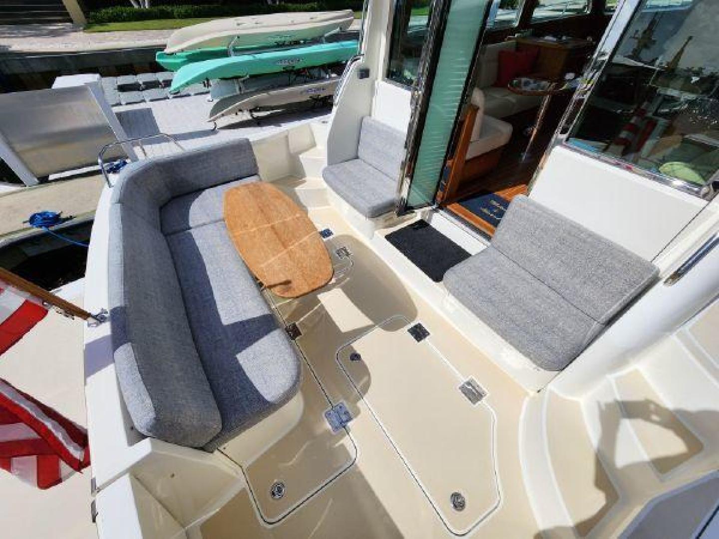- Teak table in cockpit