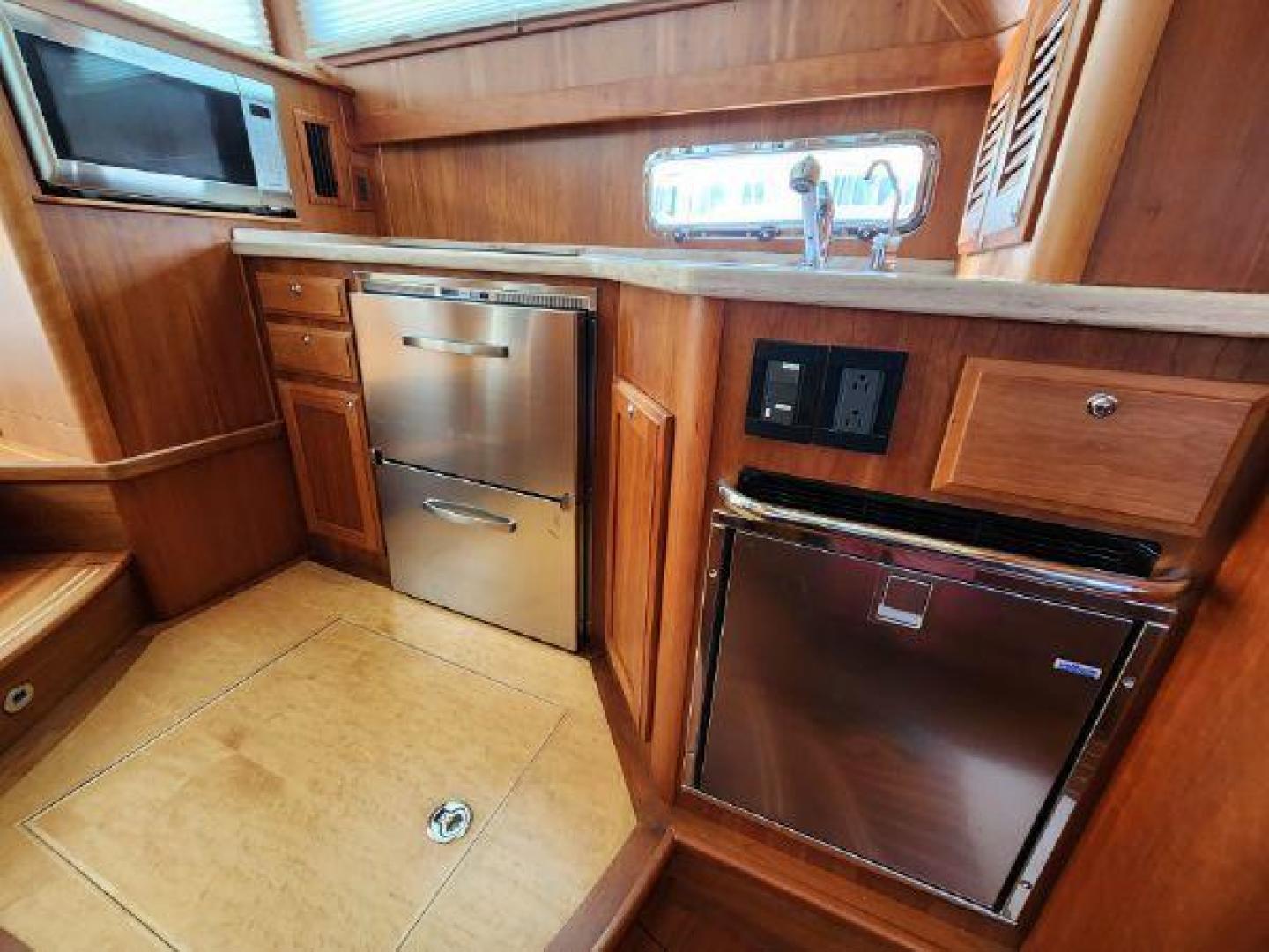 - Convection microwave with stainless steel door above aft counter