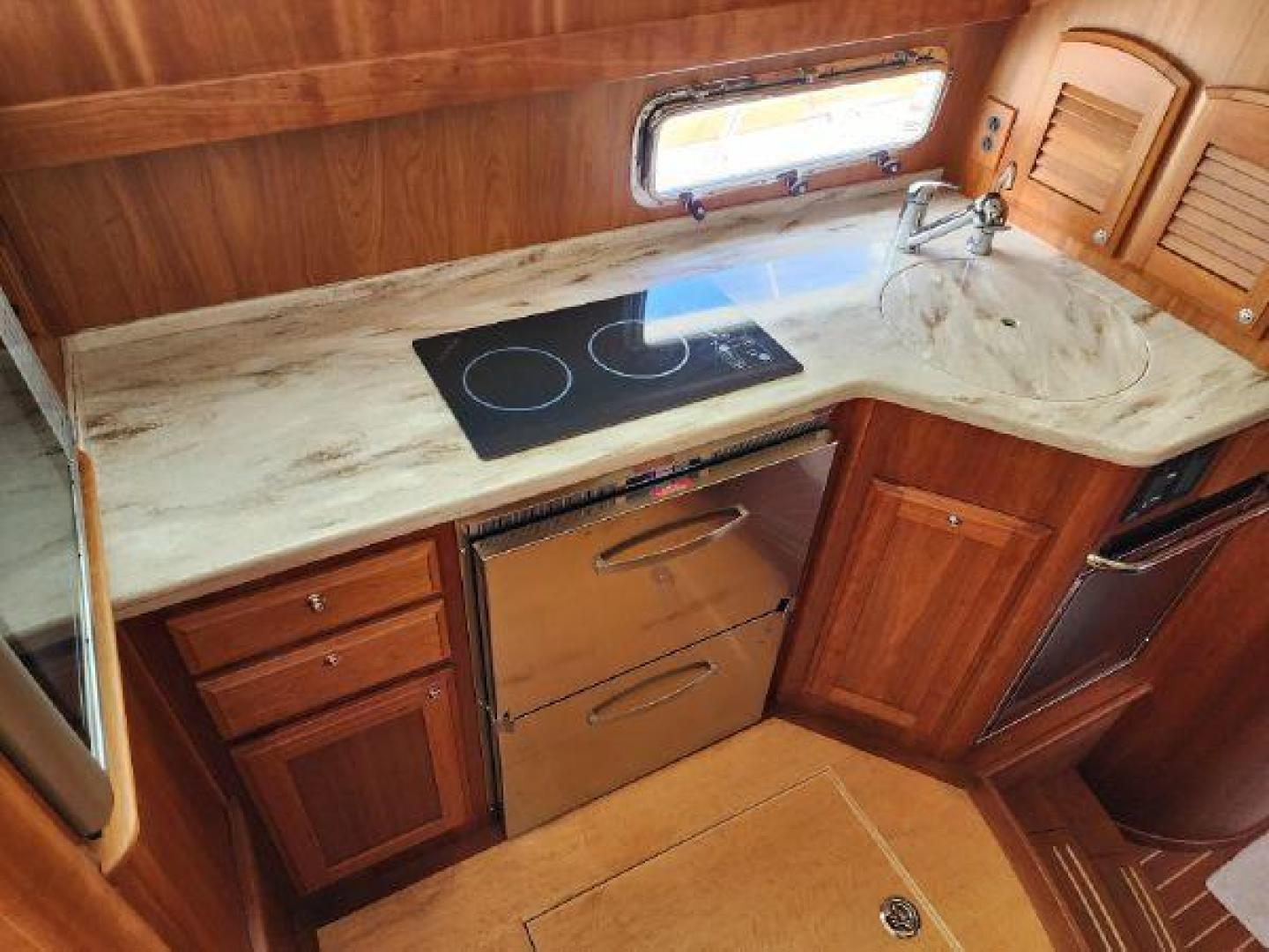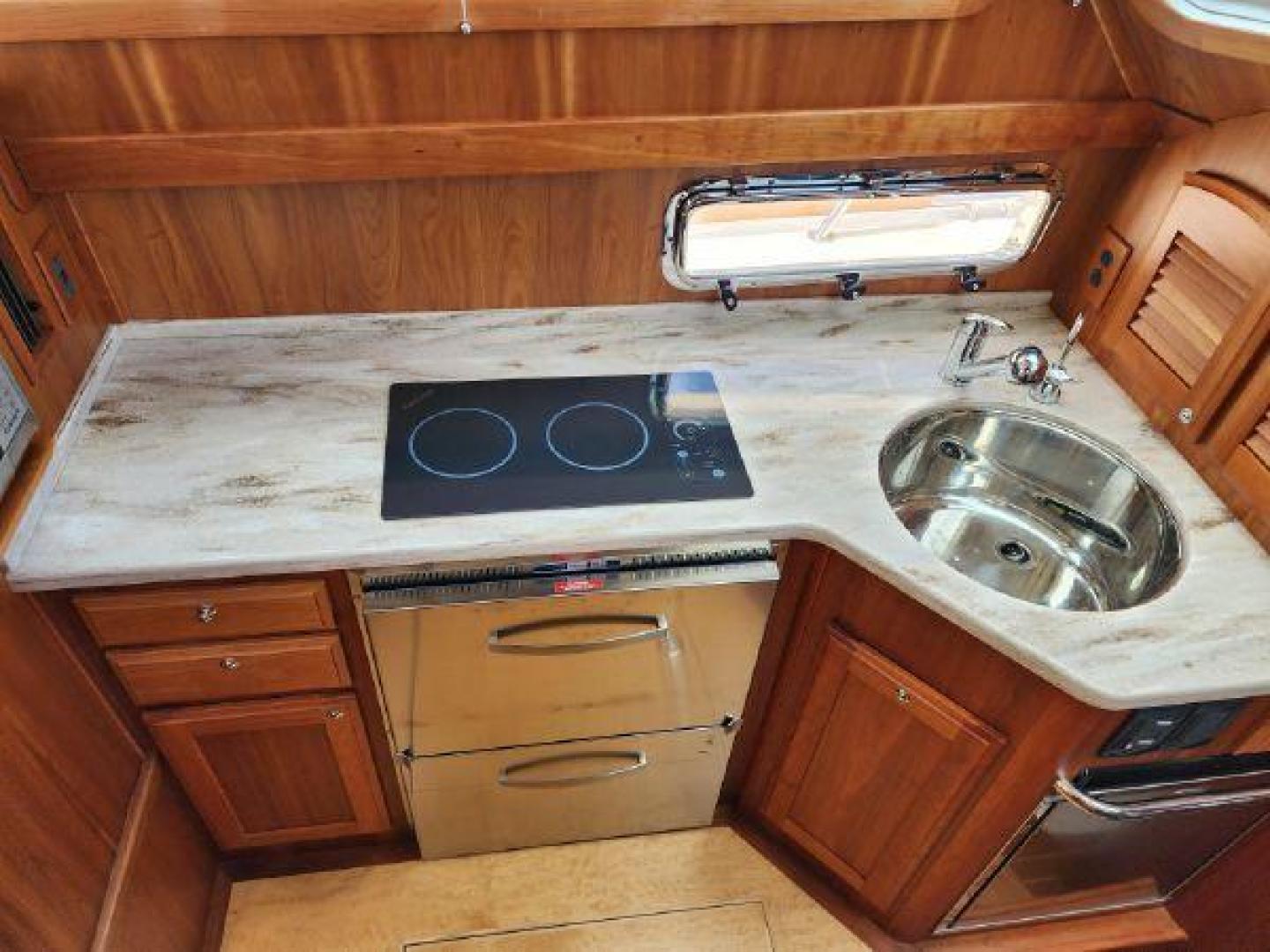 - Solid surface galley counter top induction cooktop