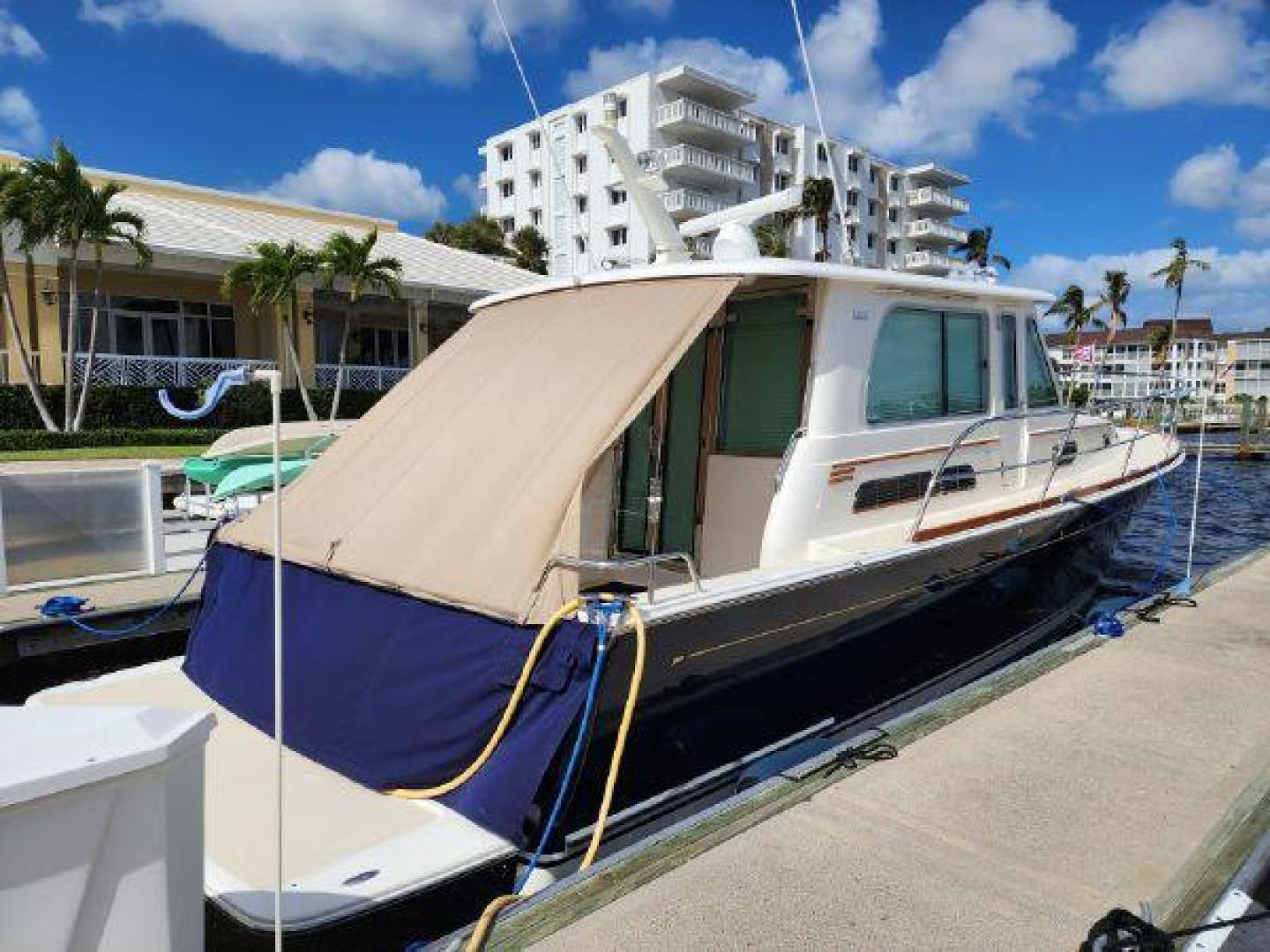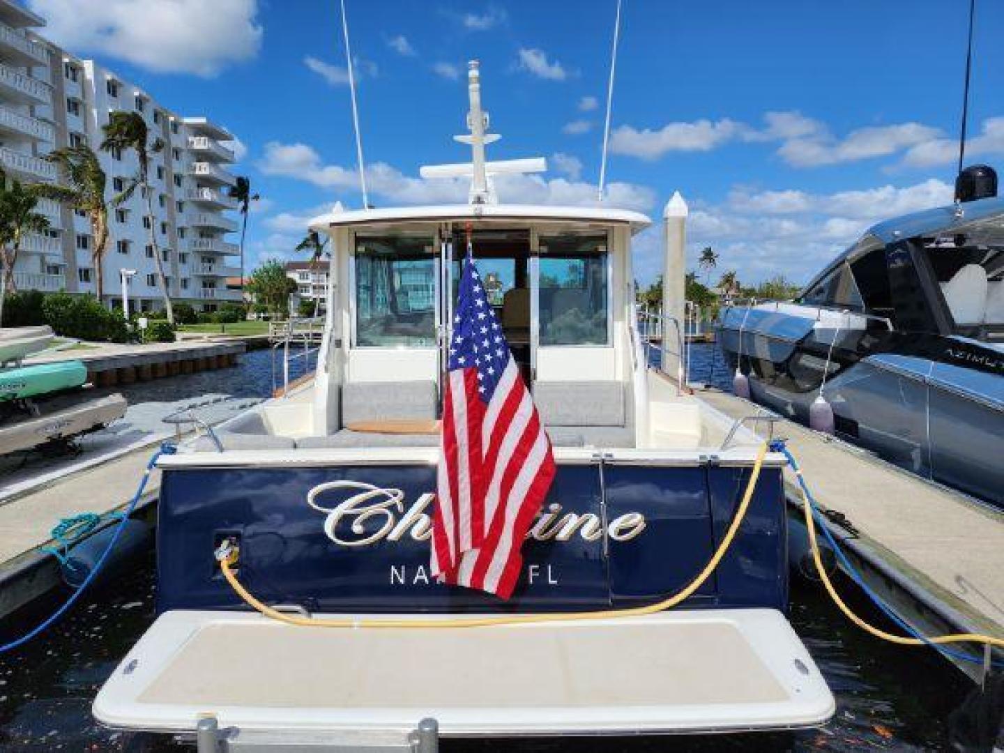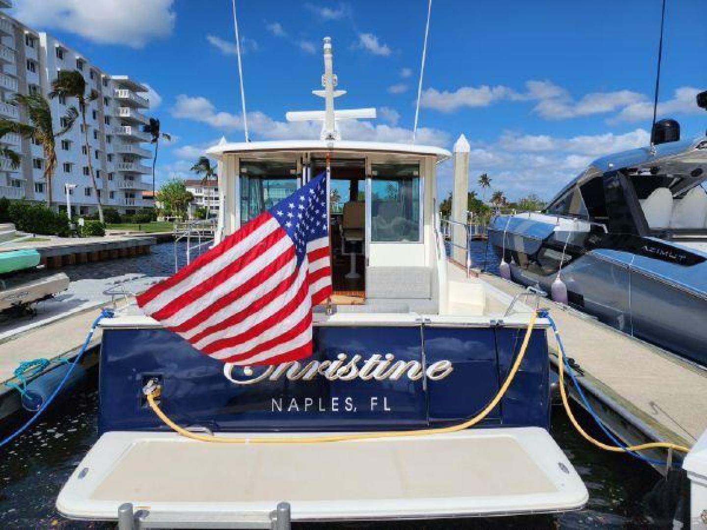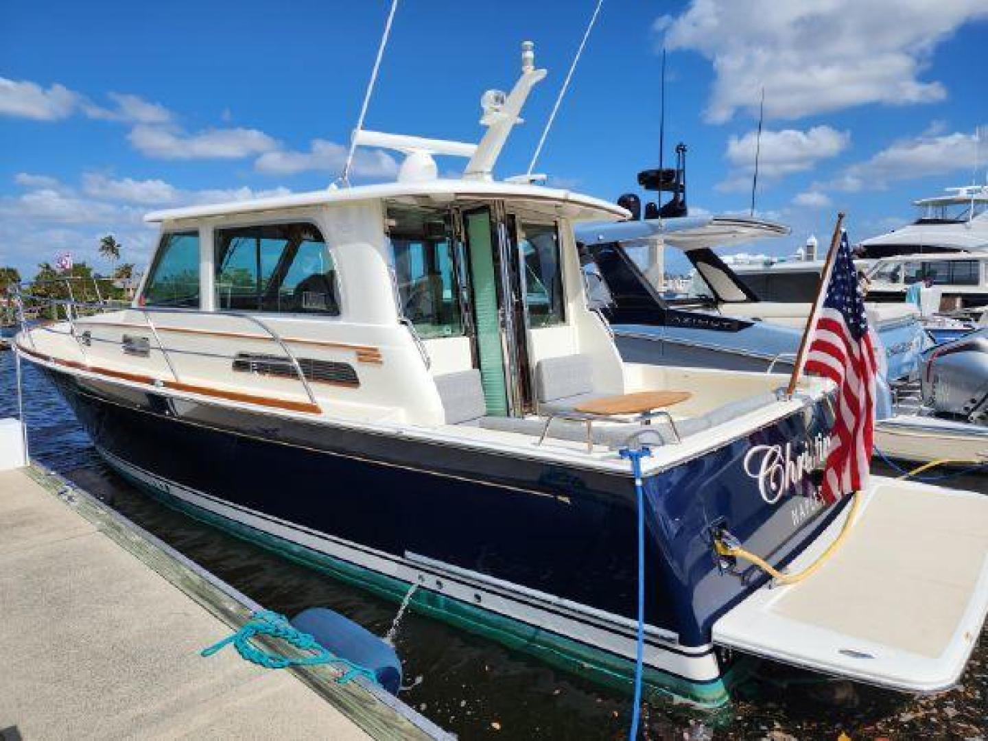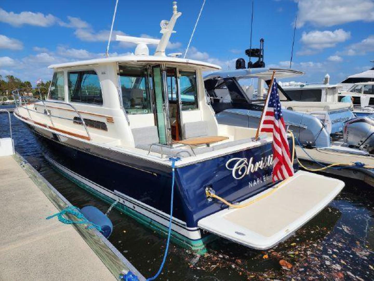 - Hinged access door to side deck at helm