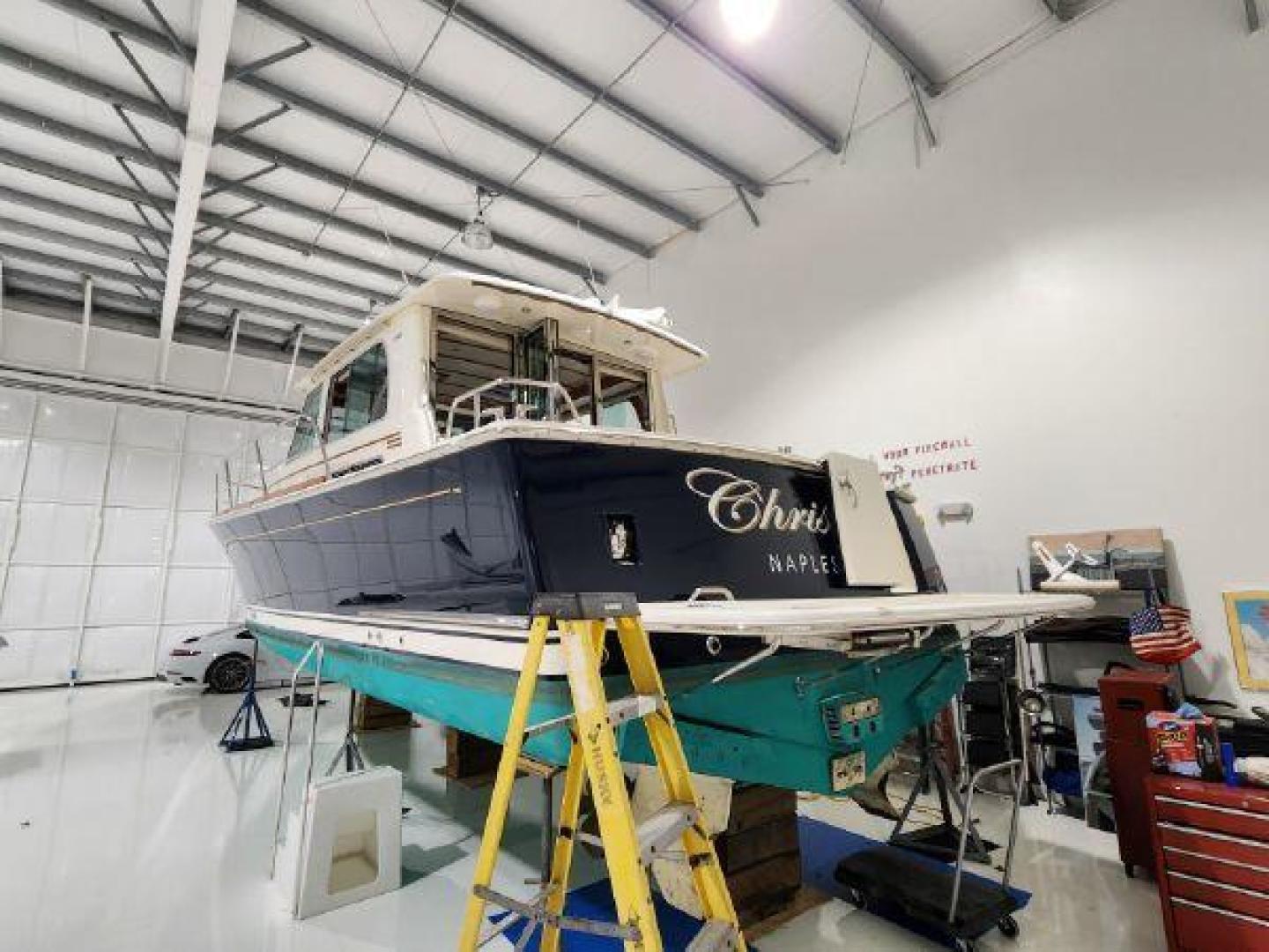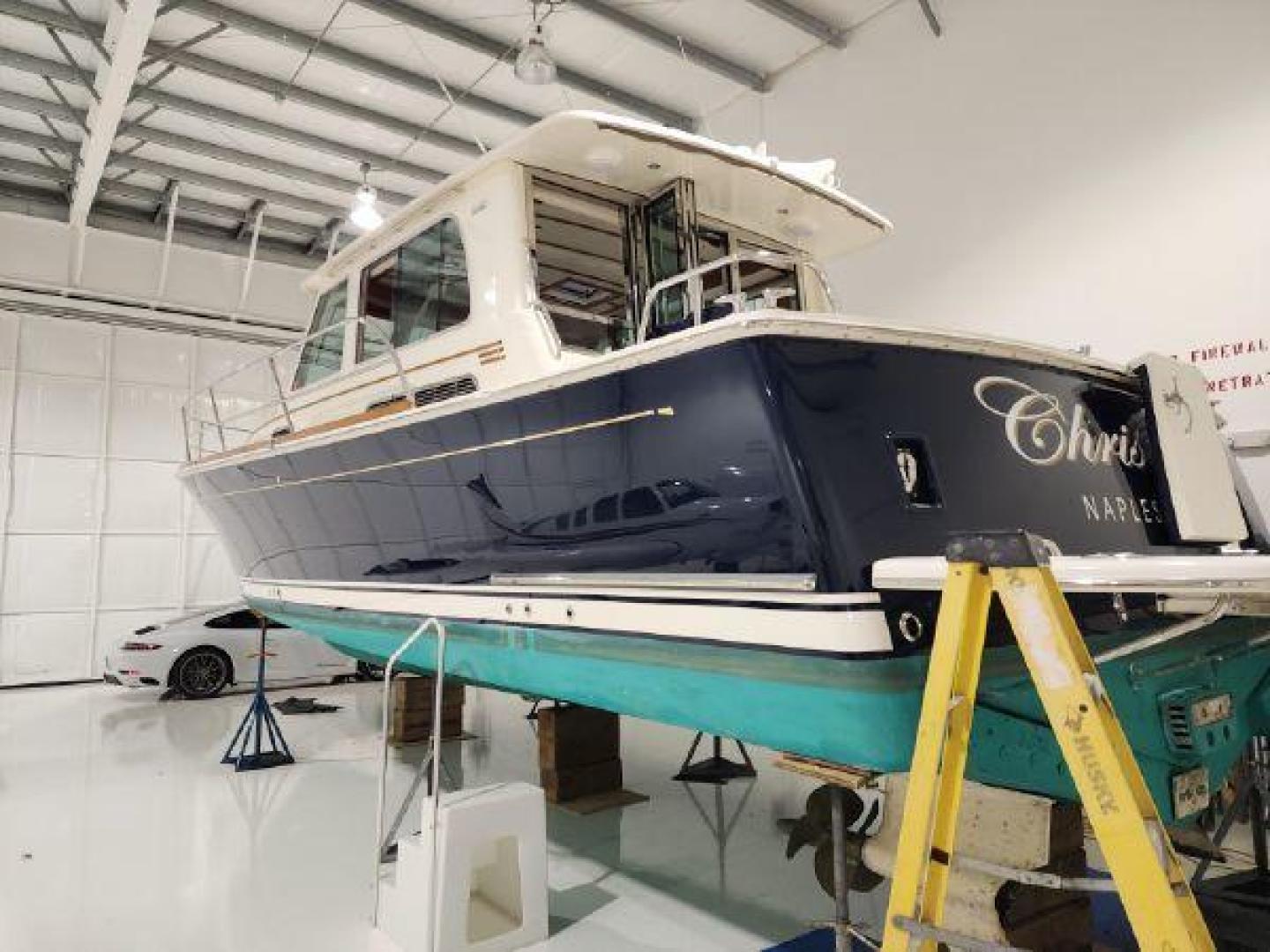 - Modified Deep “V” Planing hull design, with shallow pod drive tunnels for standard Cummins Zeus installation