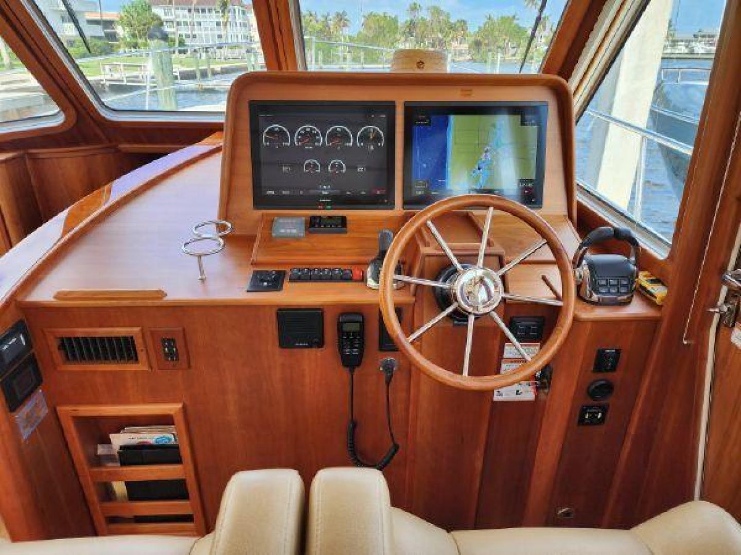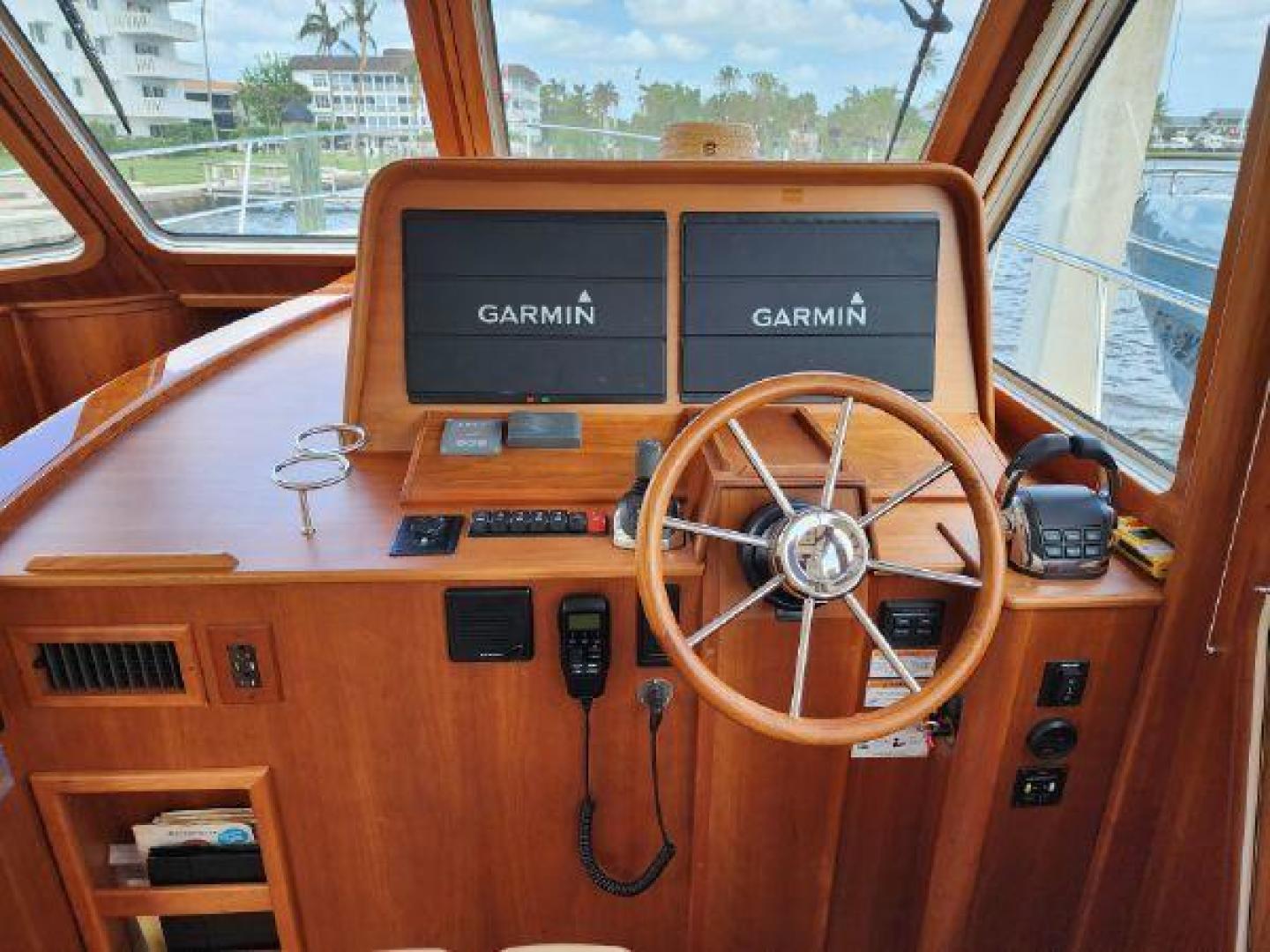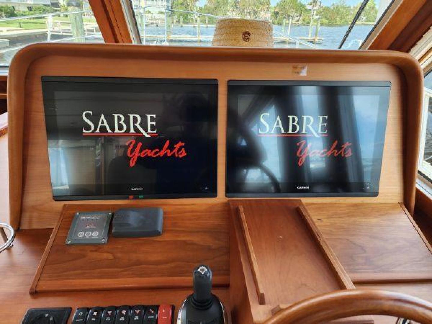 - Stazo 400mm custom teak steering wheel with tilt helm and Sabre logo