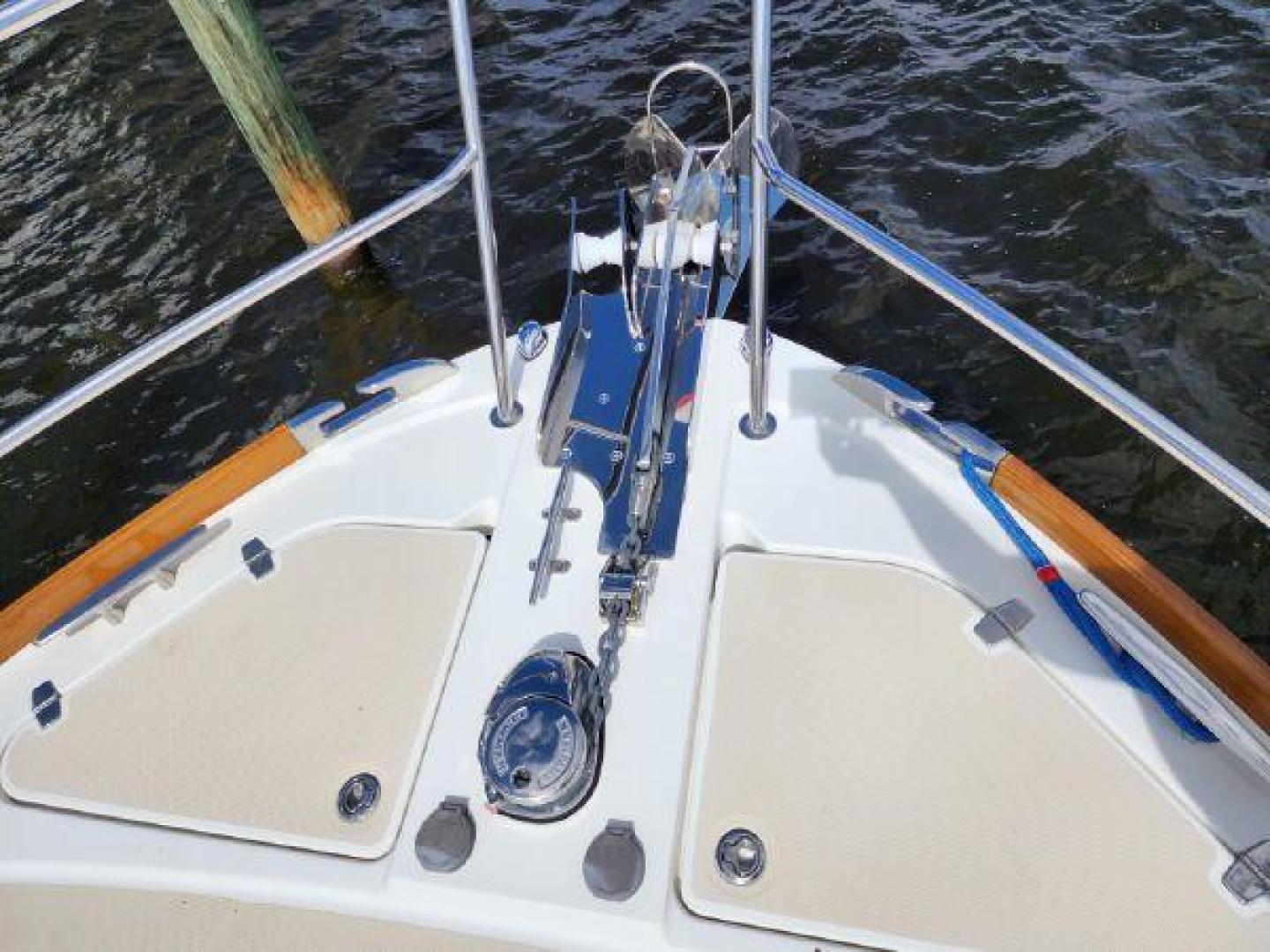 - 10” Stainless steel cleat to starboard of windlass as anchor rode tie off