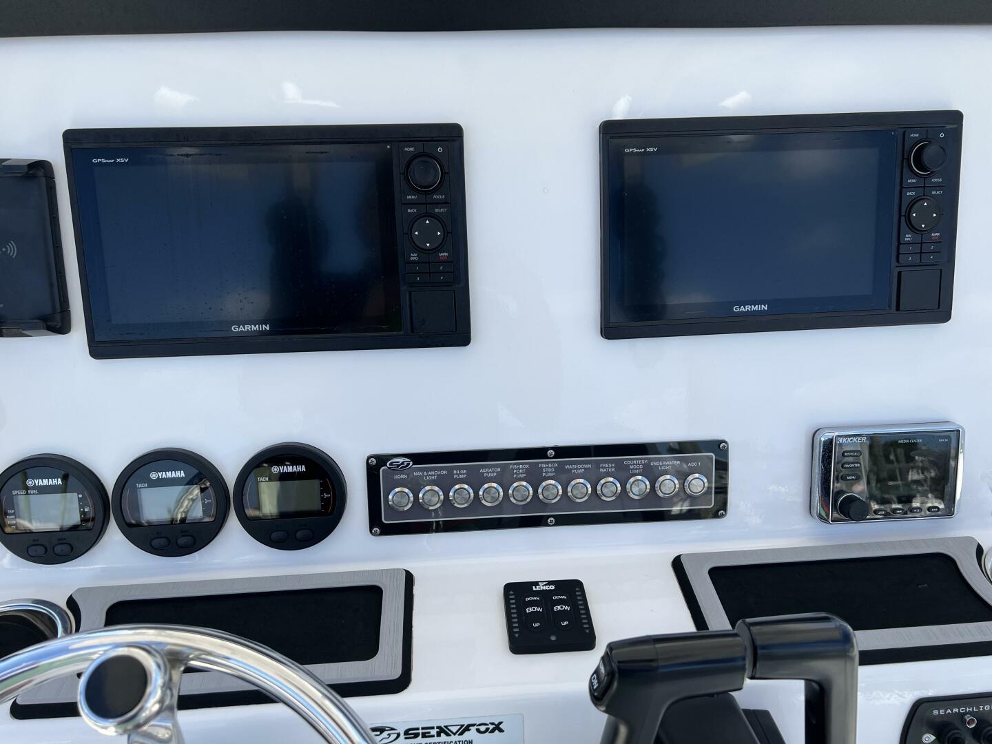 - Ultima hard top - recessed LED spreader lights (2), molded-in storage box (4), safety storage box forward (1), Kicker stereo w/MP3 adaptor & 6 Kicker speakers in deck, LED lights (2) - red, blue & white (power cycle), rod holders (7), illuminated switch panel, safety storage box (forward), moonroof w/slide open glass, reinforced pads for dual antennas & Garmin radar