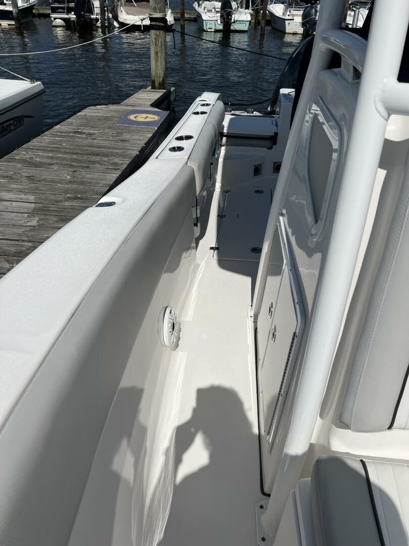 - Storage - transom walk-thru compartment for beach anchor or drainable insulated cooler