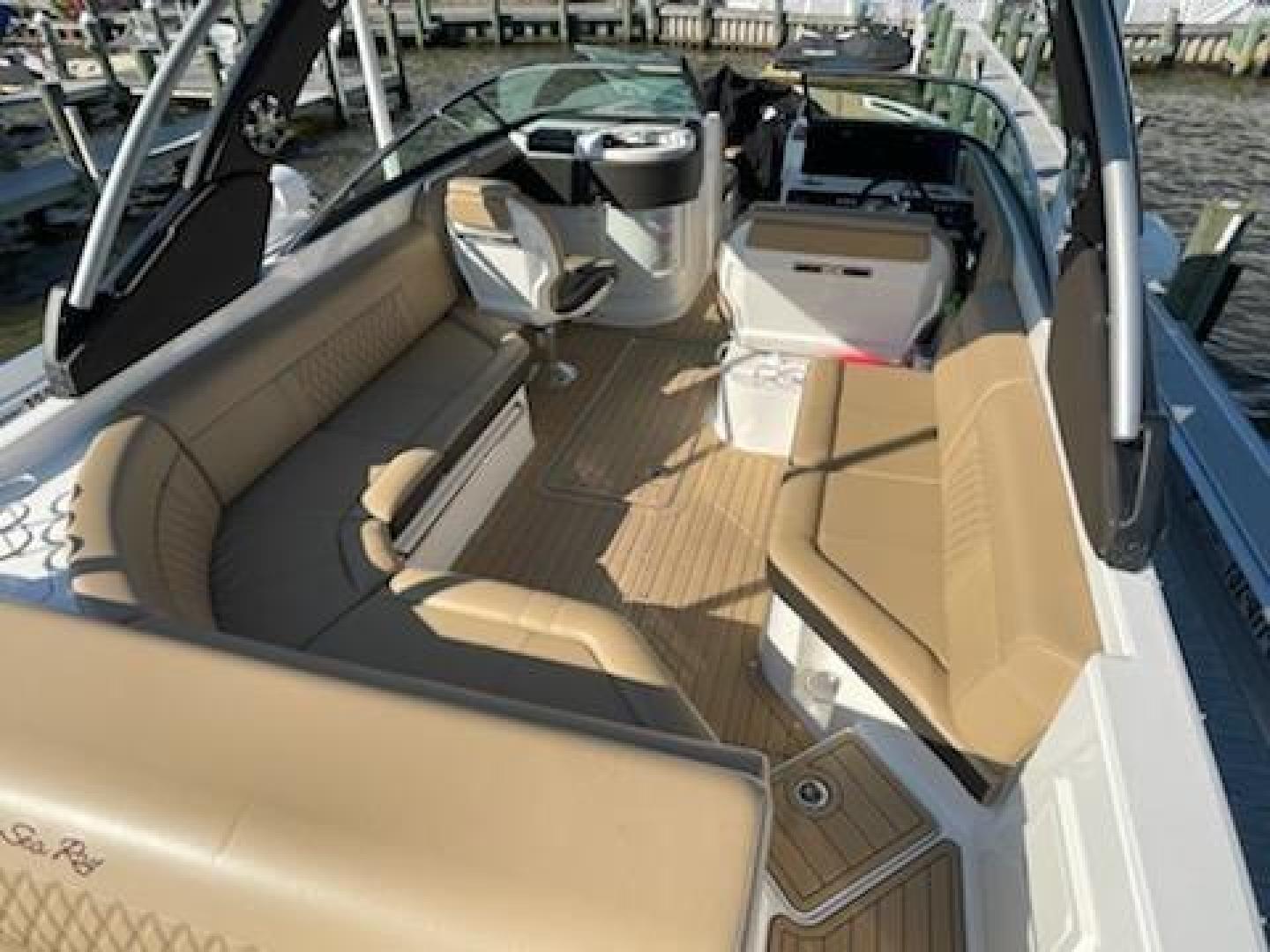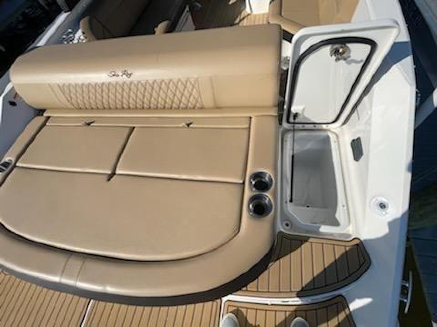Not all accessories shown or described herein are standard equipment or even available as options. Some features and options may not be available when a boat is built for outside North America and/or has CE Certification. Options and features are subject to change without notice. Not all model-year boats may contain all the features or meet the specifications described herein. Confirm availability of all accessories and equipment with an authorized Sea Ray dealer prior to purchase.
