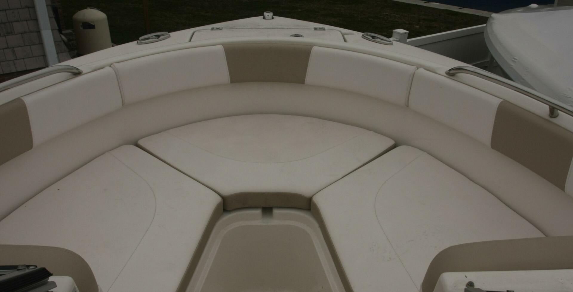 Boats like the R227 are the reason why dual console outboards are one of the hottest sellers on the water today. In what other 22-footer can you fish at sunrise, wakeboard all day and cruise under the moonlight? As a fishing machine, the R227 includes secure rod storage, a raw water wash down, a self bailing cockpit and a 20-gallon livewell. Up front, the bow area easily converts from a casting platform to wraparound seating. In the cockpit, the R227 features a large enclosed head and a deep infloor ski locker with lockable rod storage. Stainless steel hardware including flush pull latches and electro-plated thru hull fittings are what you'd expect from Robalo. Key options include a must have Bimini Top with windscreen, ski tow bar, snap-in carpet and a freshwater shower.