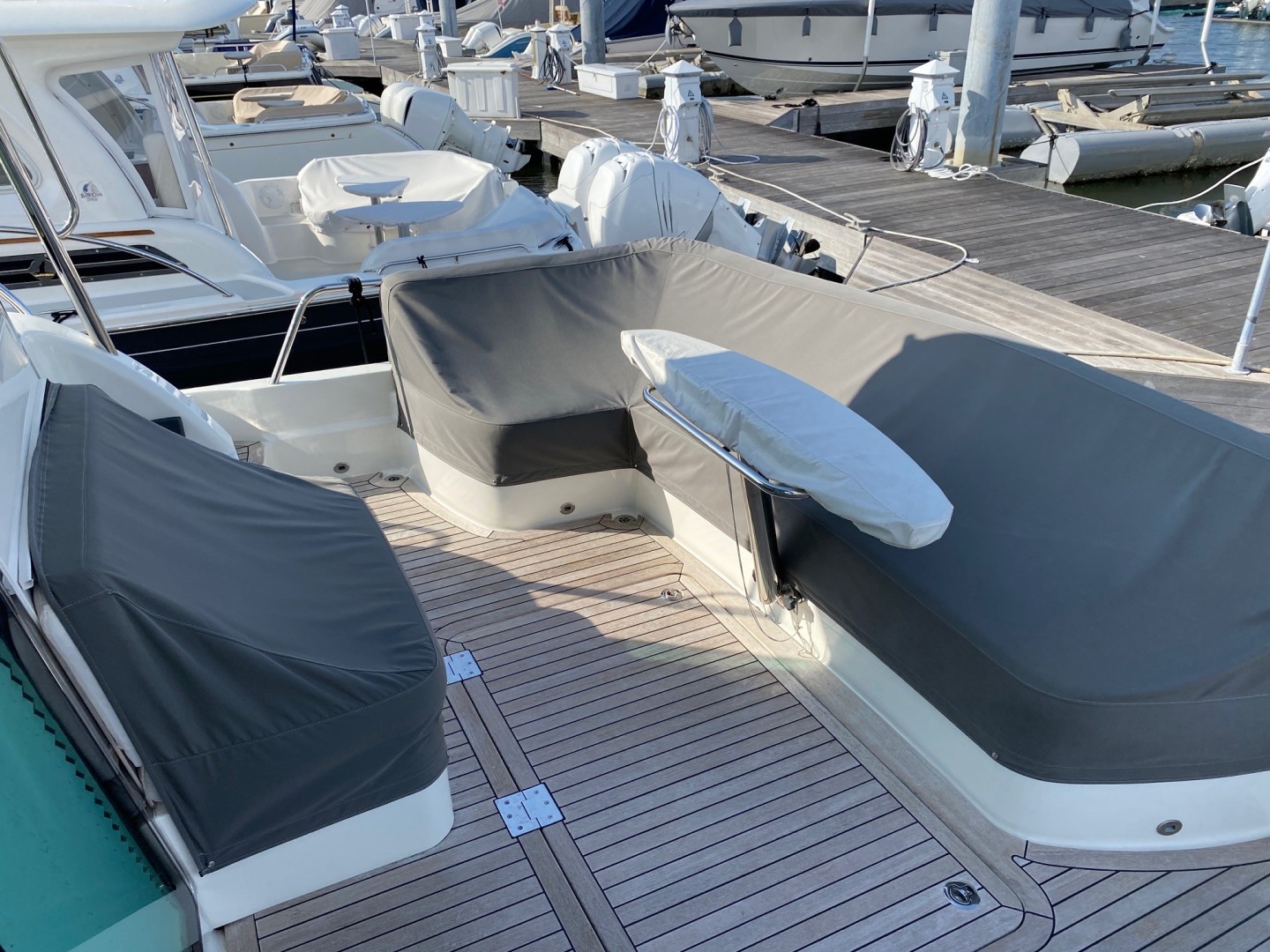 - (2) Stainless 12″ cleats on cockpit coaming on centerline