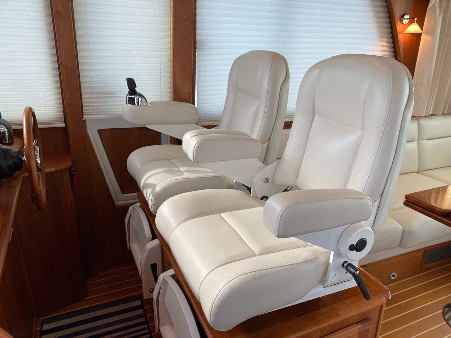 - Twin Stidd N Series helm seats w/ Ultraleather® fabric mounted on a cherry cabinet