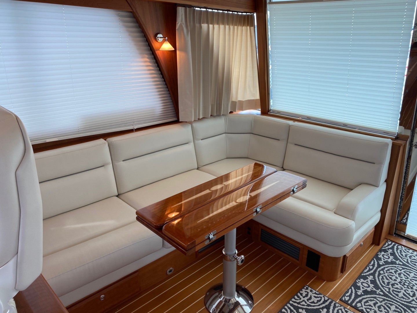 - “L” settee to starboard, 5” foam cushions, with storage and Sabre tool drawer under.
