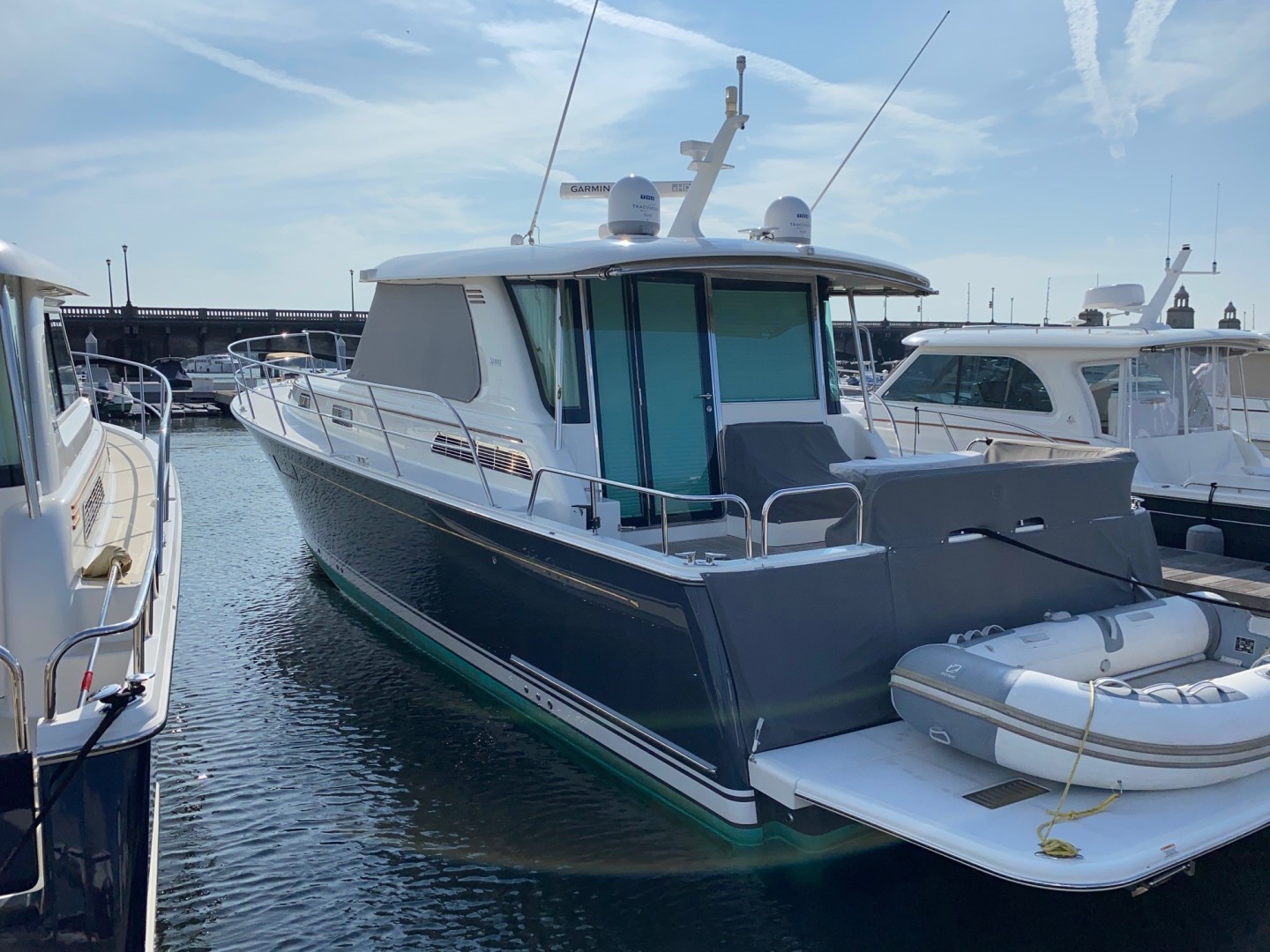 - The 48 Salon Express has a traditional exterior profile that belies her contemporary performance. She cruises at 27 knots and, and at wide open throttle, she’ll attain more than 32 knots. Pod drives and joystick controls give every owner-operator the confidence to dock her in the most difficult of circumstances, and remarkably low sound levels while underway allow for a more pleasant experience while cruising.