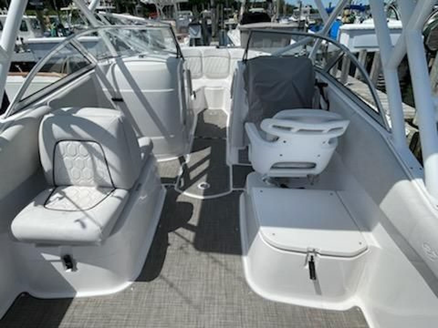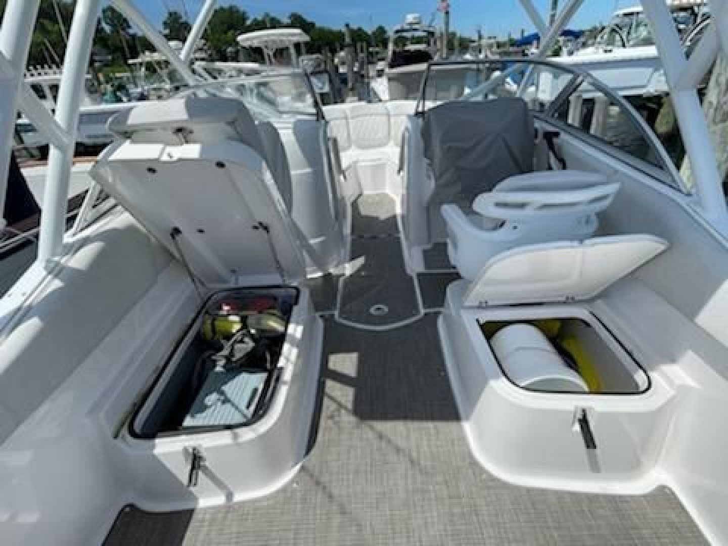 - Storage/fish boxes - under helm & passenger seating