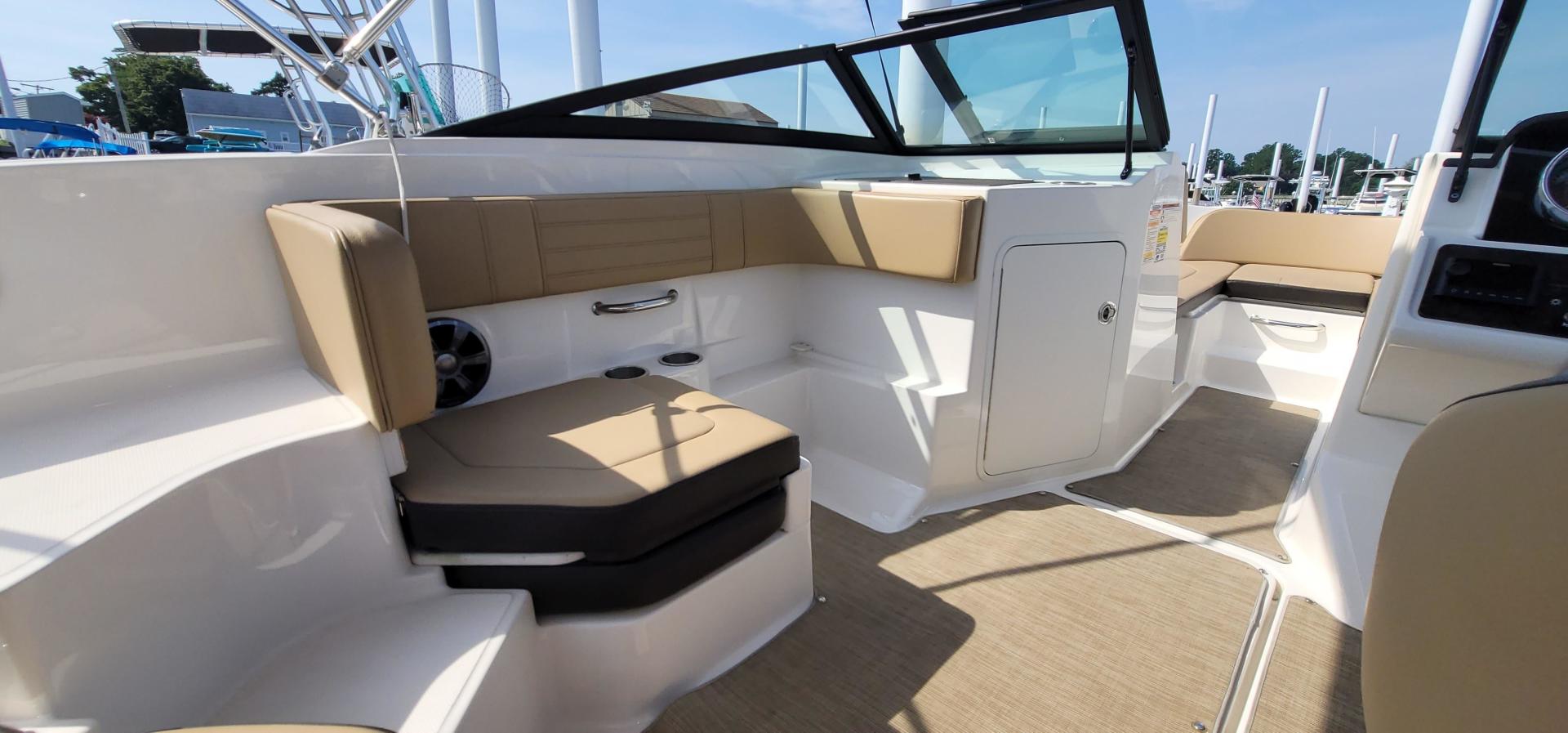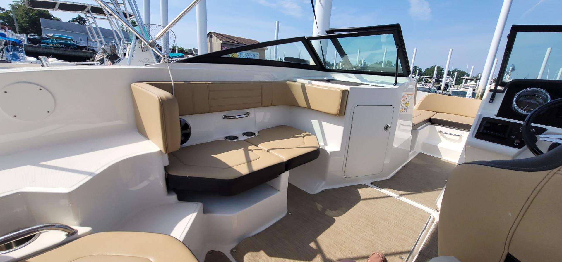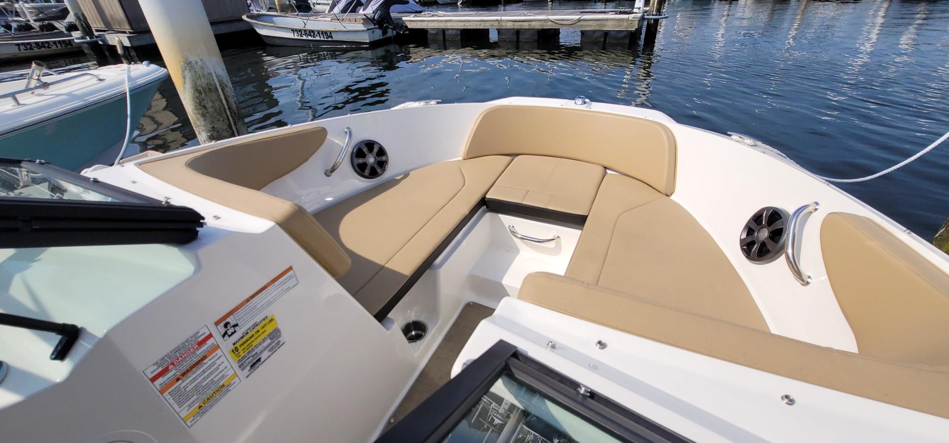 The SPX 190 Outboard is standard with a companion bench seat with stowable forward seat cushion and removable aft bolster.