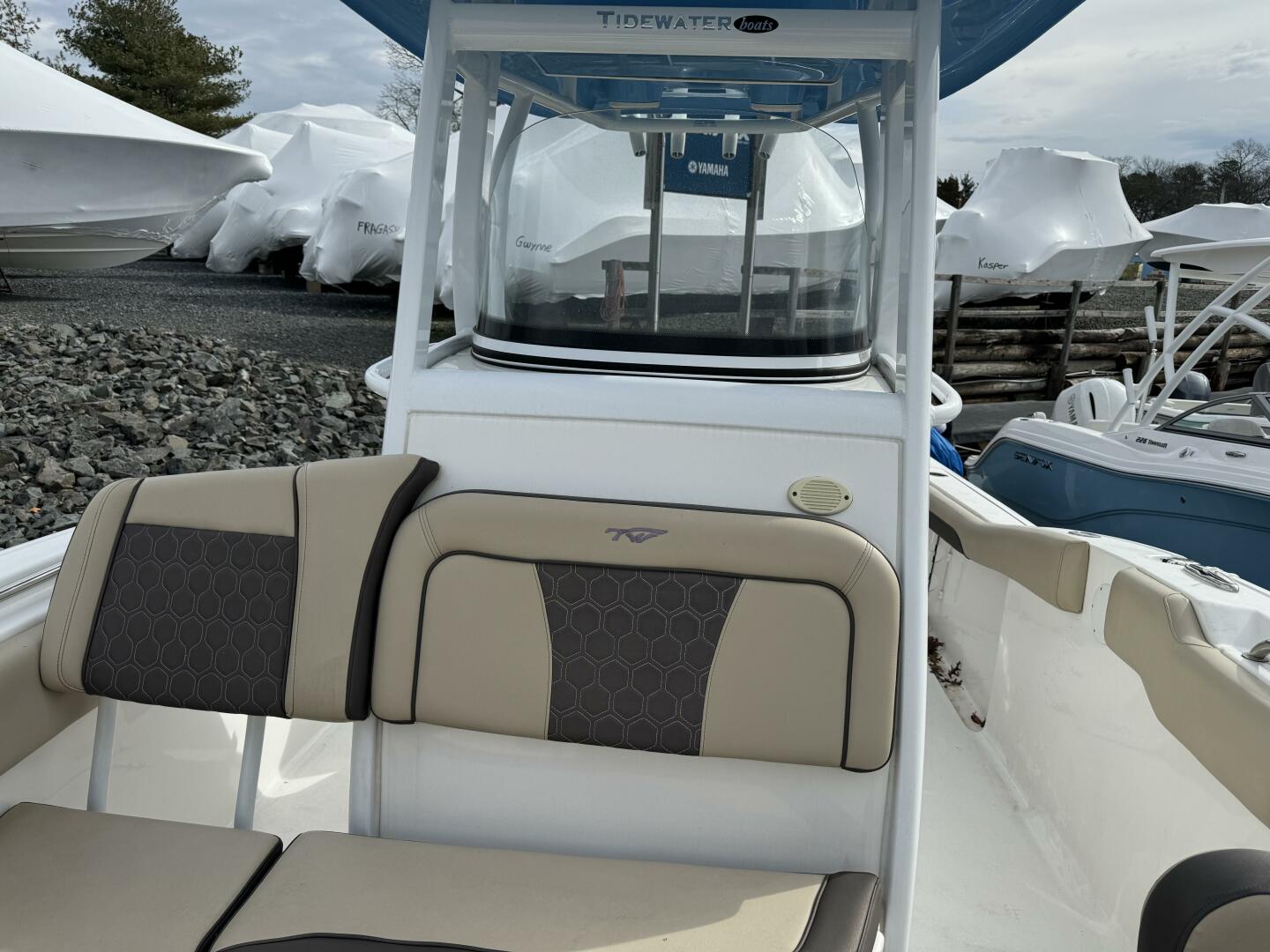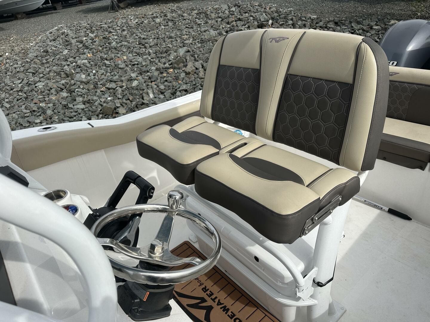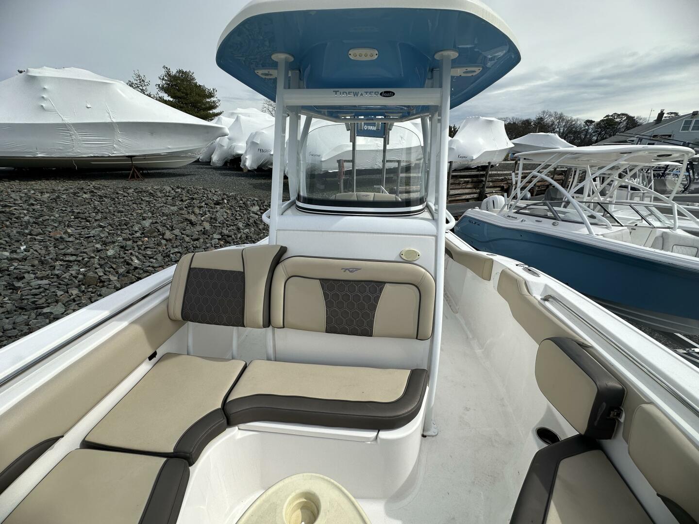 The Tidewater 252 CC is loaded with comfortable full upholstery and stainless steel cup holders. It is equipped with glove box and footrest, includes catch-all trays in front and on top. It comes equipped with a large livewell, immense fixed T-Top, rod storage, fresh water wash down and a console with room for all of your electronics. Large rear seat with a walk through transom door, all standard. Family friendly bow seating makes this 252 CC a luxurious refined boat.