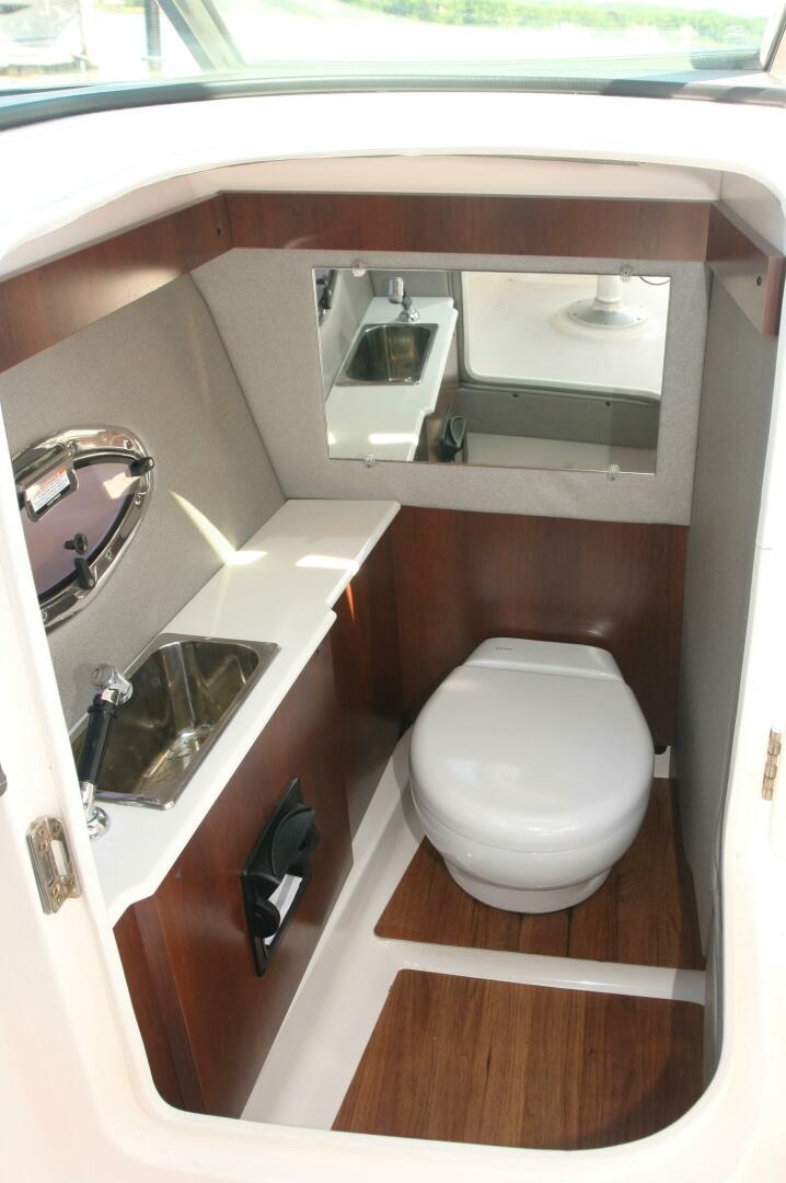 Up forward are twin forward-facing lounges with folding armrests and comfortable backrests. High freeboard continues from the cockpit to the bow, allowing you to sit deeply in the lounges. Forward and side cushions lift to reveal ample stowage compartments. There’s an anchor locker up front, with the optional power windlass.