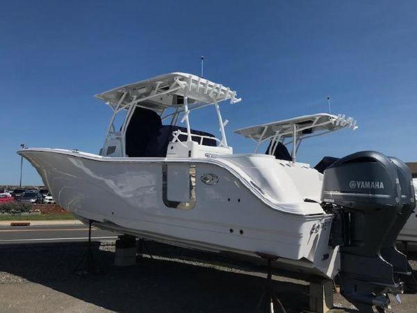 This beautiful, fully equipped 288 Commander offers everything you need for some serious offshore fishing action as well as trips taken with the family. This is the first Sea Fox model to offer side door access in the cockpit. Featuring joystick docking, hardtop, Twin Yamaha F300's dual Garmin color screens with radar, Hard Top, Pro Fishing Package, Dual live wells and lots more.