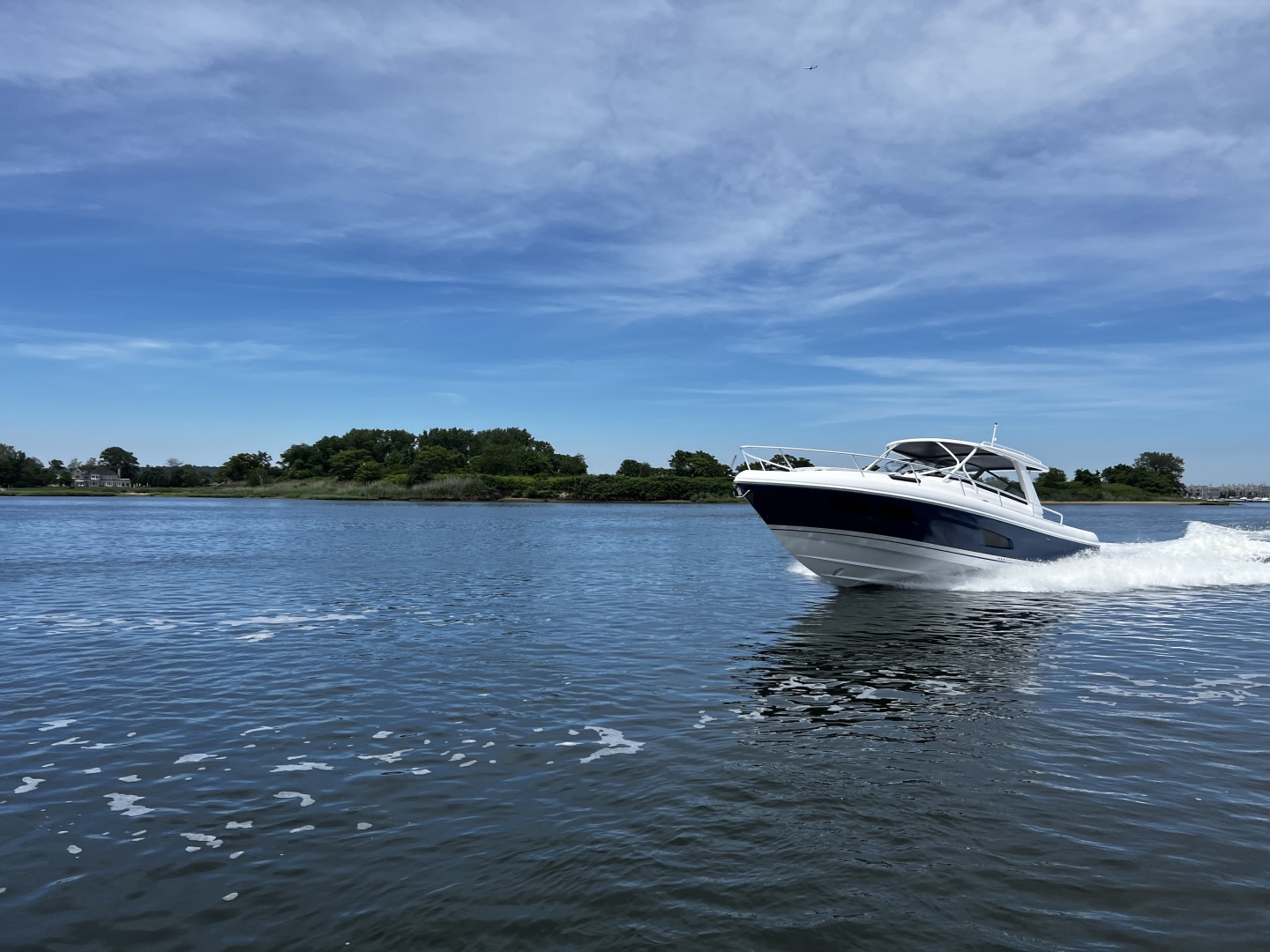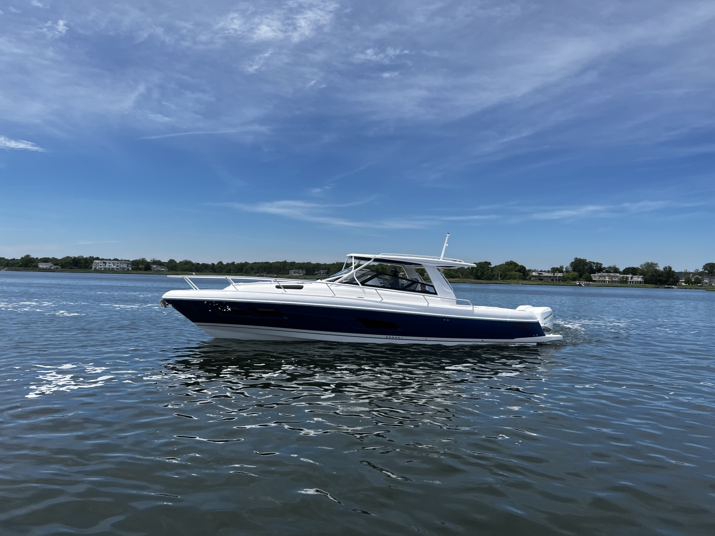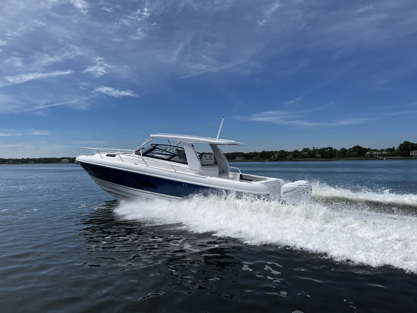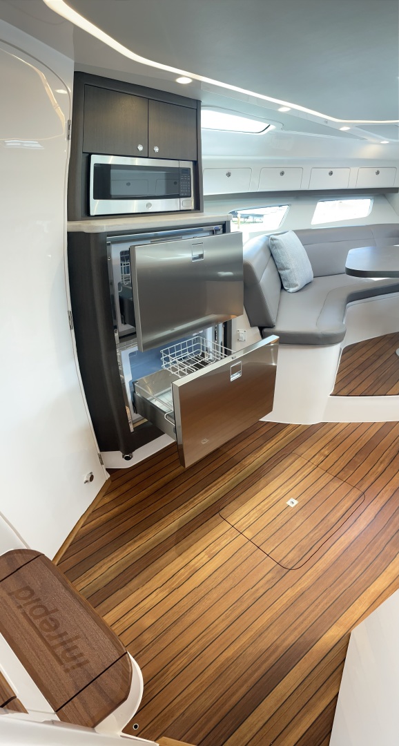 A cabin twice as large as an inboard of similar size? Heard. A racy, big water day boat for short hops Heard again. And complete, world-class amenities befitting a luxury yacht so you can hit the islands for a week at a time? Yes, we heard all of it. The 438 Evolution boasts a helm with a pop-up console equipped with the latest flat-screen electronics while an optional power sunroof overlooks wraparound club-style seating that inspires comfortable interaction. During the day, the state-of-the-art accommodations in the cabin are flooded with natural sunlight aboard this one of a kind sport yacht. You told us what you wanted. And we delivered the 438 Evolution as one very powerful, innovative and luxurious answer.