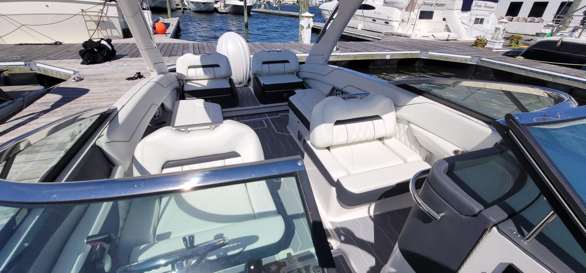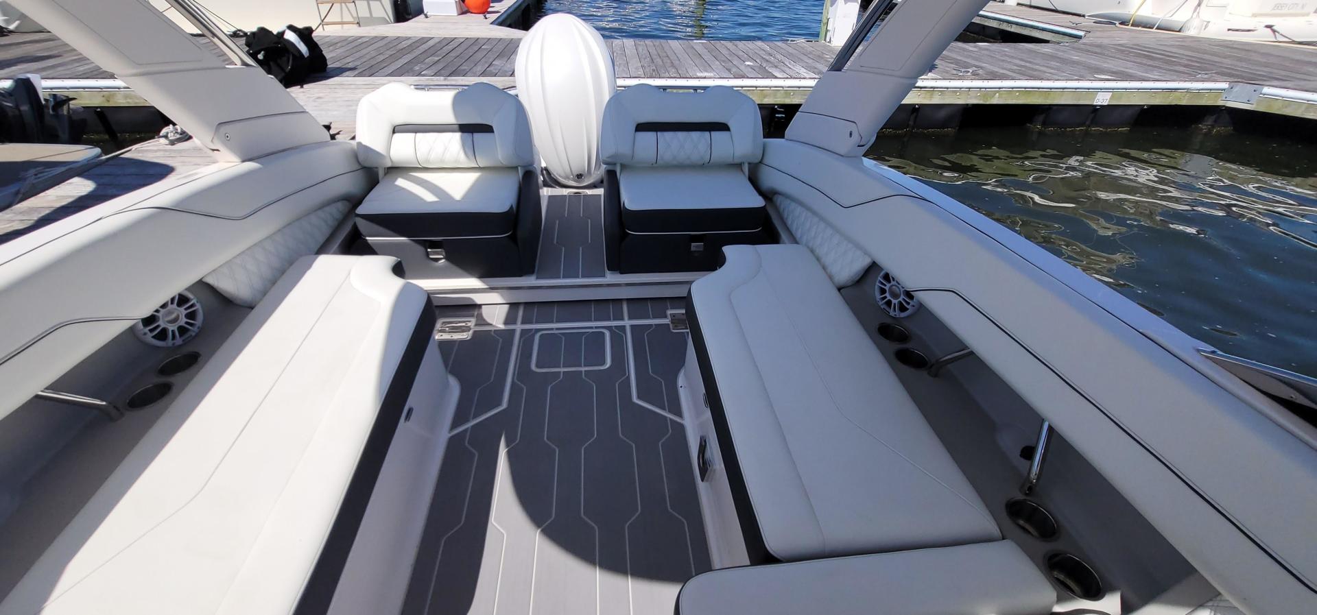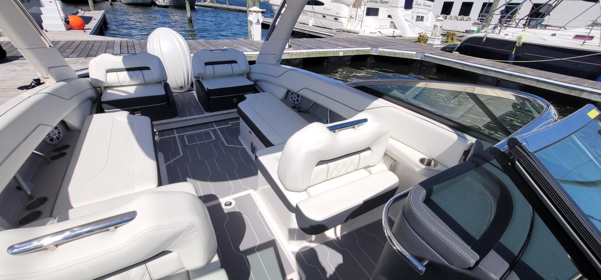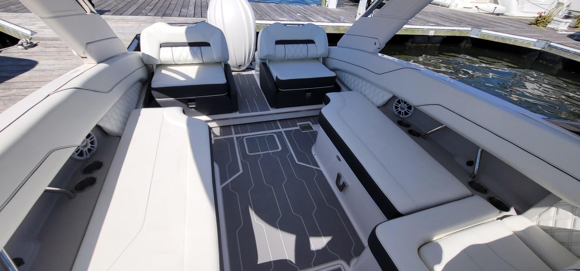 Create nearly a foot of extra space in the cockpit or at the swim platform with convenient Slide-Away Seating.