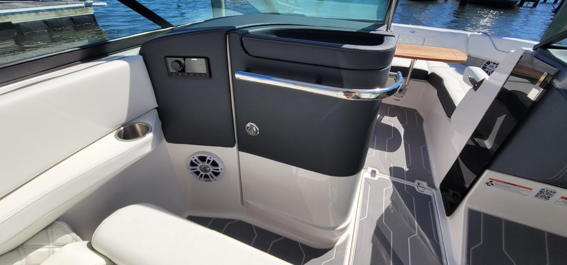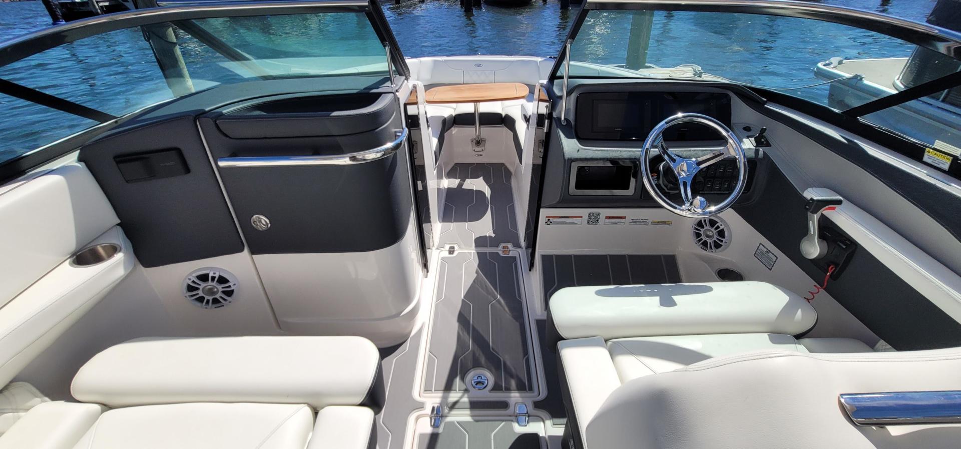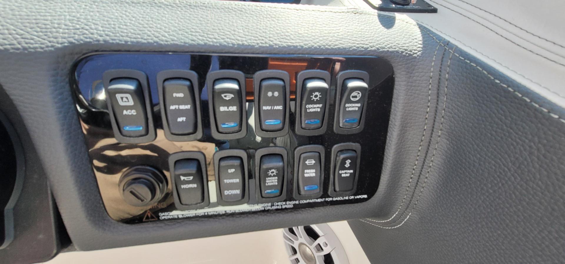 Get ready to begin your next adventure with elegance. On the LX6, hand-crafted Titanium colored upholstery, cavernous storage, and innovative features combine on an optimized platform for an unrivaled ride. This beautiful boat has the preferred Graphite Hull Color and Mediterranean Blue Bootstripe Color which is complemented by the black canvas.