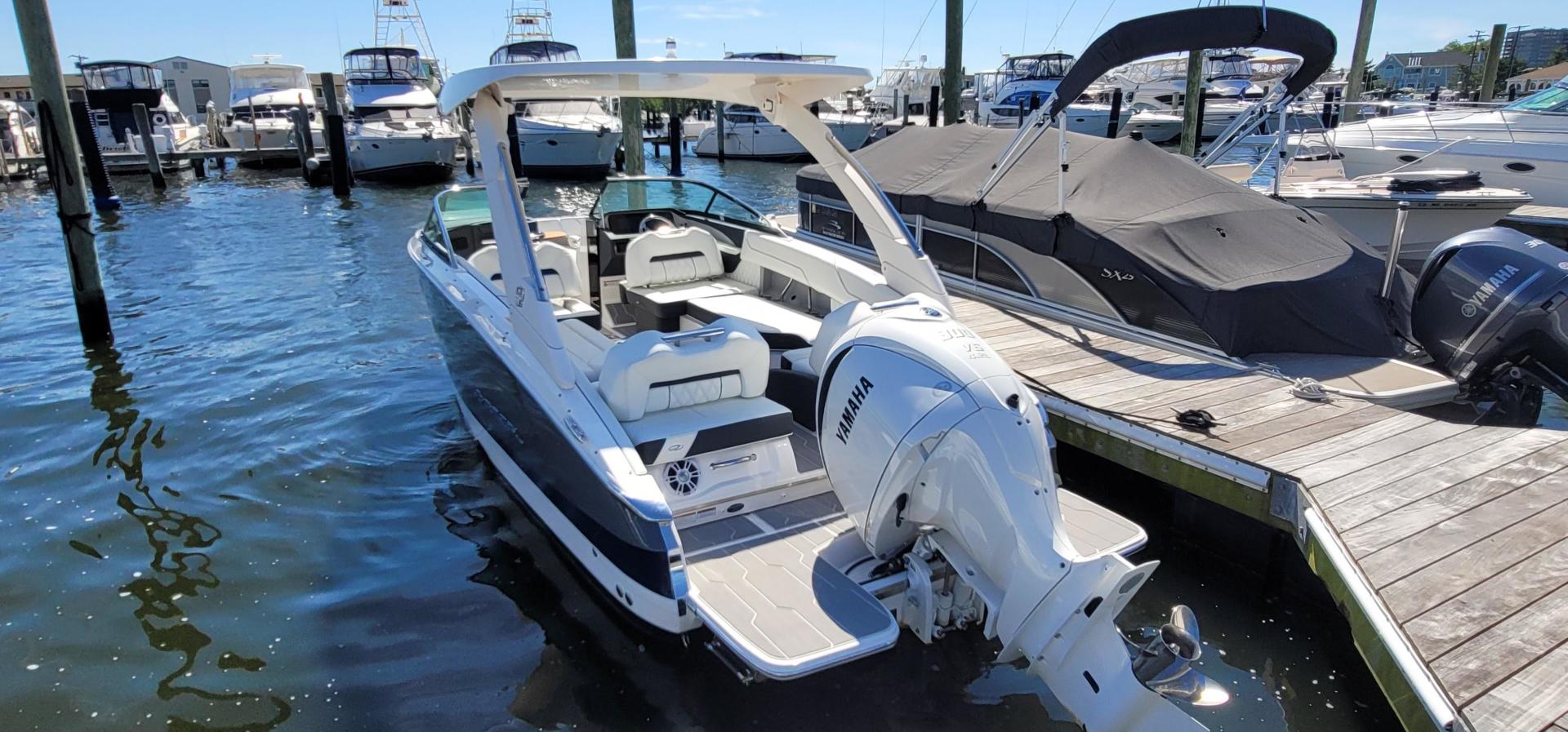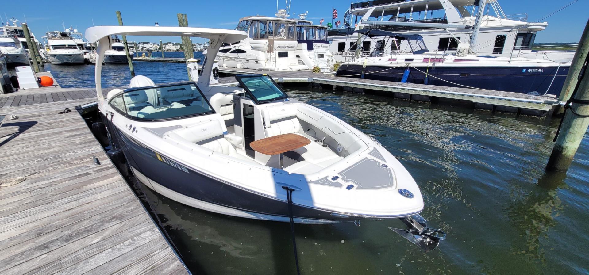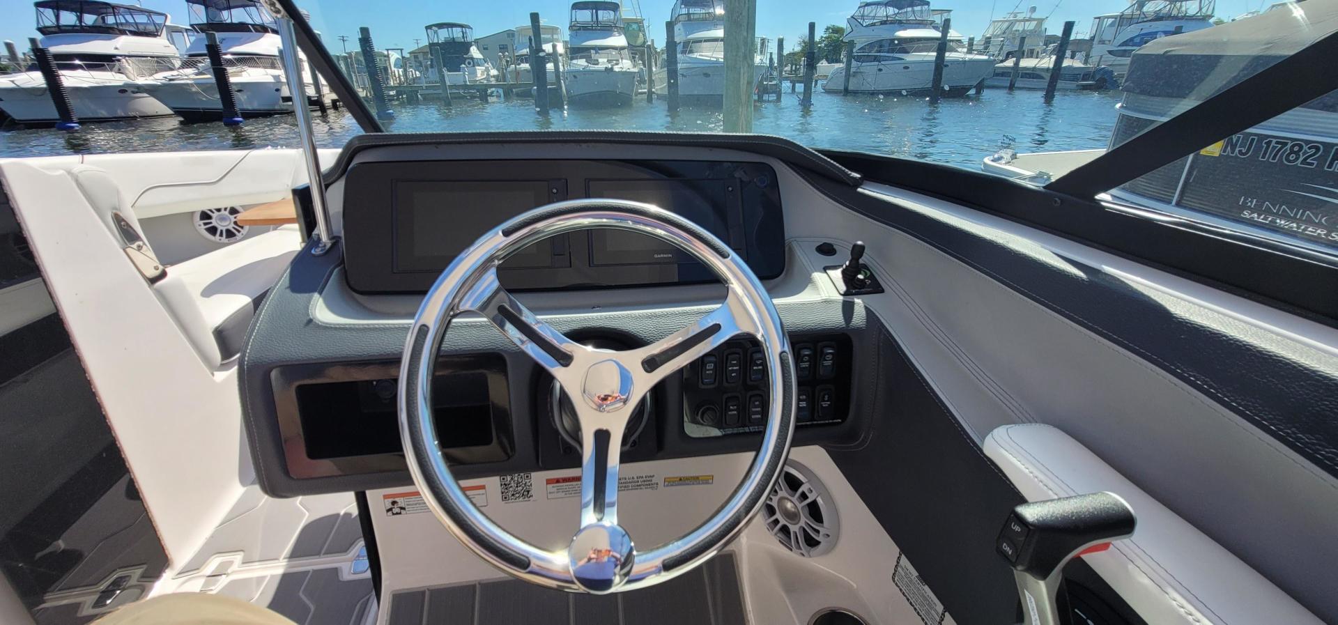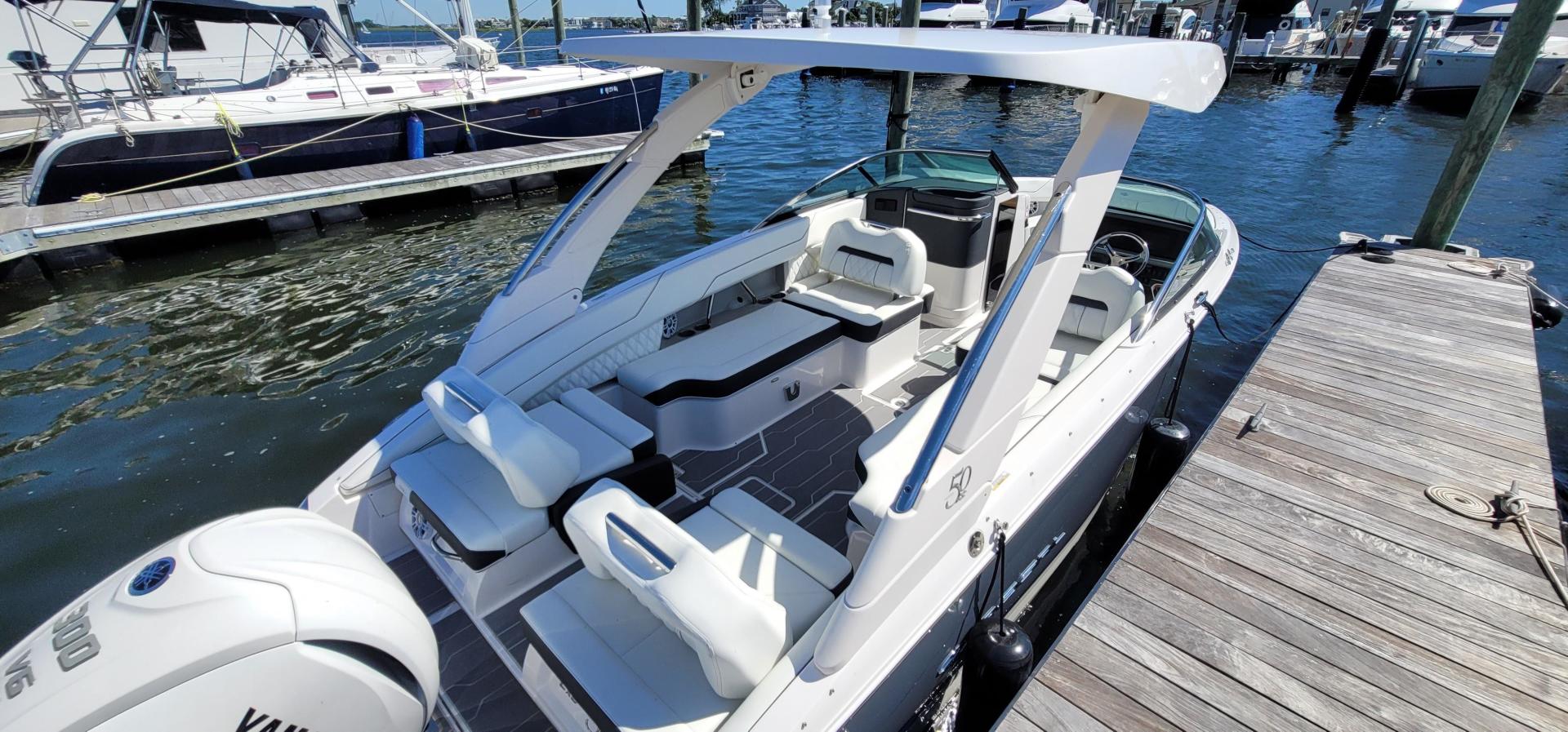 Get ready to begin your next adventure with elegance. On the LX6, hand-crafted Titanium colored upholstery, cavernous storage, and innovative features combine on an optimized platform for an unrivaled ride. This beautiful boat has the preferred Graphite Hull Color and Mediterranean Blue Bootstripe Color which is complemented by the black canvas.