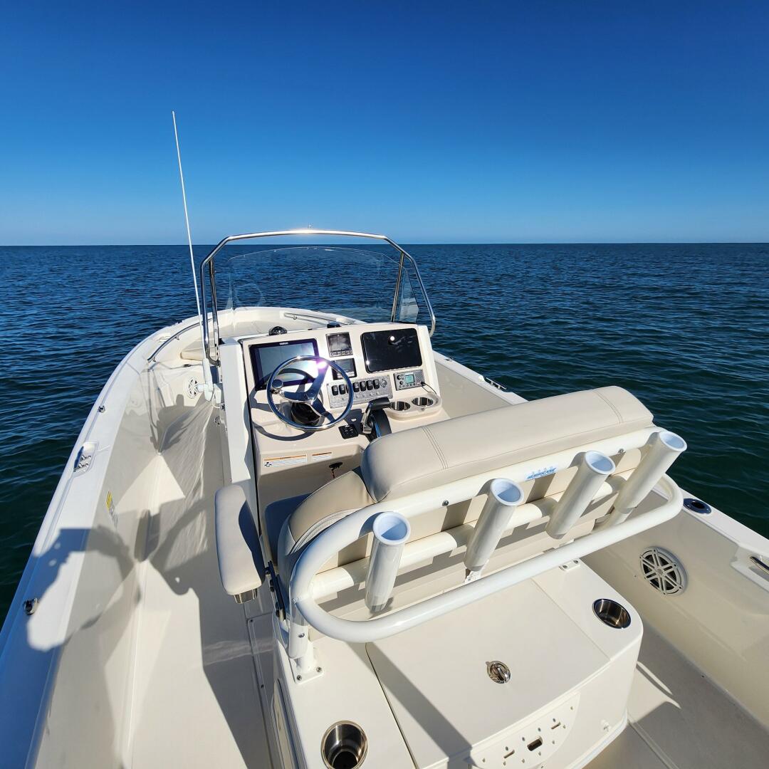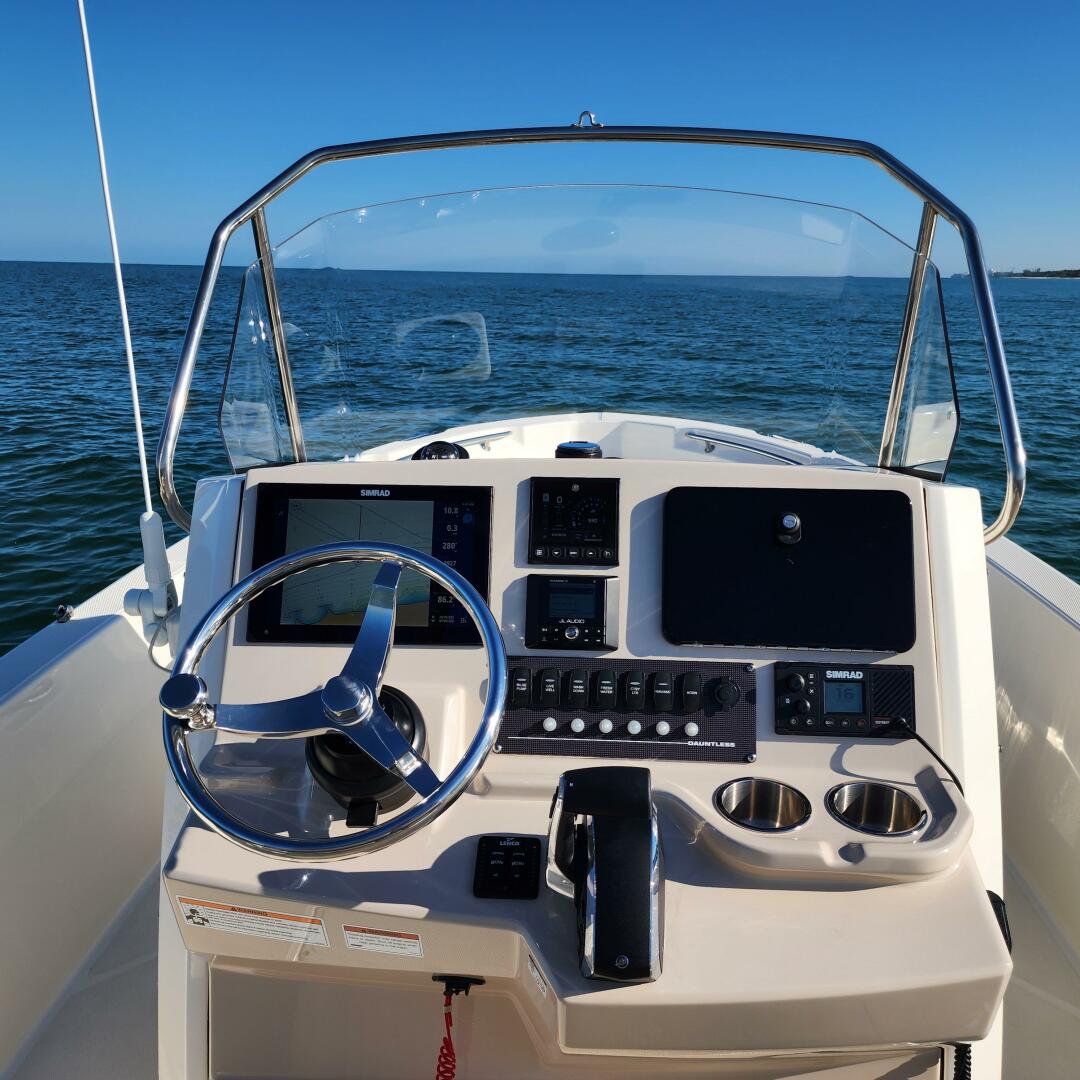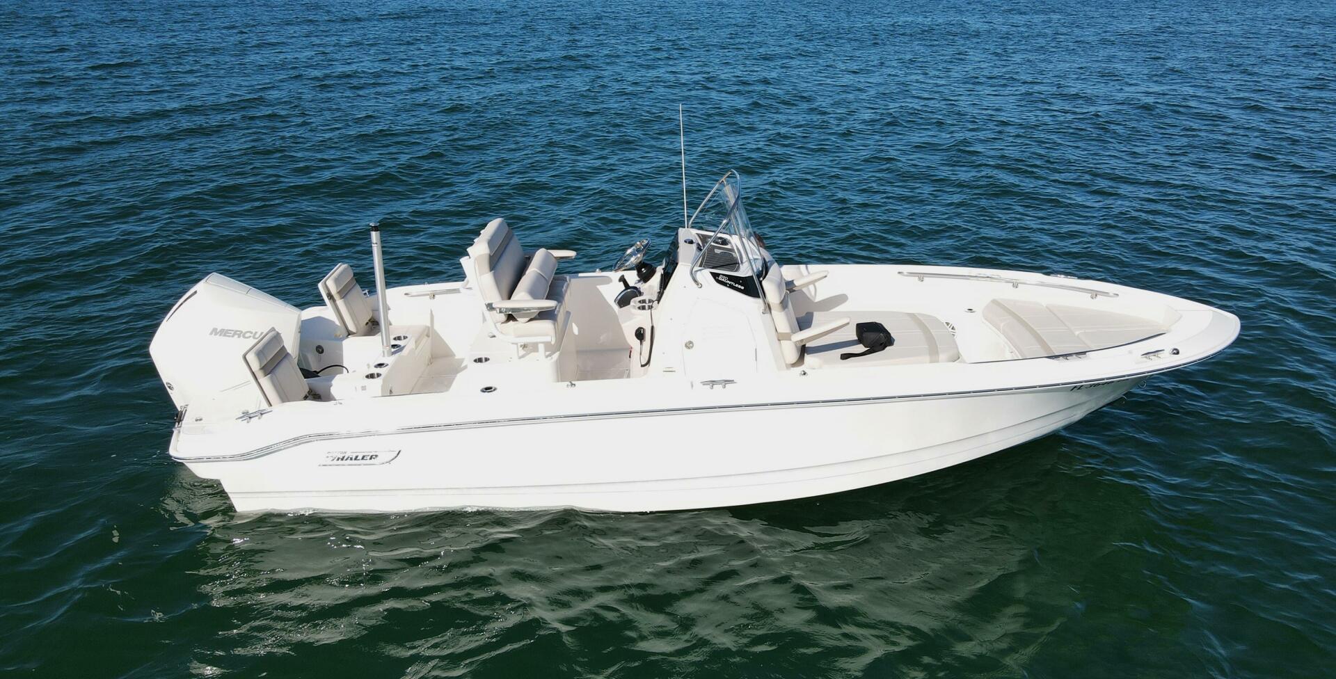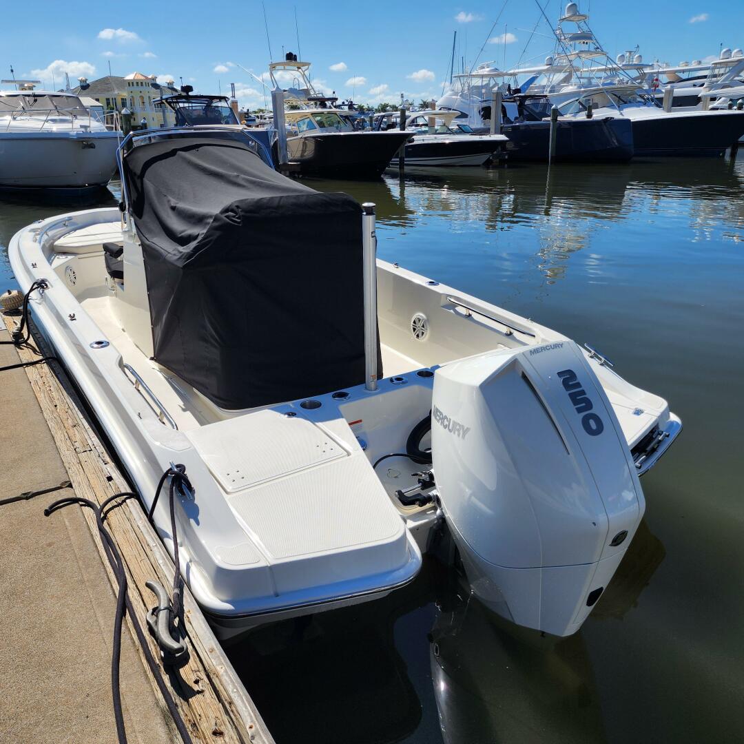 Great opportunity to purchase a like new 2023 Boston Whaler 22 Dauntless. This vessel was purchased to run around the bay with the family, but has seen very little use. She has been stored indoors in a high and dry, so she shows like brand new! She is sporty with the upgraded White 250 XL V8 CMS (DTS) Mercury Engine. We noted 50 MPH on the run out for photos.