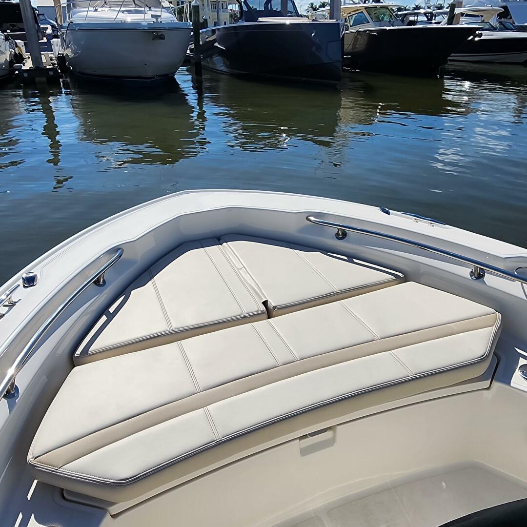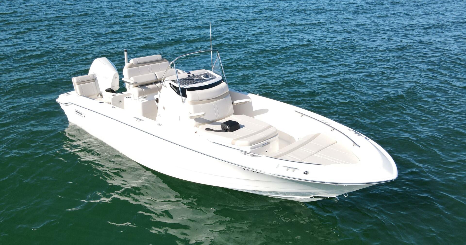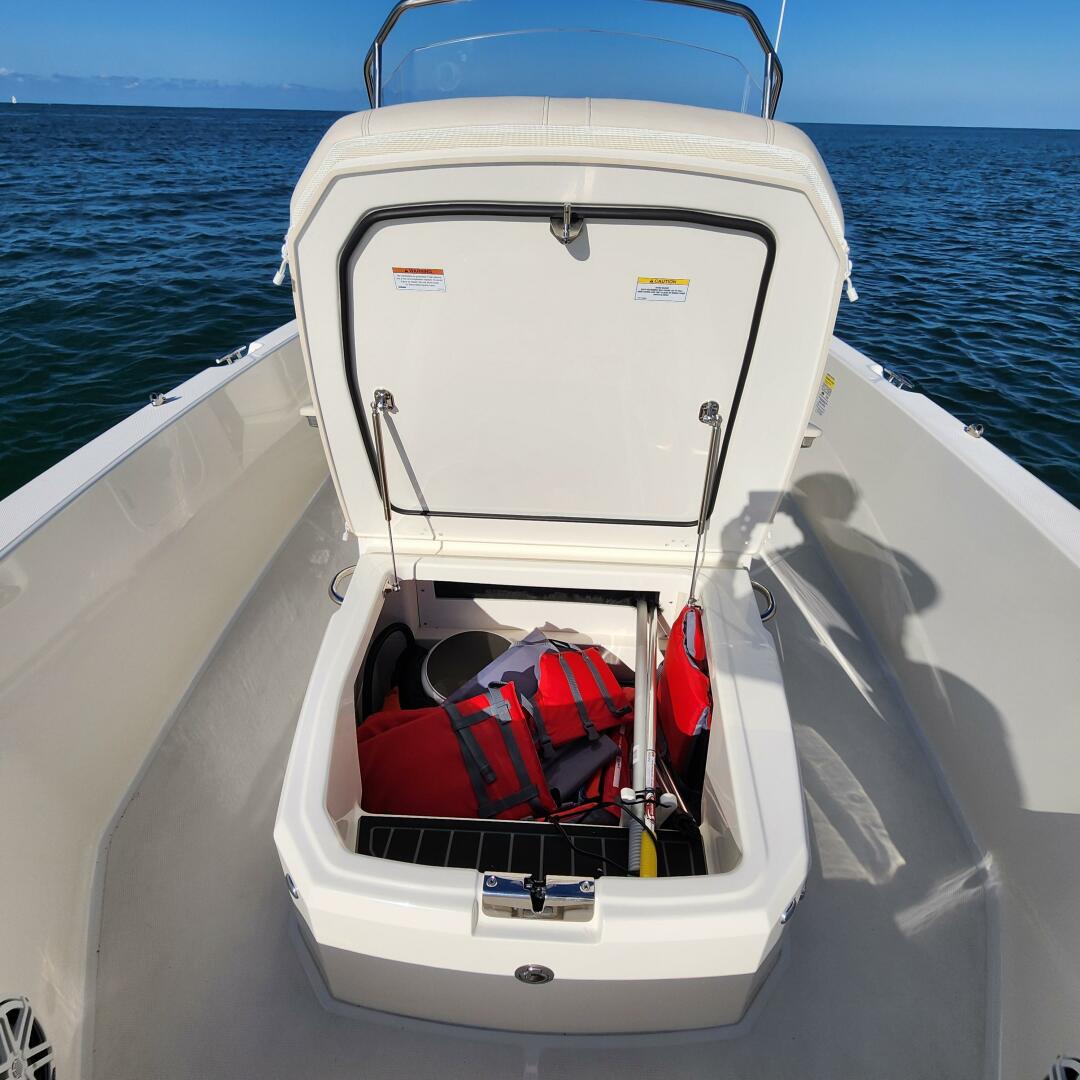 The Boston Whaler 22 Dauntless is a great family fun boat; perfect for running around the bay, beaching, fishing, water skiing and sunset cruising with your family. It even has a porta potty in the console! It also has a beefy high speed towing pad eye, perfect to be a tow behind dinghy for a larger yacht.