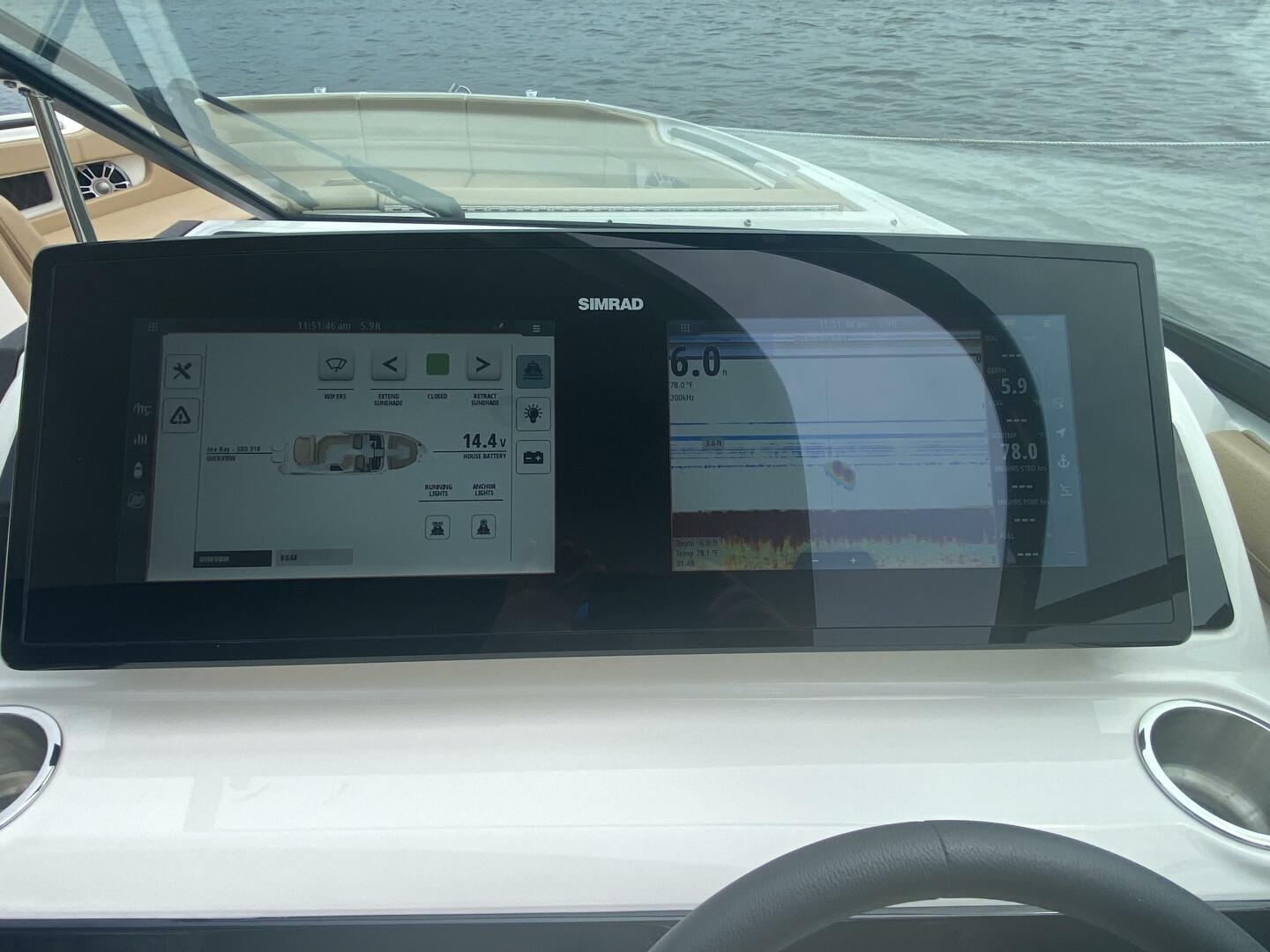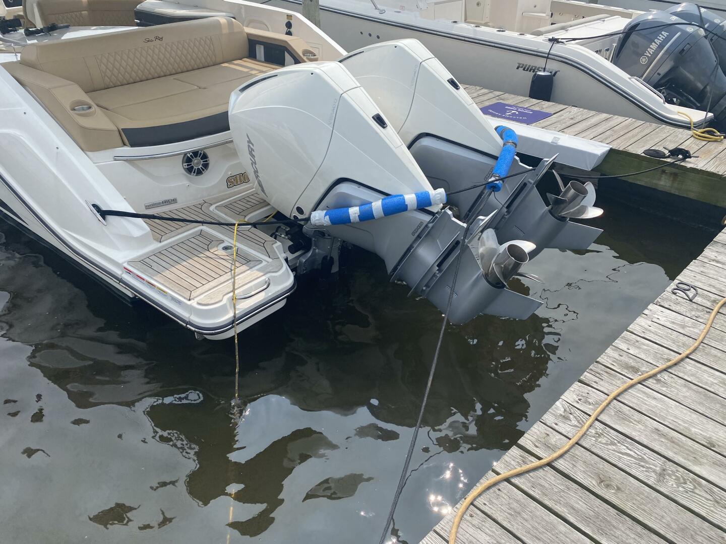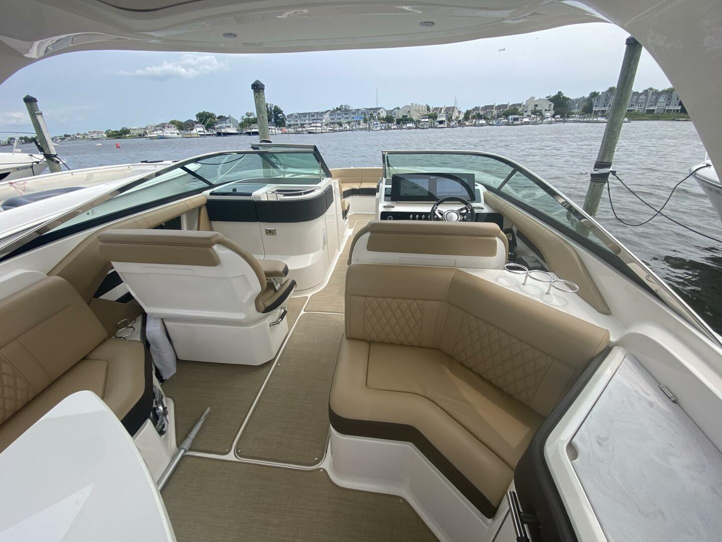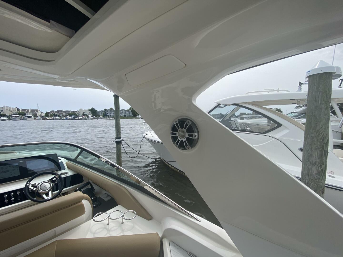 2023 Sea Ray 310 SLX OB, Powered by twin Mercury 300 Verados (only 20 hours) Joystick, Digital Controls Dual 12" Simrads, Simrad VHF Radio, Upgraded Fusion Sound System, Underwater Lighting, RGB LED Lighting, Hardtop with Slider, Teak Swim Platform w/swim ladder, Cockpit Refrigerator 12 V, Wet Bar Area with sink & storage & built in cooler, Sidestep for fixed boarding, Infinity woven flooring, Large head w/sink and vacu flush toilet & macerator, Wind screen door, Windlass stainless steel anchor, Fender clips, Electric extendable Sunshade, Docking lights, Battery charger, Bow & cockpit covers, Cockpit table.