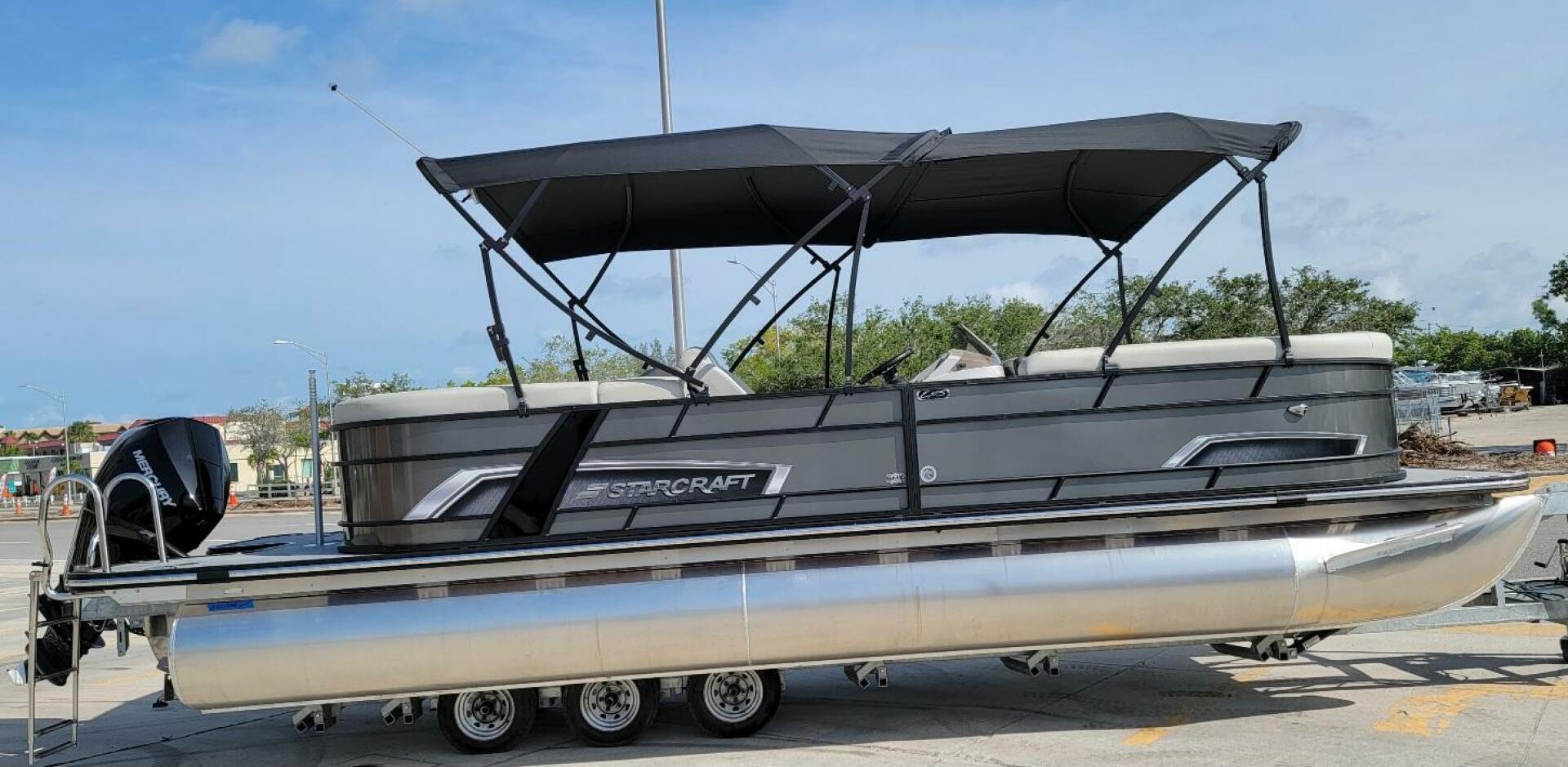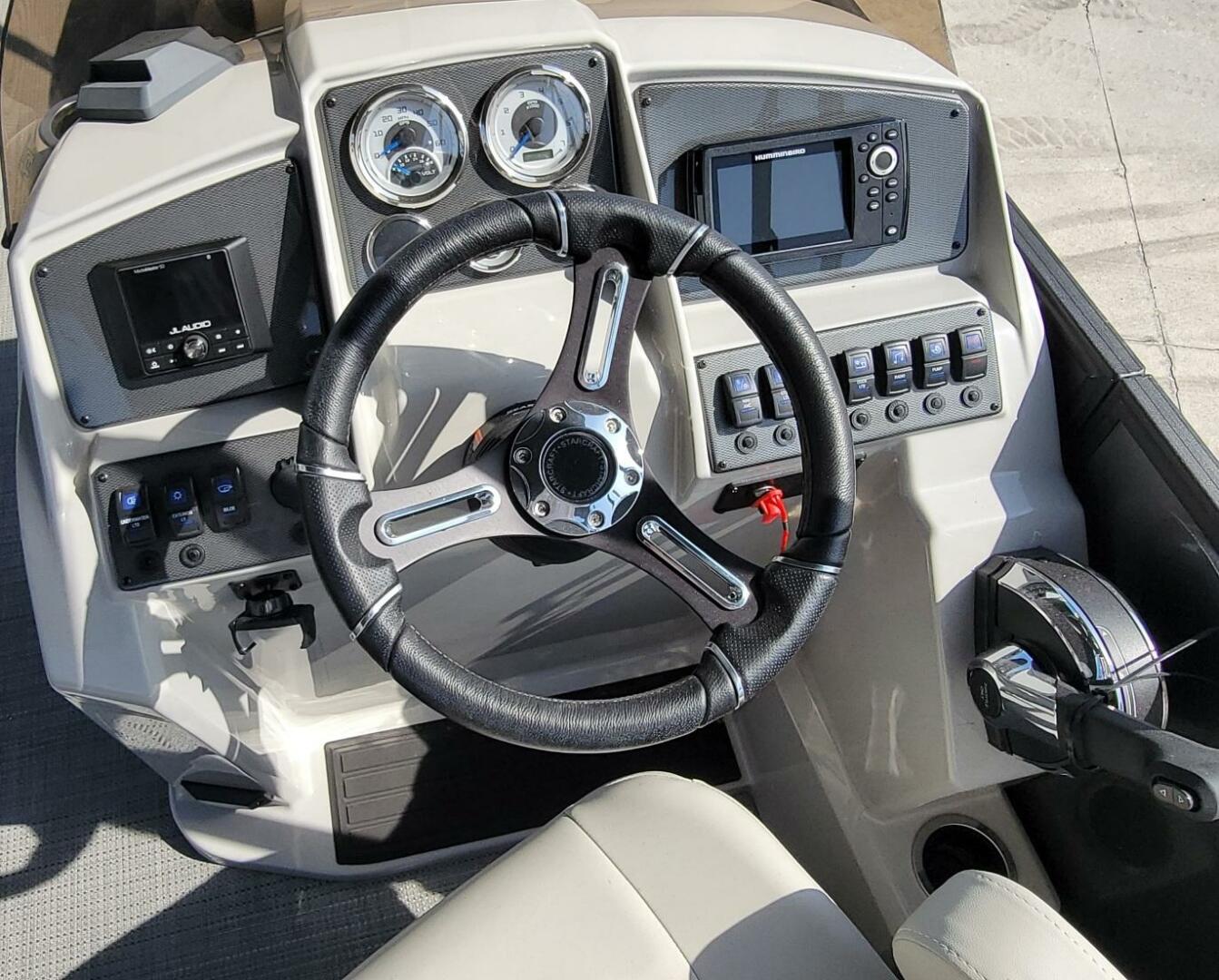 Starcraft’s EXS series puts third-tube performance within the reach of every family. Choose from 25', 23' or 21' models with our exclusive HMX PR20/25 Performance Package including lifting strakes, a Performance Shield, hydraulic steering and a ski pylon all as standard equipment. Sleek, black anodized rails and black side trim, docking lights, a low-profile sport console complete with a Gussi Italia® Verona tilt steering wheel and low-back Captain’s chairs give EXS a bold look to match its exhilarating performance.