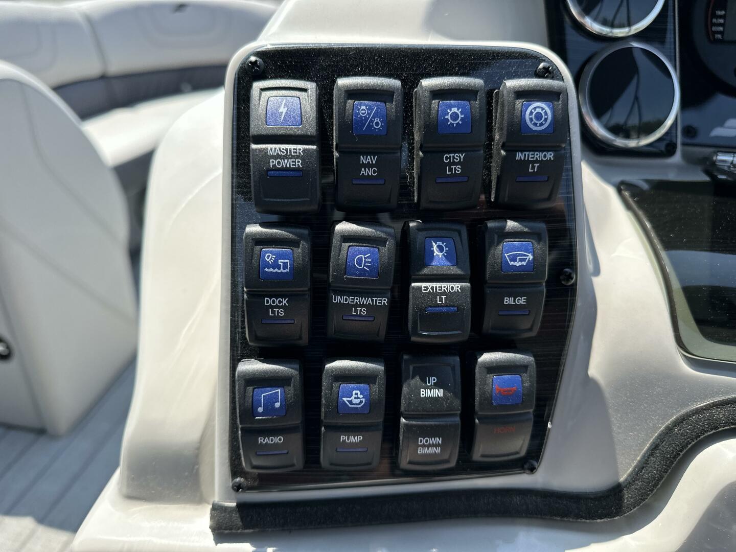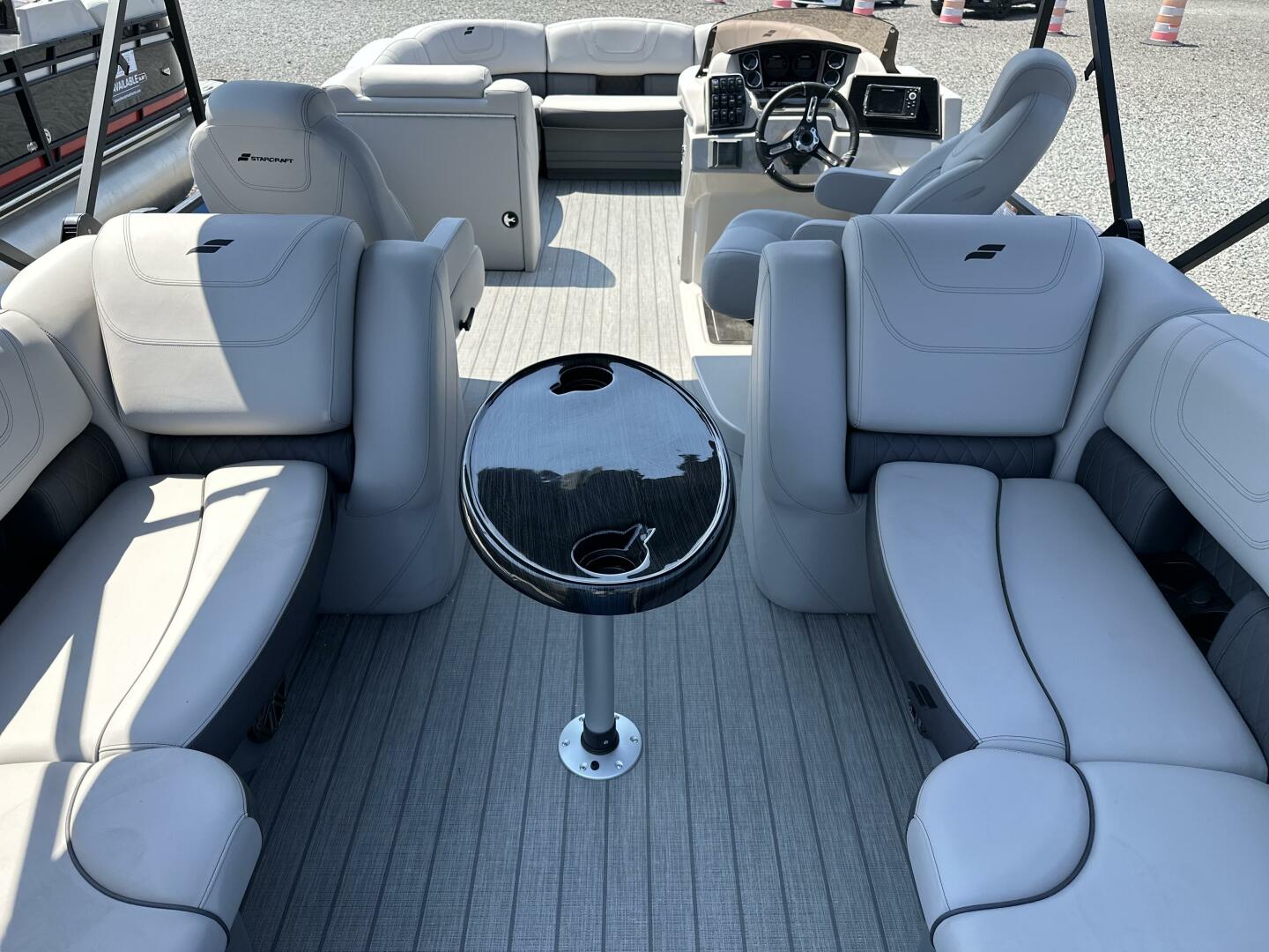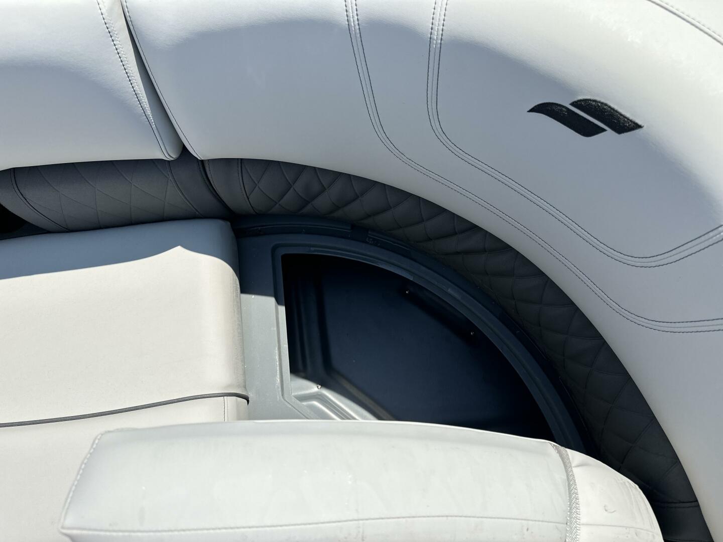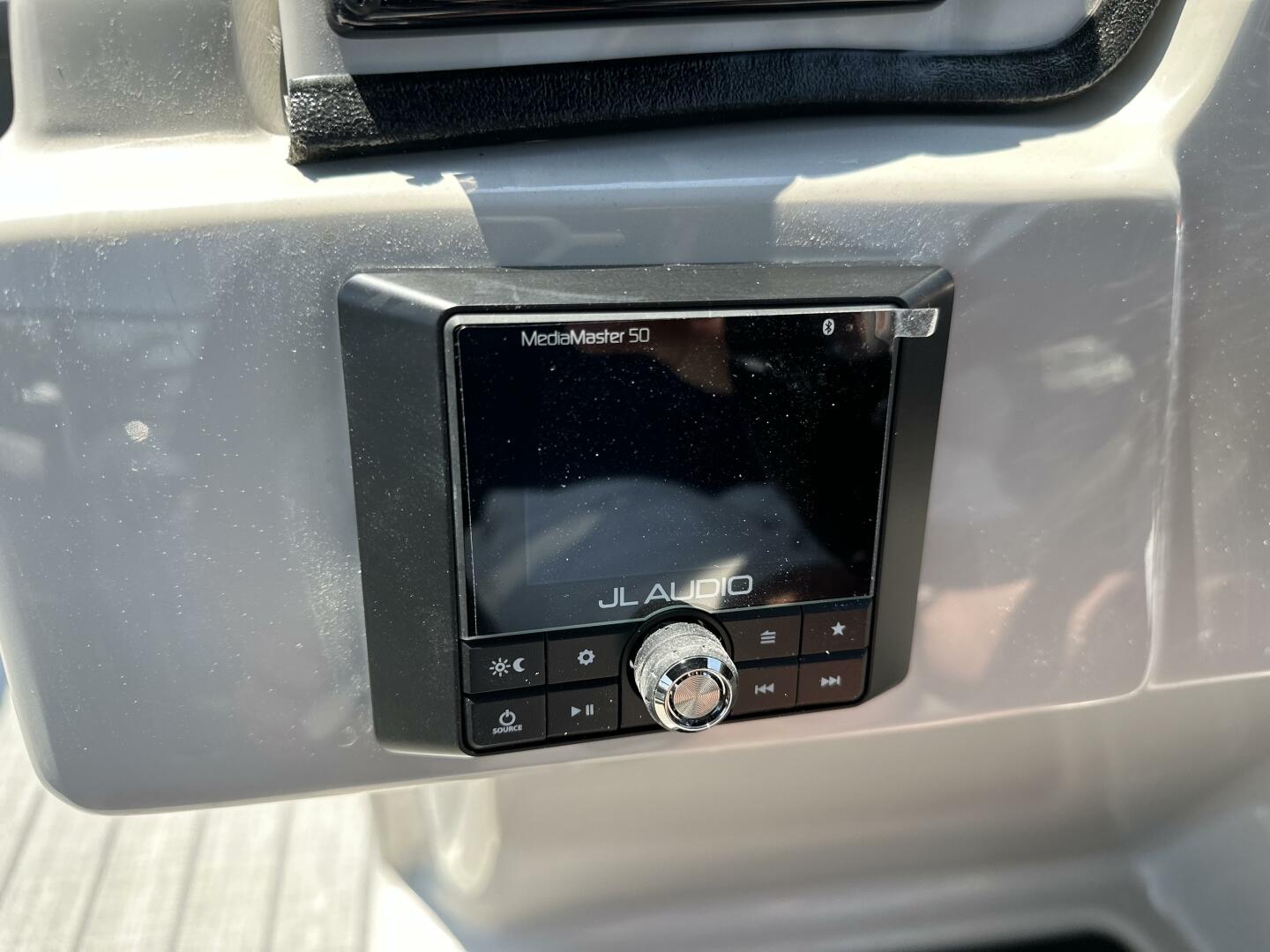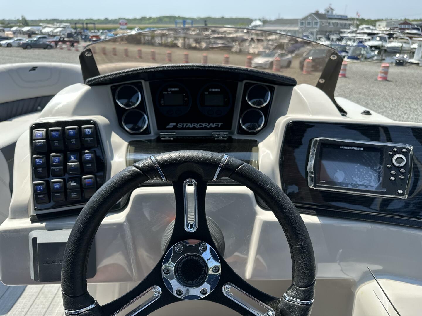 Drop the throttle and leave the work day behind in an SLS that comes standard with HMX PR25 Performance Package. The SLS boasts an aggressive fence and rail design, upgraded furniture with built-in cupholders and dual console floorplans inspired by our top-of-the-line SX series. Standard features include an all-new helm design, JL stereo with Bluetooth streaming, a full 10’ bimini top and Starcraft’s full heavy hat understructure for incredible handling and unsurpassed durability.
