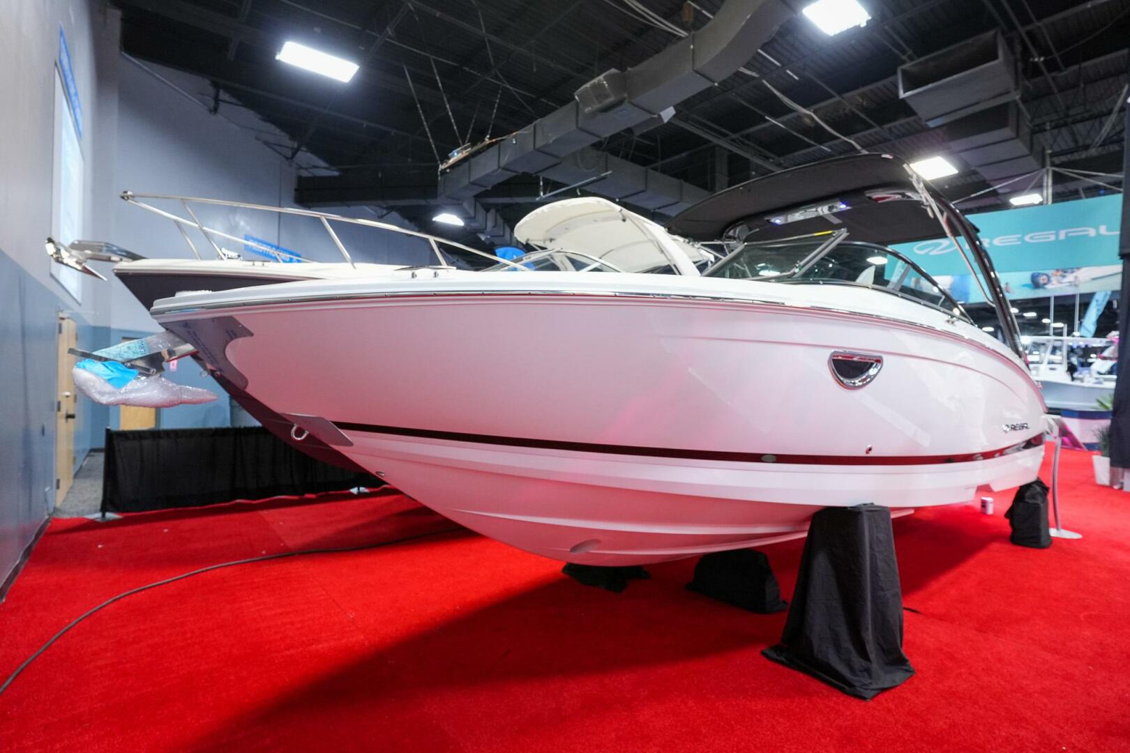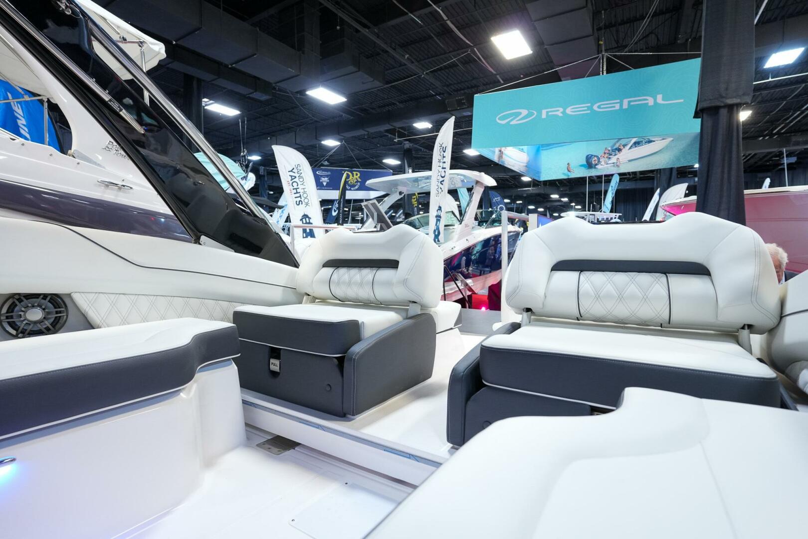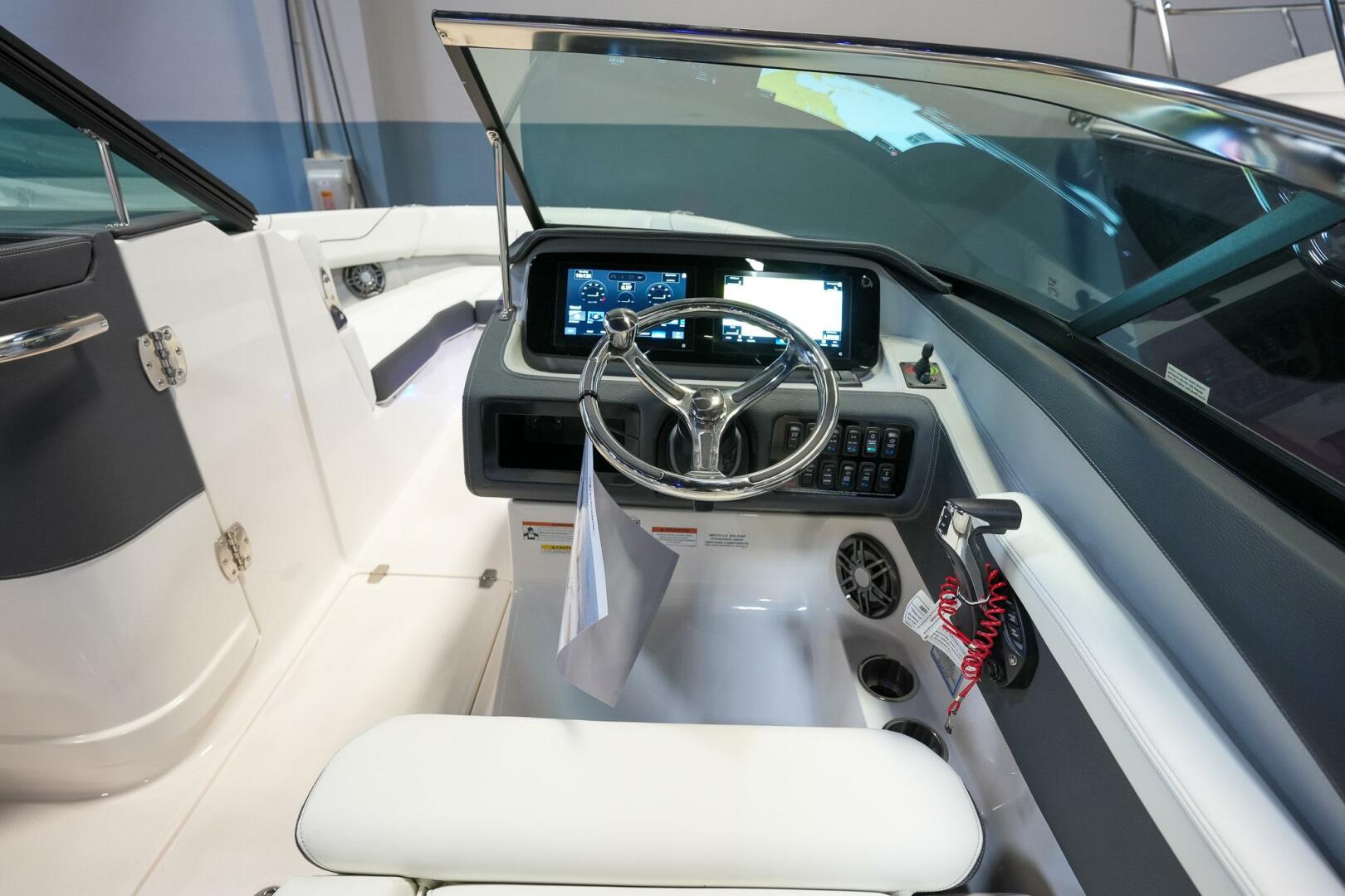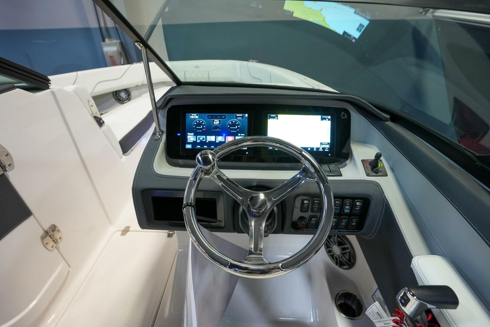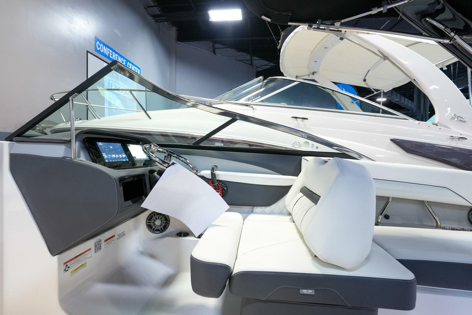 Offered as an entirely open-air boat or, for those looking for shade in the warmer climes, with a floating hardtop, this is the ideal yacht for weekend cruising all year round. Let stress and worry melt away as you make your way offshore, the sound of the soft waves lapping against the hull as you relax in a cozy bow lounge with wraparound seating. Cushioned backrests, cup-holders on hand, marine-grade upholstery with a diamond-stitched finish and integrated Fusion stereo speakers make this the perfect place to both relax and entertain, while a pop-up, teak-lined table can be used for drinks, snacks and even the occasional poker game. Utilize the seating out here as a pair of chaise-longues, or fix a filler cushion into place to turn this entire bow area into one, casbah-style day-bed where you can soak up the sun and absorb the healing qualities of the serene water.