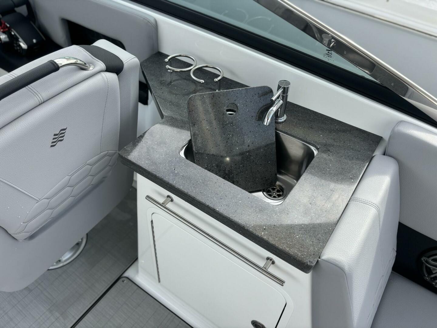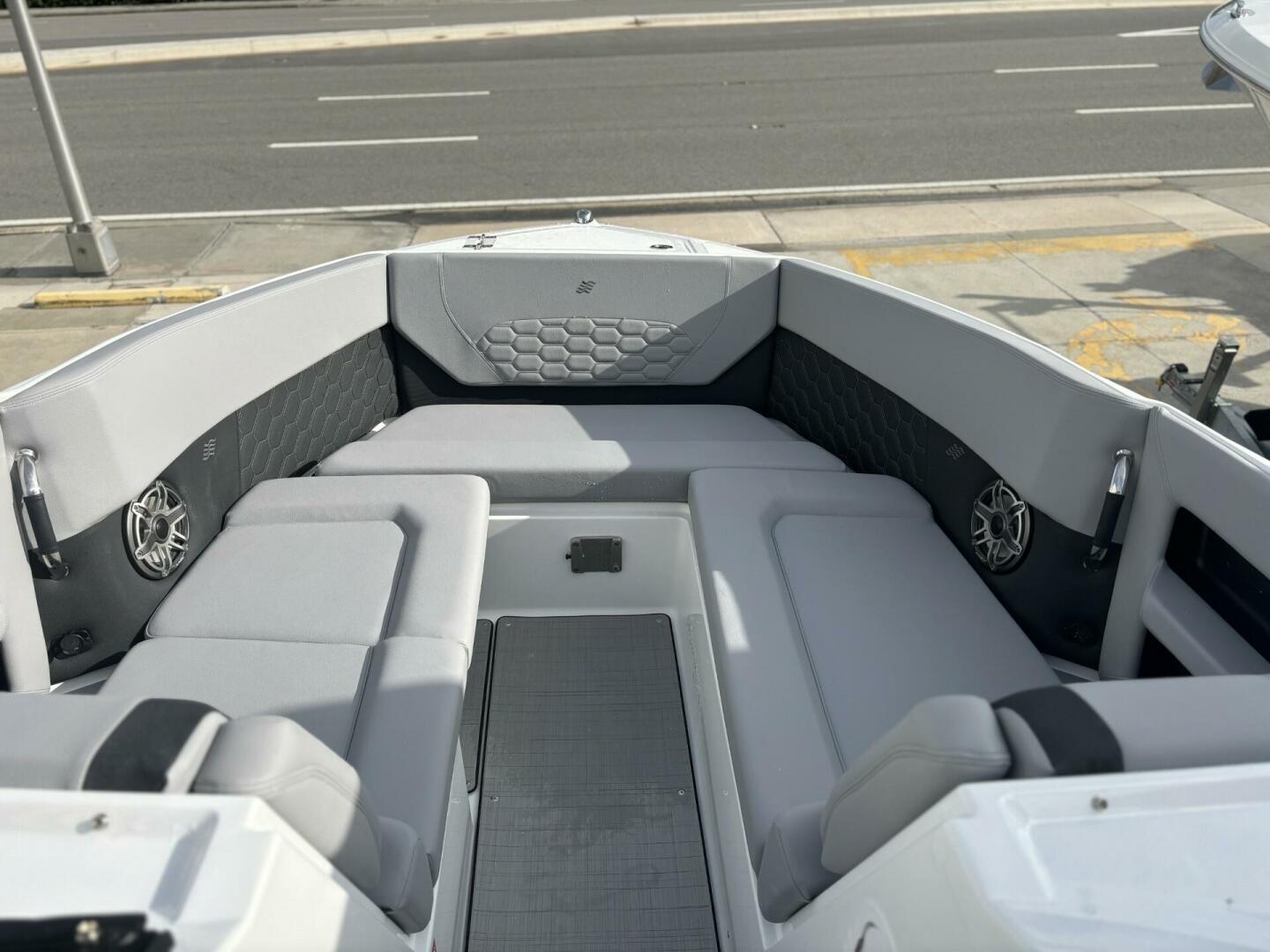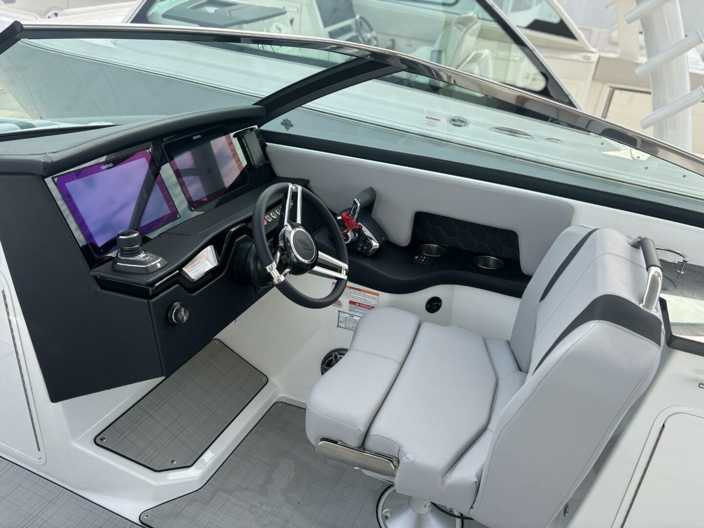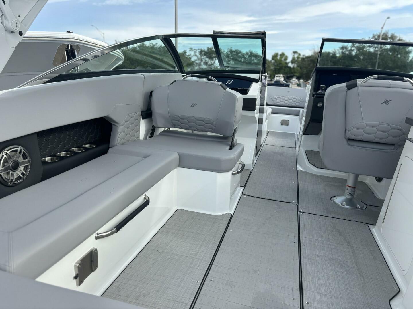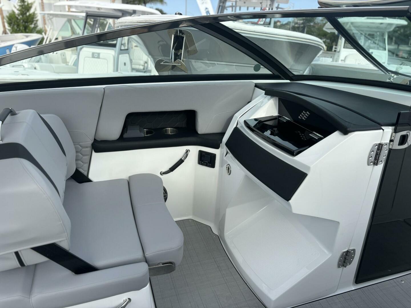 Elegance in every line. The H9 boasts elongated proportions for a striking silhouette, ensuring both visual appeal and a smoother presence on the water. Its vertical stem profile adds visual distinction and functional stability, while our signature windshield integrates seamlessly for optimal visibility and timeless elegance. Designed for easy water access with its swim platform, we invite you to step onto the newest, most innovative feature enhancing the grace and sophistication of the Four Winns H9.