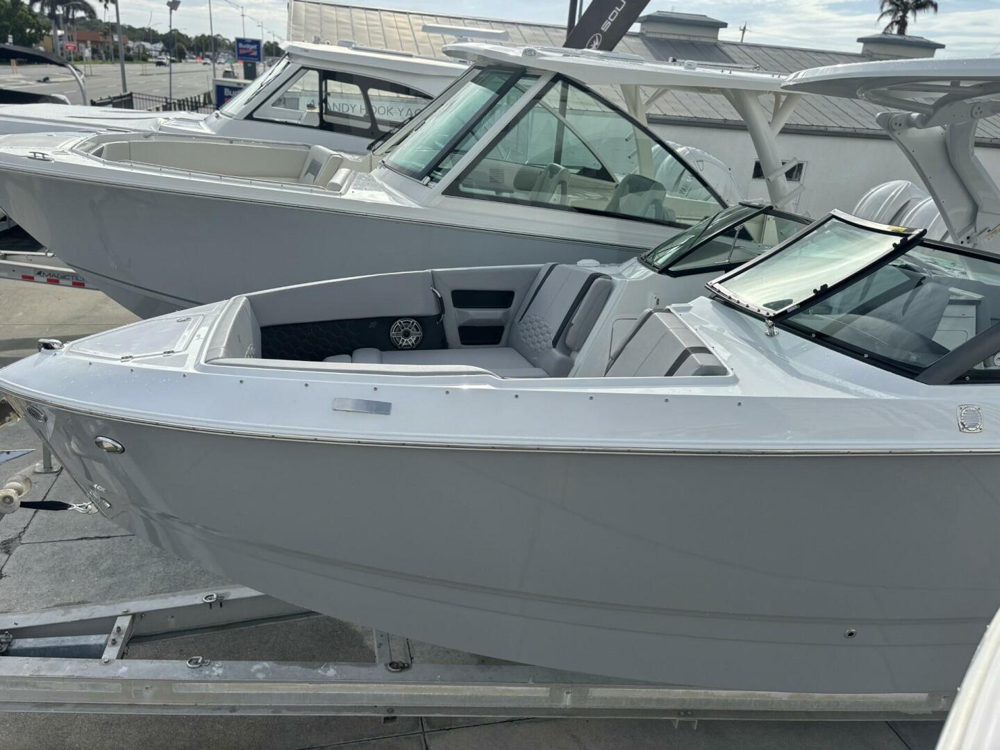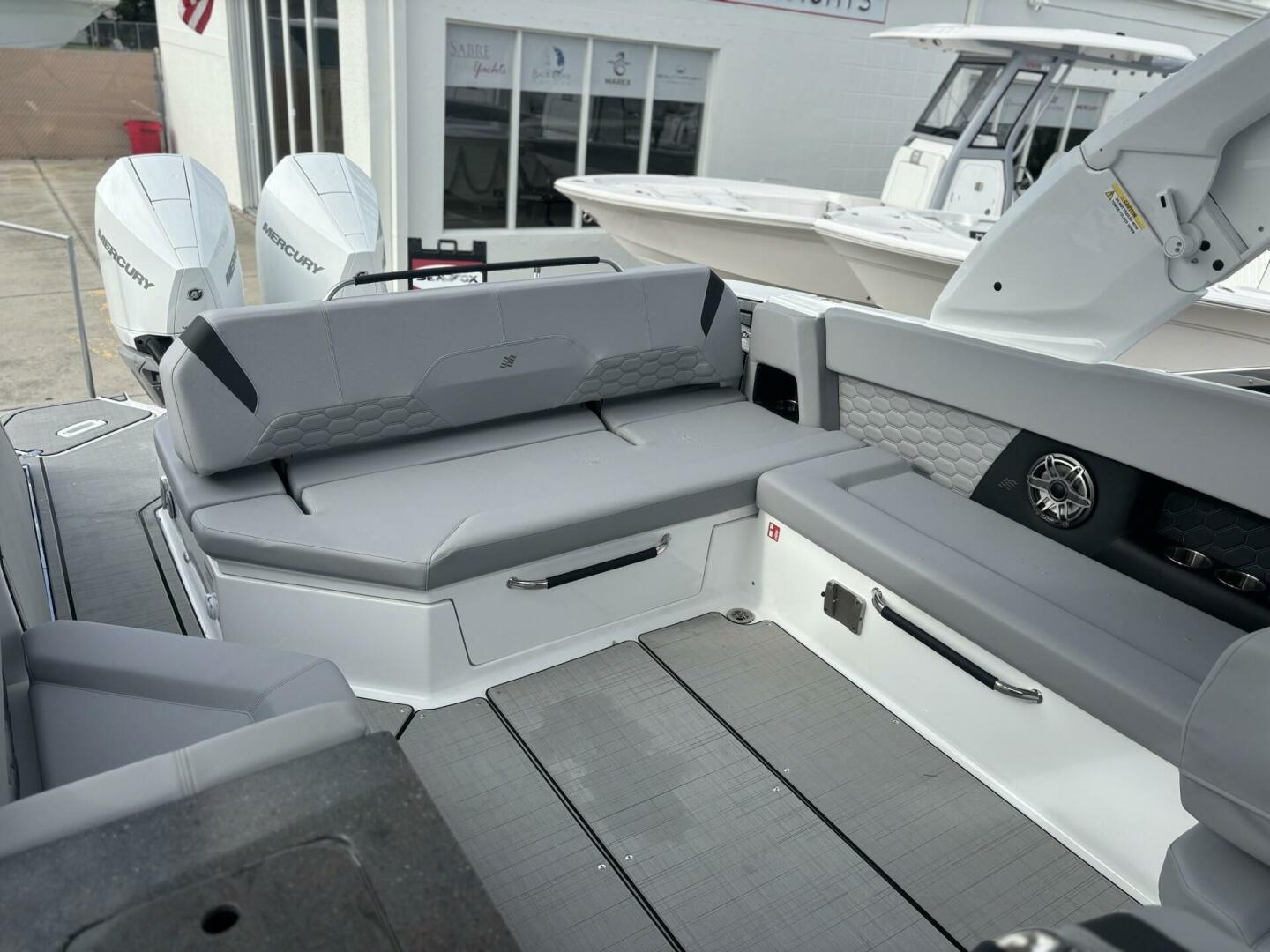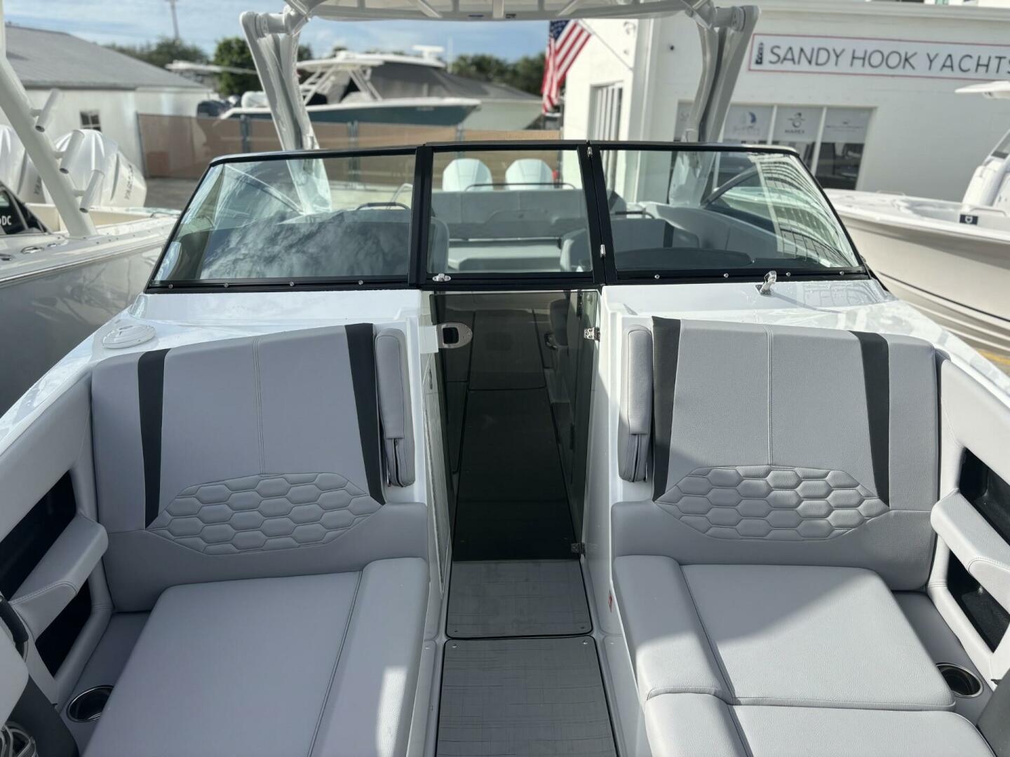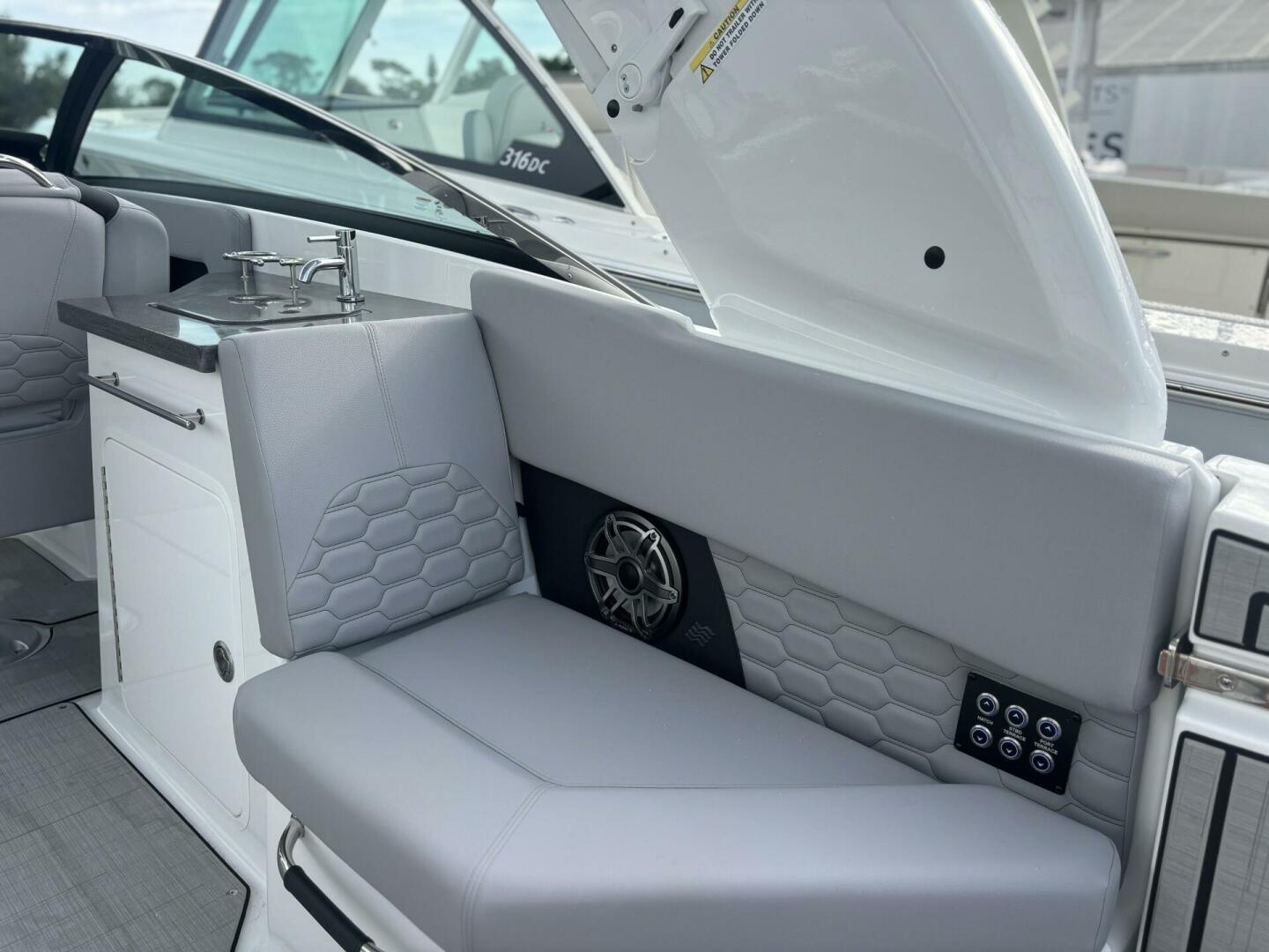 Elegance in every line. The H9 boasts elongated proportions for a striking silhouette, ensuring both visual appeal and a smoother presence on the water. Its vertical stem profile adds visual distinction and functional stability, while our signature windshield integrates seamlessly for optimal visibility and timeless elegance. Designed for easy water access with its swim platform, we invite you to step onto the newest, most innovative feature enhancing the grace and sophistication of the Four Winns H9.