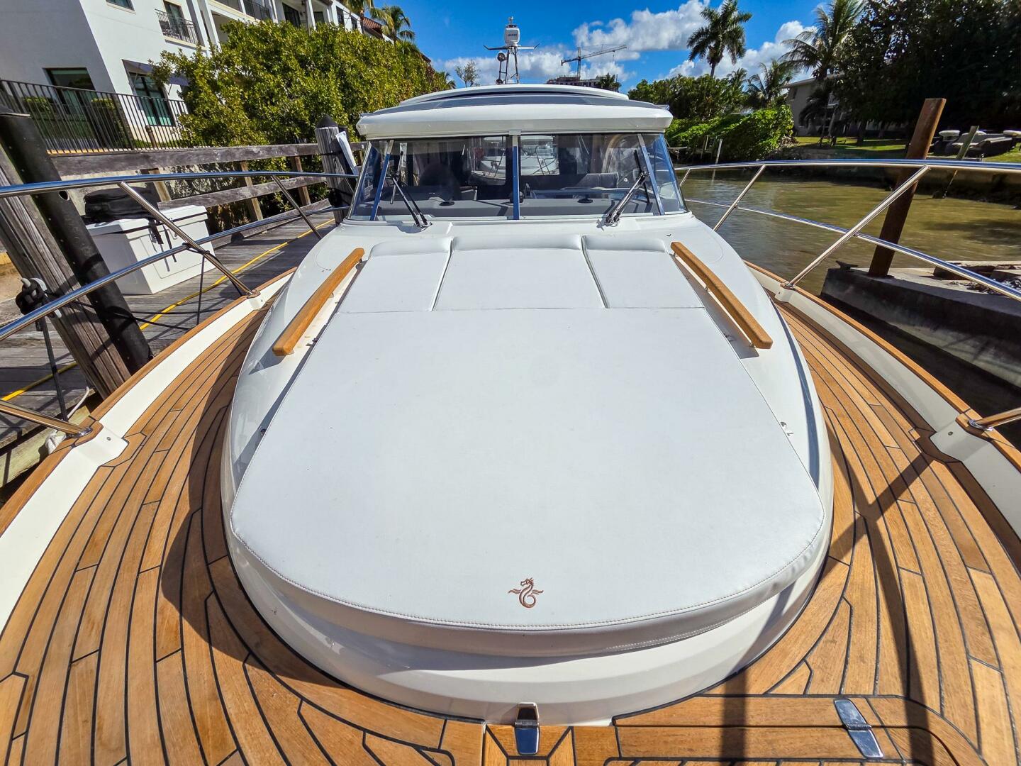 A double dashboard can fulfil all todays needs for all sorts of instrumentation. It also has integration for iPad and similar devices. Our efficient solar panels can optionally be mounted on the roof with up to 900 watts of charging power – enough to keep the boat without shore connection over a long period of time even with the fridge and freezer permanently on. The roof comes with an optional mounting rack for the adventurous. A place for bicycles as well as paddle boards or kayaks. Front deck’s sun bed can be thrown to the water as a floating, for kids and parents to play on as their own private beach.