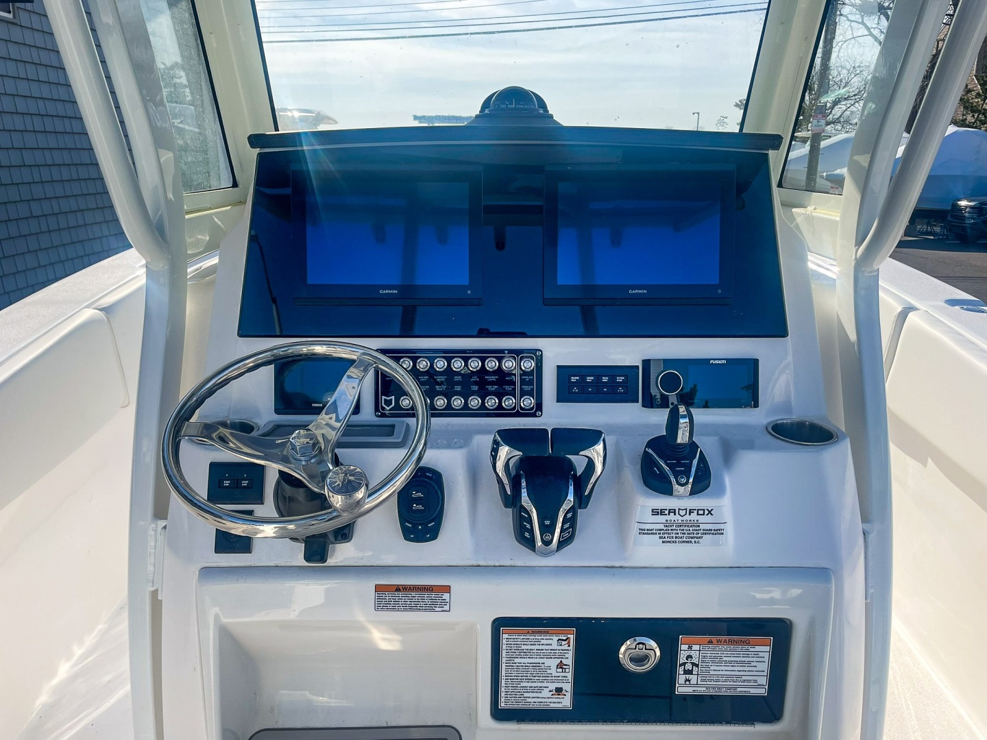 Meet the 288 Commander, equipped with everything you need for some serious offshore fishing action and all of those trips taken with the family. This is the first Sea Fox model to offer side door access in the cockpit to make entry into the vessel as easy as possible.