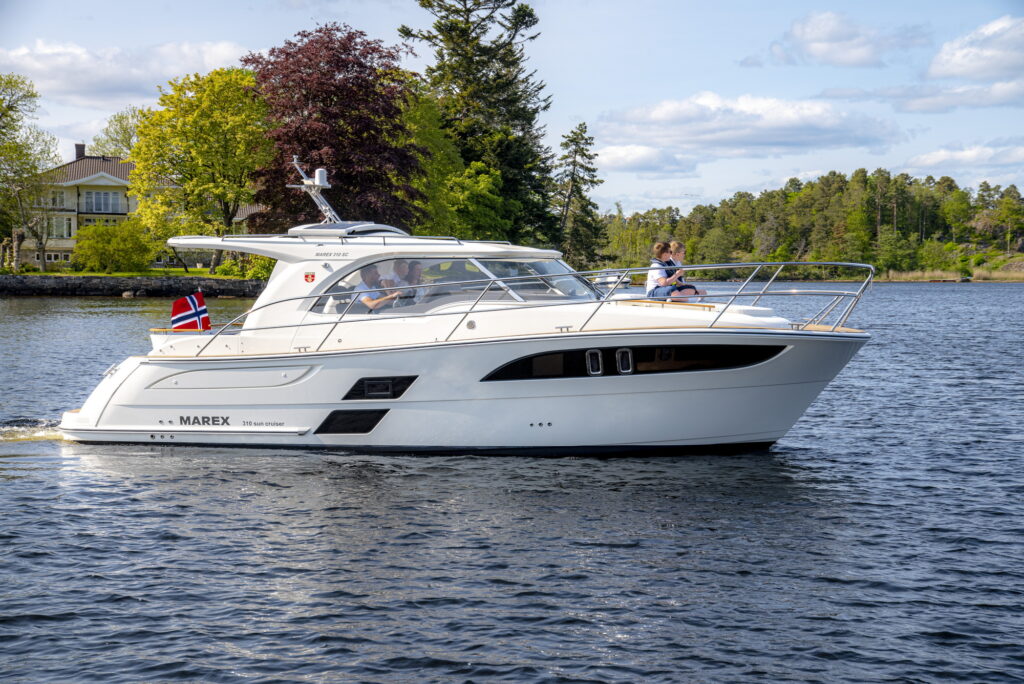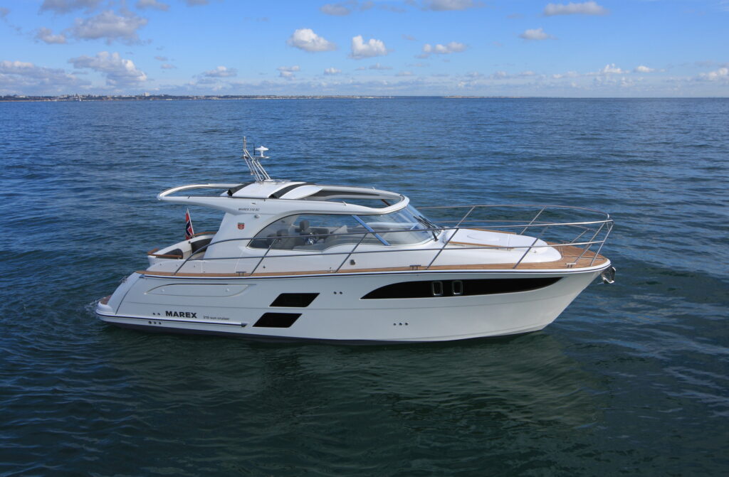 Marex 310 Sun Cruiser is an elegant and innovative 31-foot boat fashioned on current trends and customer needs. The 310 Sun Cruiser mixes a classic hull style with a sports spirit, rounded bow and smooth profile lines. Being the smallest in the Marex range, it is the perfect Cabin Cruiser for four guests, designed to deliver the ideal combination of comfort and space for families and friends
