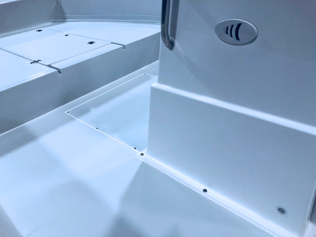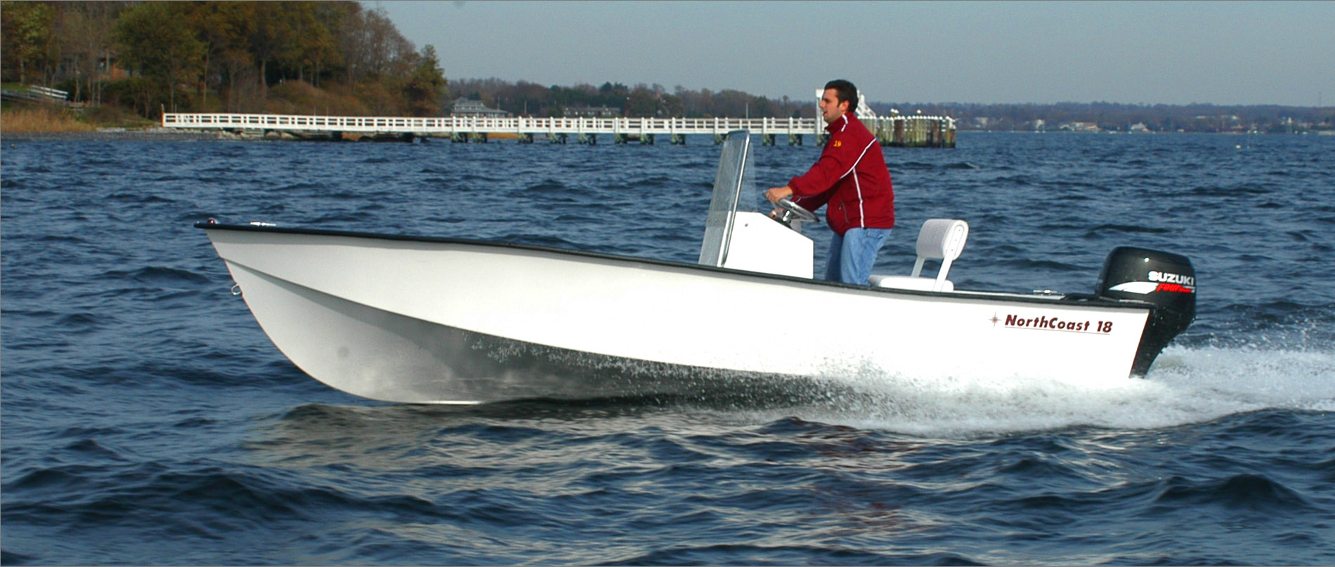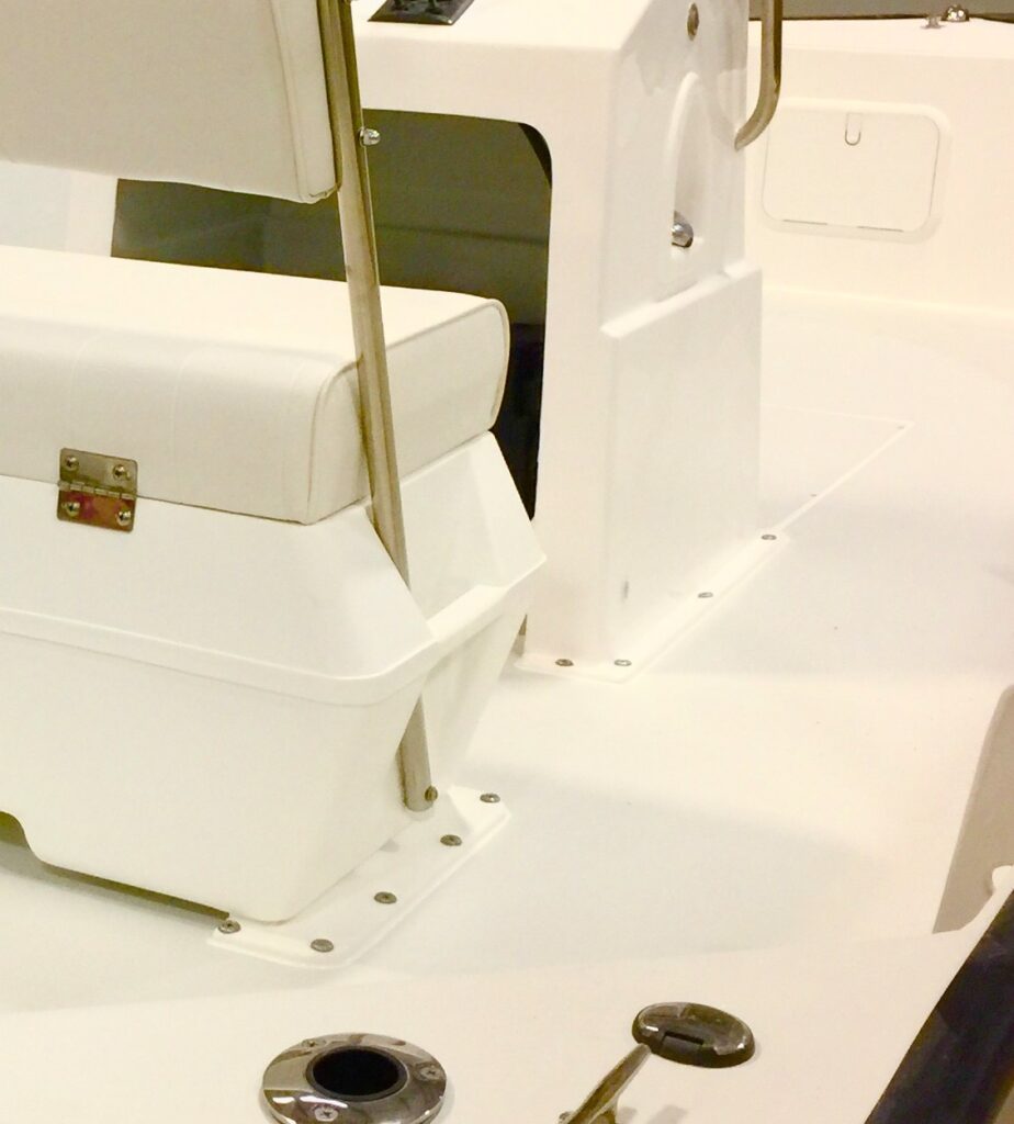 Designed for coastal angling and day tripping, the NorthCoast 180 is efficient, fast, and smooth riding. The solid fiberglass hull, foam cored cockpit floor, positive floatation, and foam filled fiberglass grid stringer system combine to create a lightweight, incredibly tough and durable composite structure. The transom is fiberglass and high-density foam core composite – no wood here!
