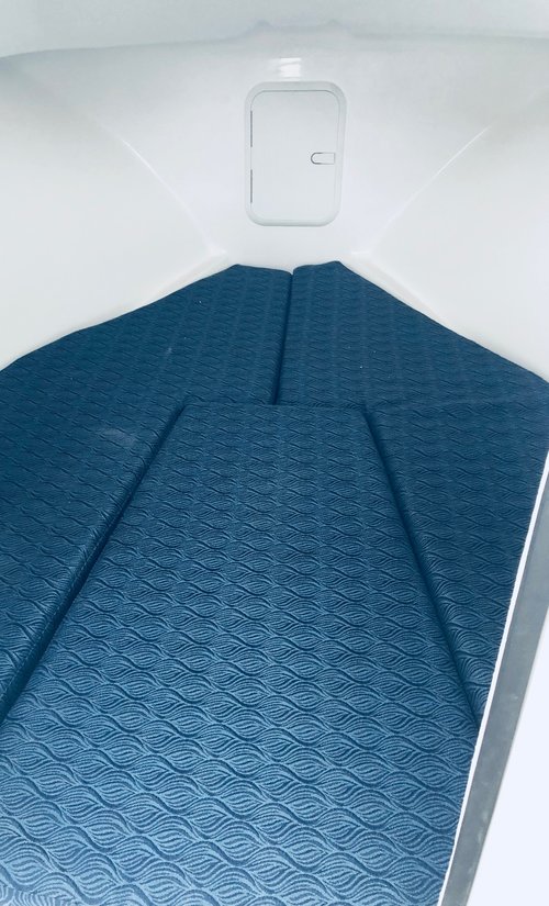 CABIN • Forward cabin w/ full bulkhead & companionway door stainless steel locking latch • Cabin cushions • Portable head • V-berth insert • Cabin light • V-berth w/ storage below• Forward cabin hatch w/ screen