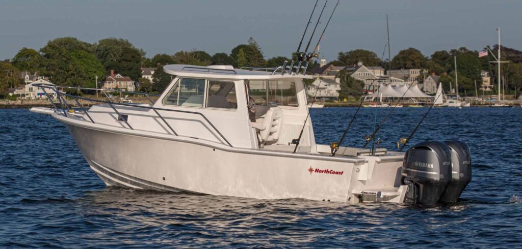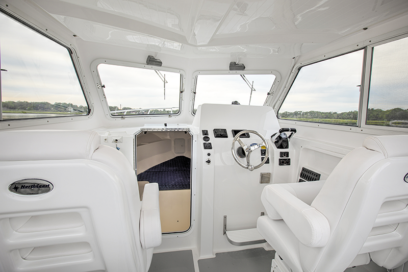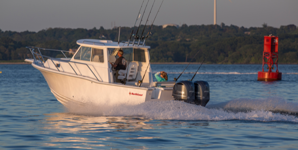All business hull runs across the wave tops with a wide-open throttle of 56 miles per hour! Sporting a 22 Degree dead-rise and 9’5” Beam, the new 255 handles inshore or offshore conditions like a champ, running dry and comfortable- as you would expect from a NorthCoast pilot house sport fishing boat. 159 usable gallons of fuel at 3000rpms | cruising at 25MPH | *12.9GPH and a conservative range of 268NM nautical miles or 302 statute miles. Even tops 30MPH- if you need to get home on one engine.