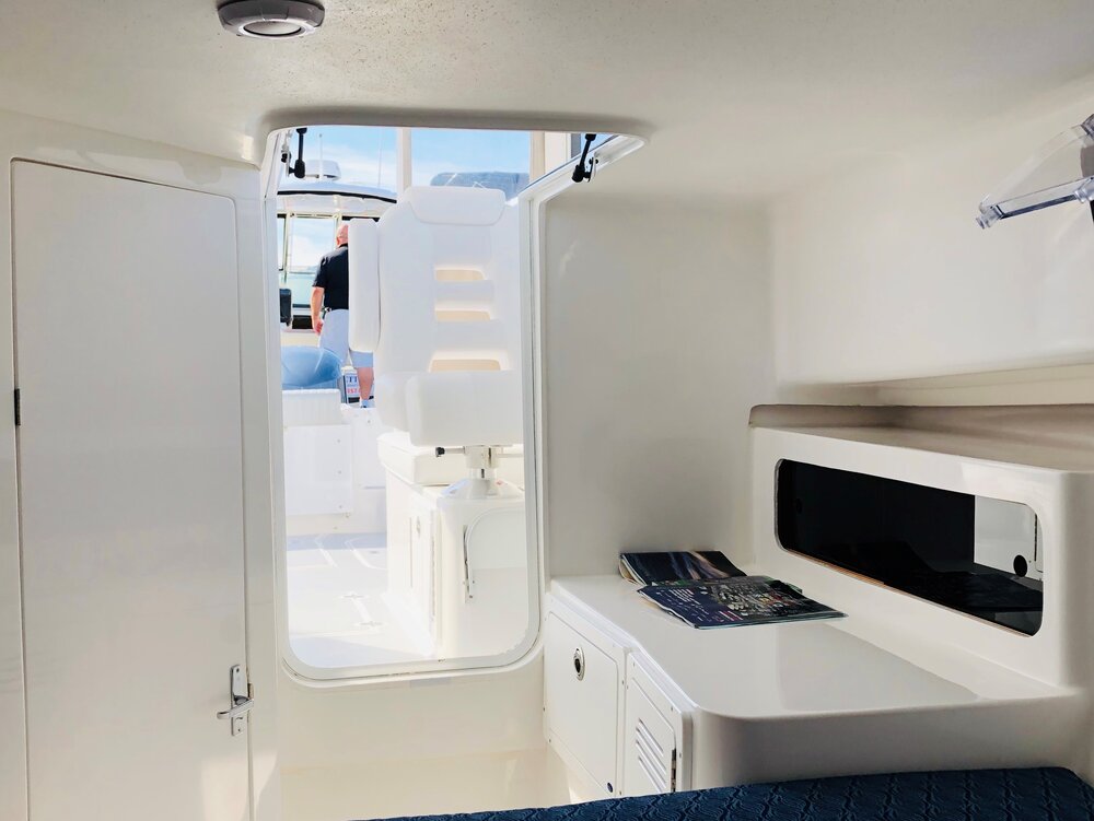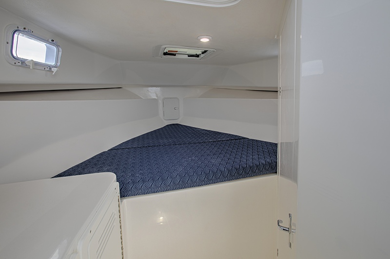 We listened to those asking for the next new model to be larger than the 235HT with a private head, sink to wash up, and comfortable accommodations for two. For serious anglers you’ll arrive at the fishing grounds faster and enjoy a longer and wider cockpit to fight big fish- which you can bring aboard via through the walk thru transom door.