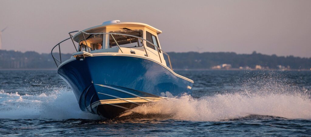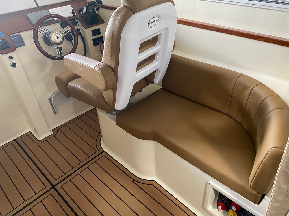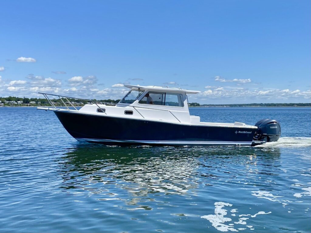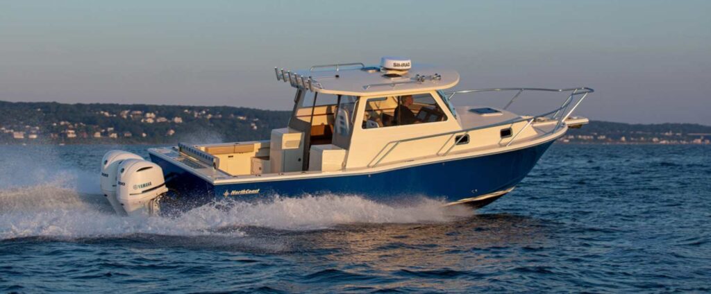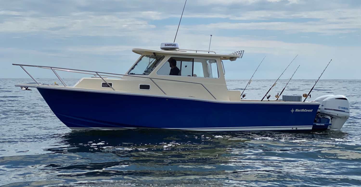 NorthCoast 315 HT- our new flagship continues the heritage of being the exception to the rule. A stunning new sportfishing model with ideal proportions, the NorthCoast sheer, and our latest open layout / full transom design. She is all about coastal and offshore functionality. The 315 HT will cross wave tops effortlessly due to her 23 degree dead-rise and ultra-responsive design. The Yacht finished interior layout in the cabin is similar to the 285 HT- sleeping two forward with a separate, private head and a third person in the aft berth- (or a couple of your favorite grandkids.) With this new model you can keep things fishy or you can add some comfort and go yachting with the optional Teak Decking Material.